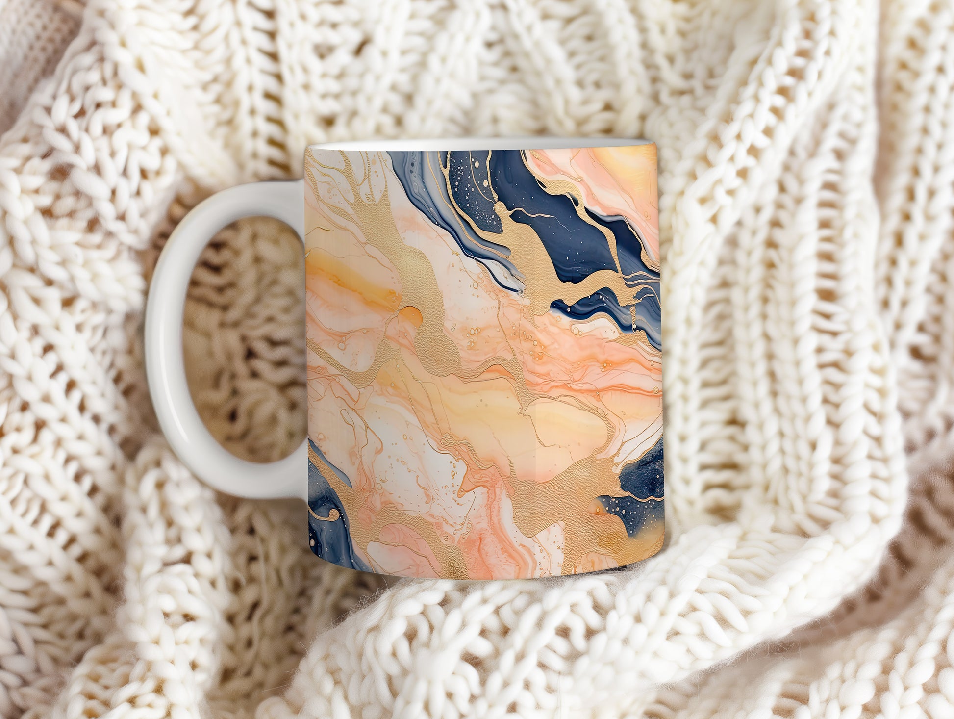 Hrnek s mramorováním v růžových a modrých tónech – originálním motivem