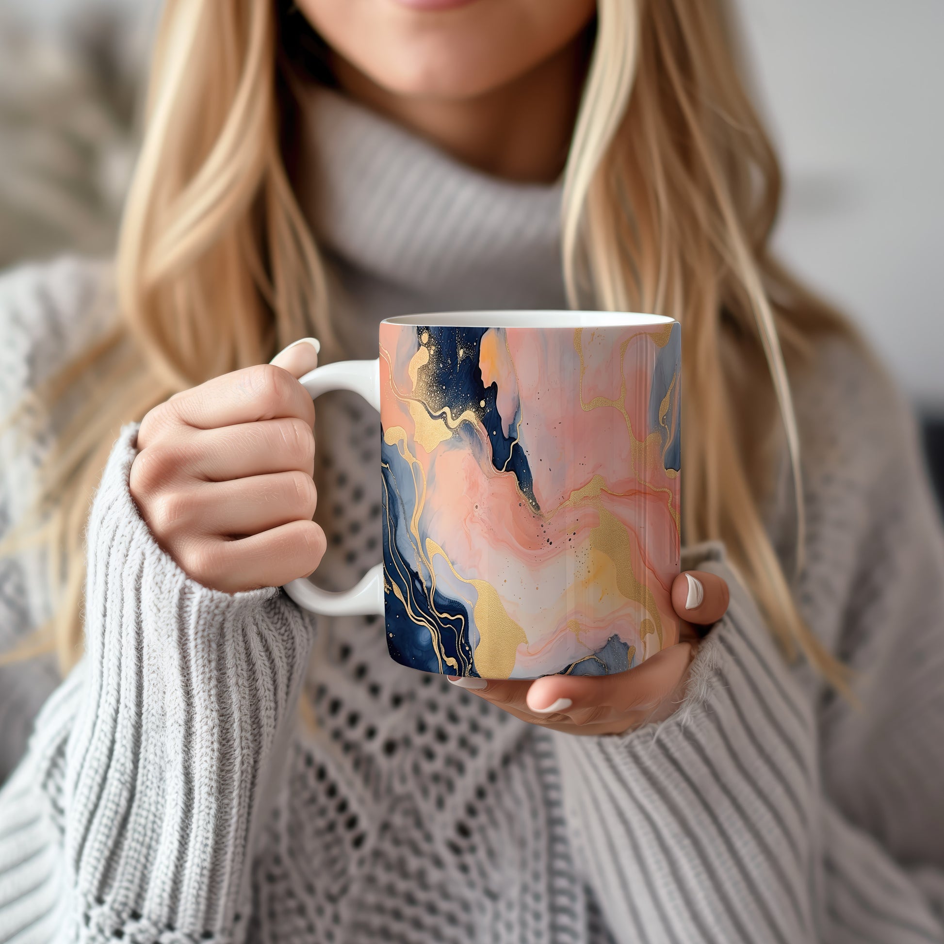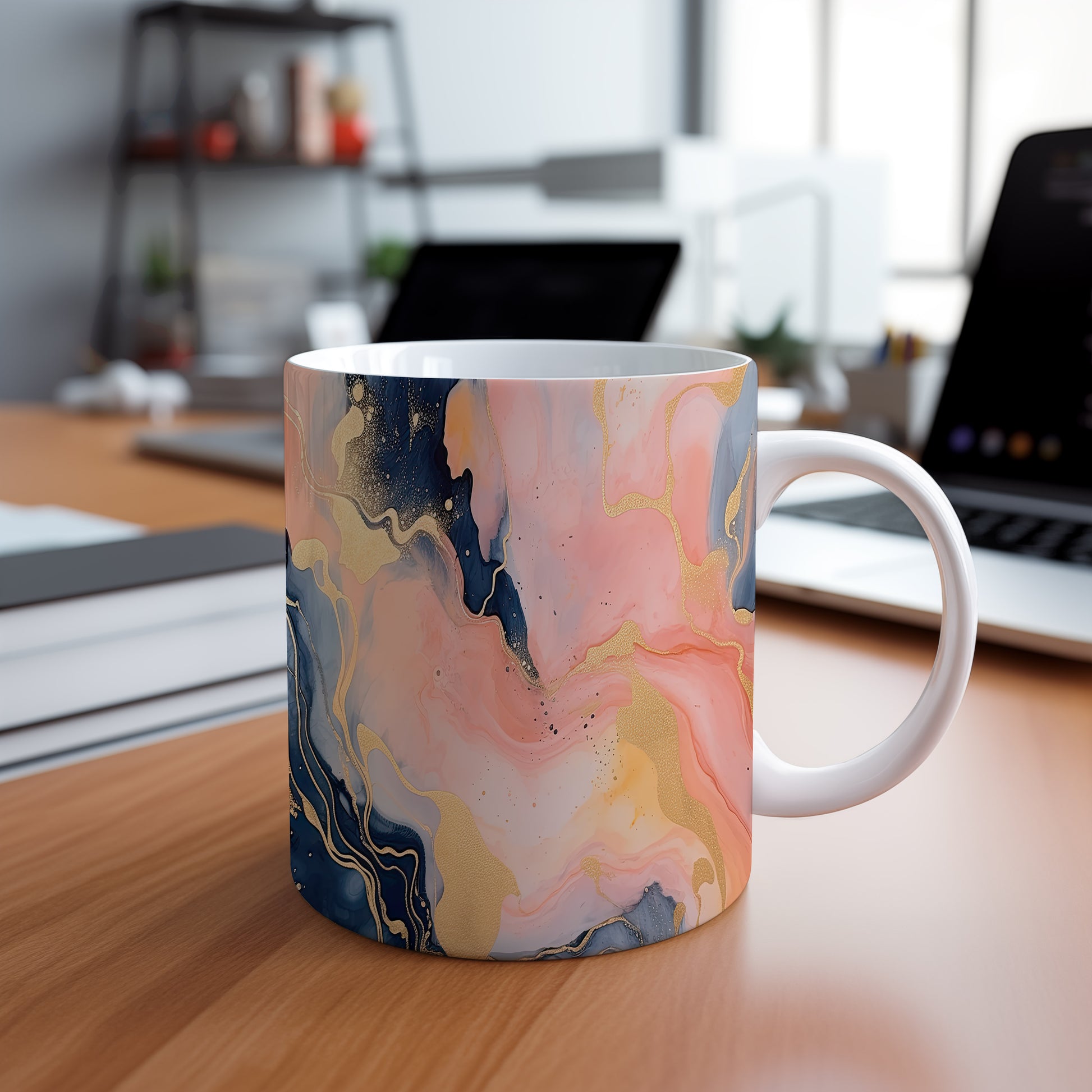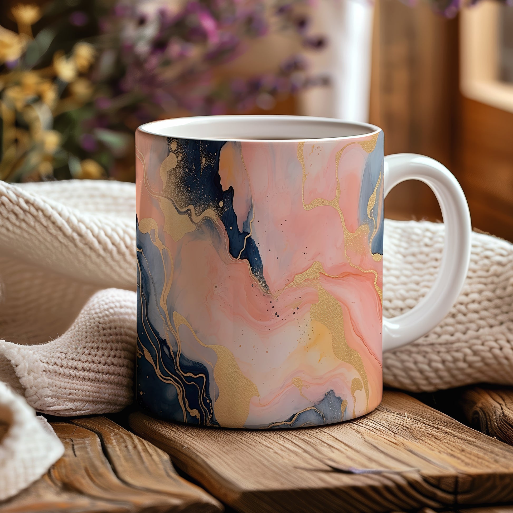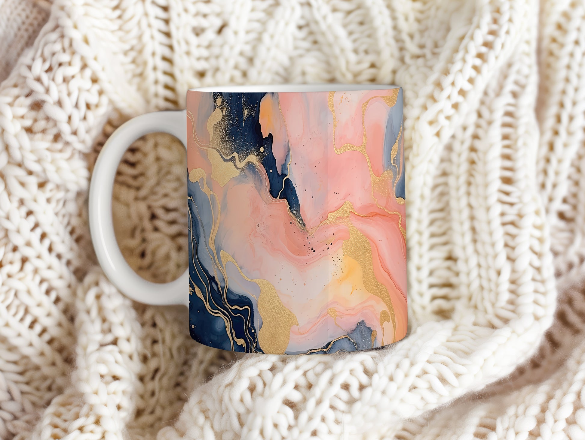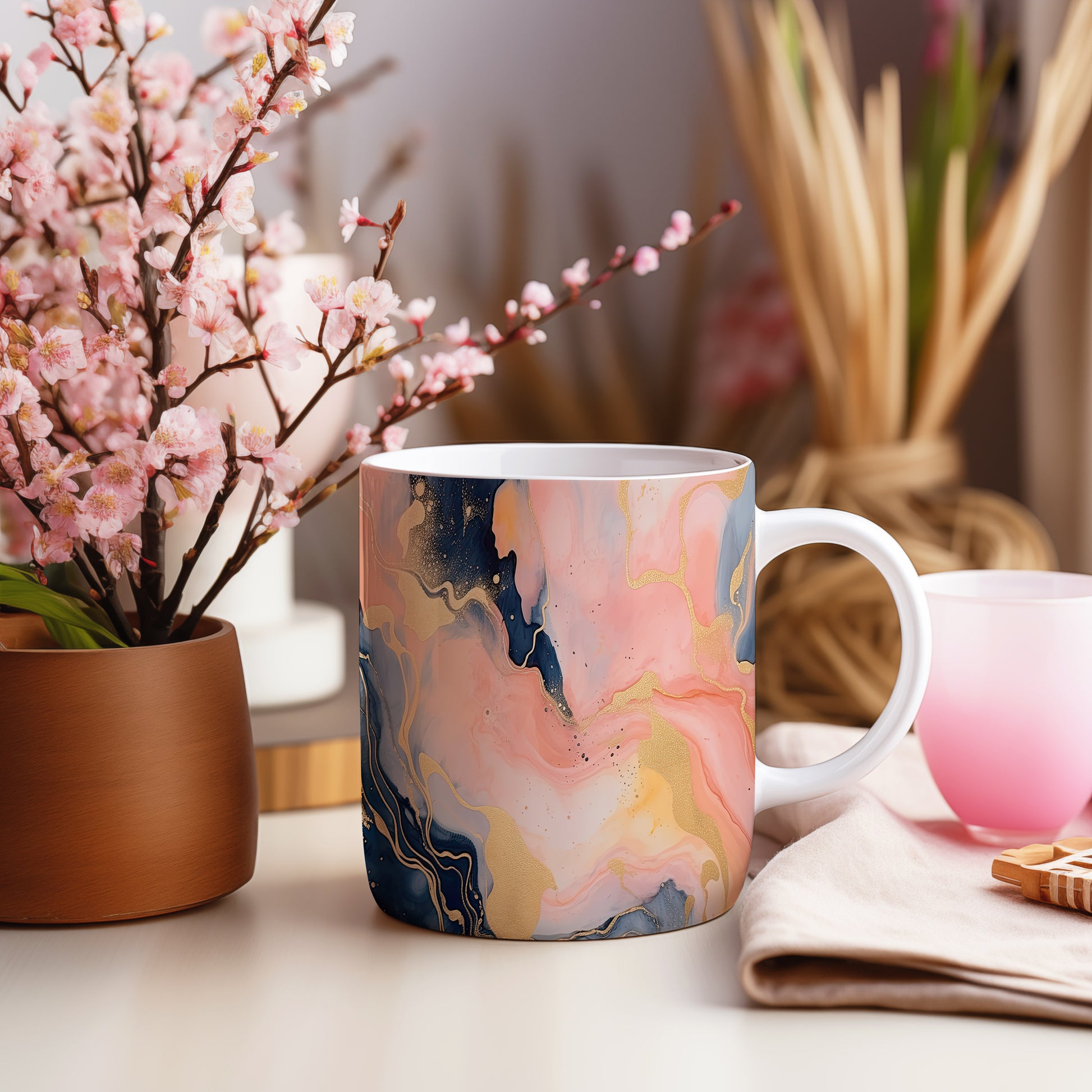 Hrnek s mramorováním v jemných růžových a modrých odstínech představuje elegantní a moderní design. Tento stylový kousek je ideální pro milovníky krásného nádobí a skvělým dárkem pro přátele či rodinu. Materiál: keramika. Objem: 330 ml. Vhodné do myčky i mikrovlnky. Díky svému vzhledu přináší do každého dne nádech luxusu.