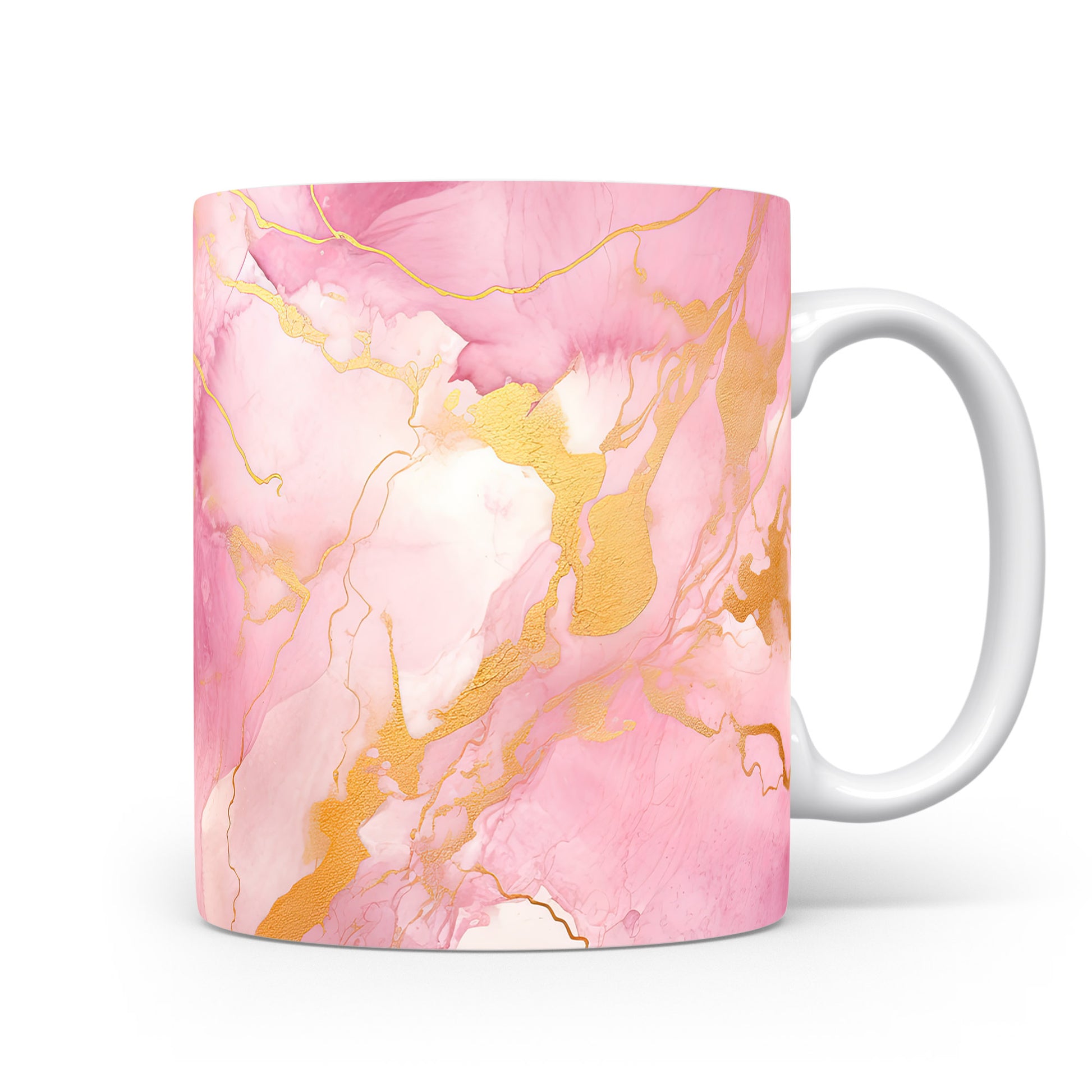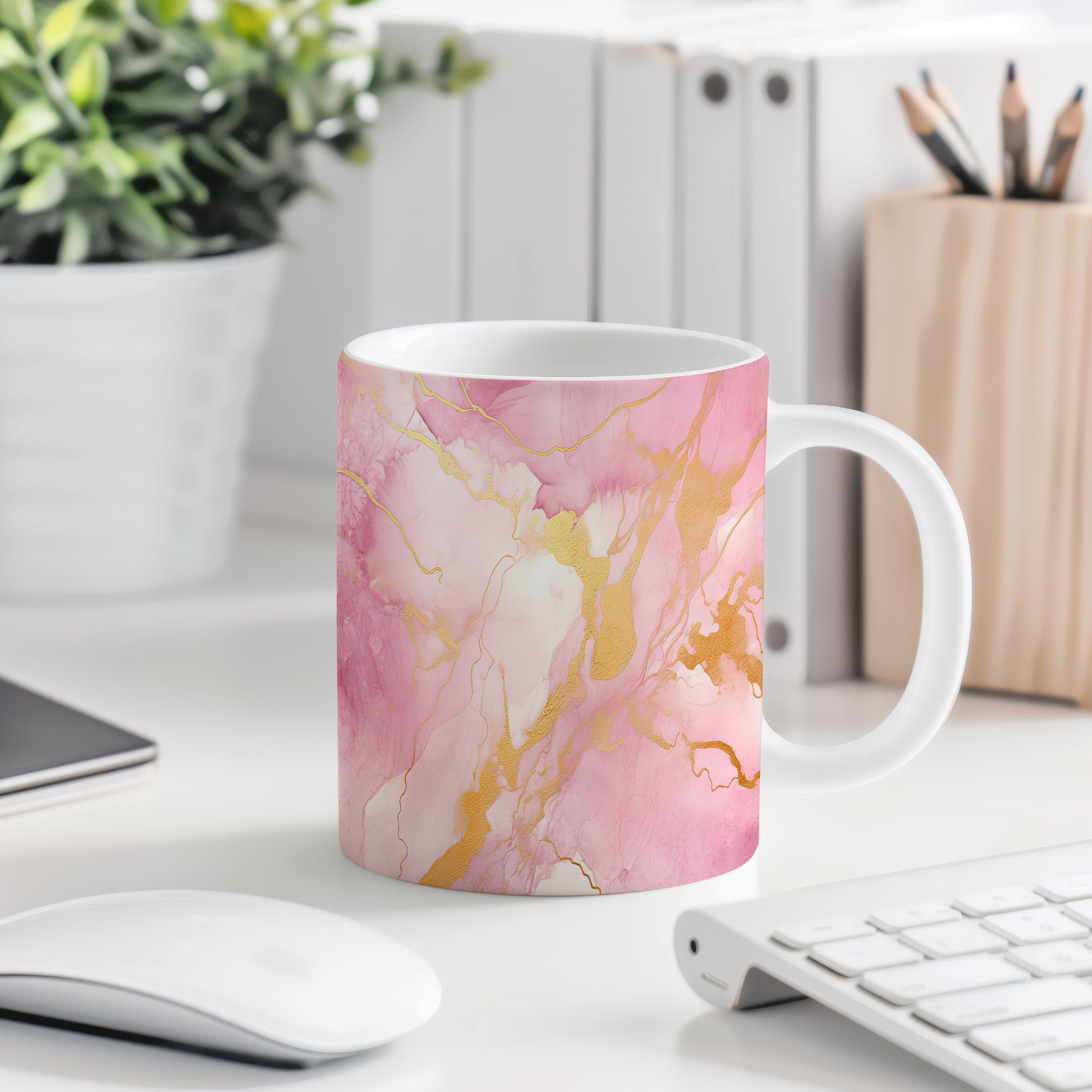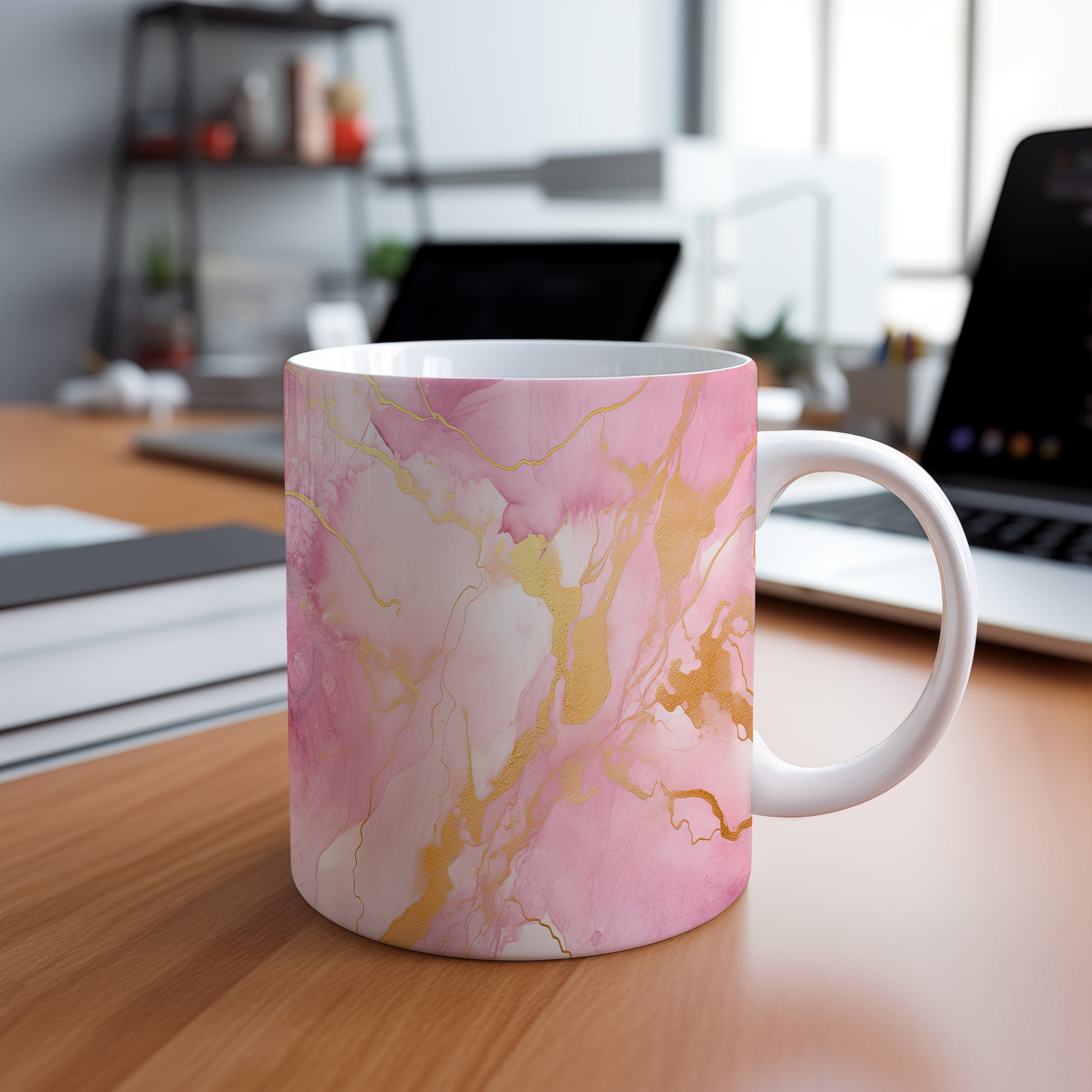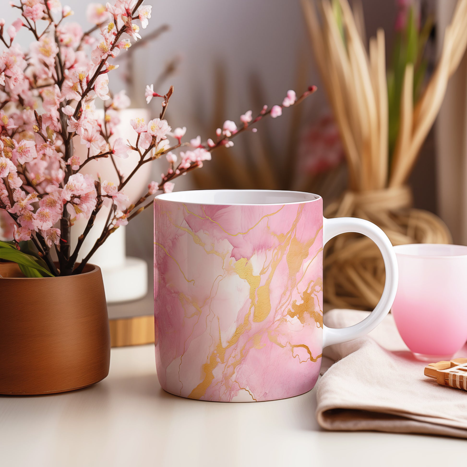 Tento hrnek s mramorováním v růžových a zlatých tónech přináší elegantní a moderní design. Je ideální pro každodenní použití a skvělým dárkem pro milovníky stylového nádobí. Materiál: keramika. Objem: 330 ml. Vhodné do myčky i mikrovlnky. Díky svému jedinečnému vzhledu se stane ozdobou každého stolu.
