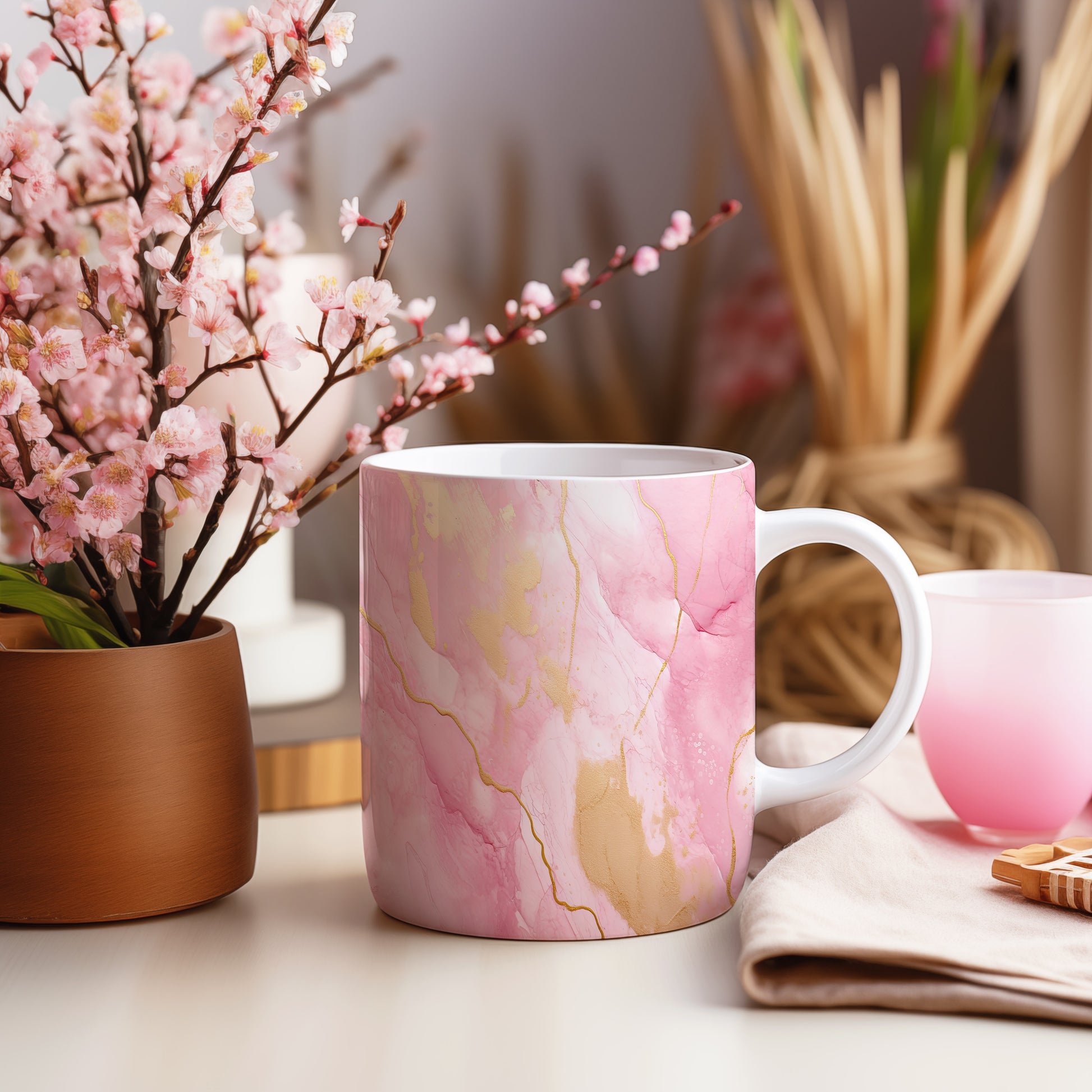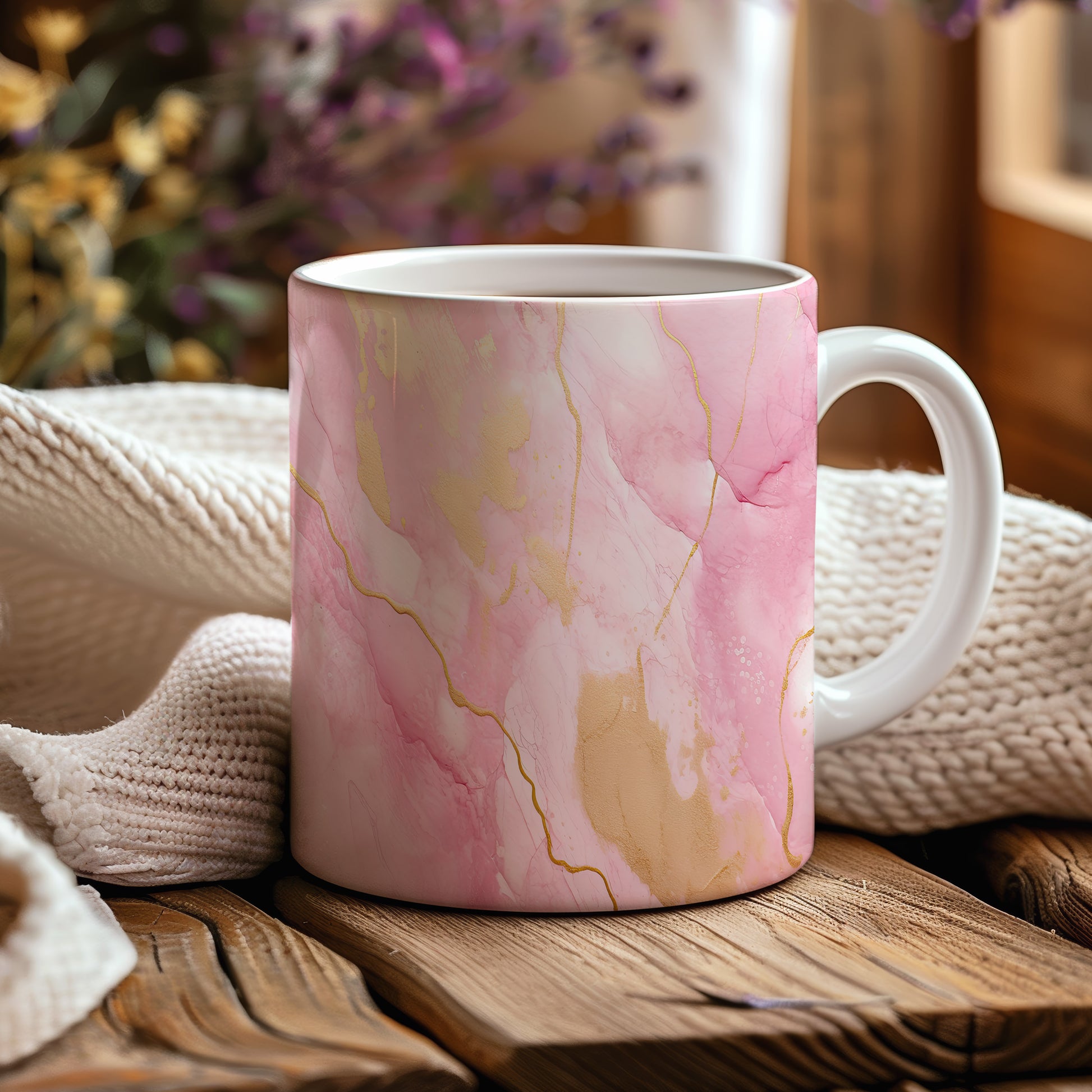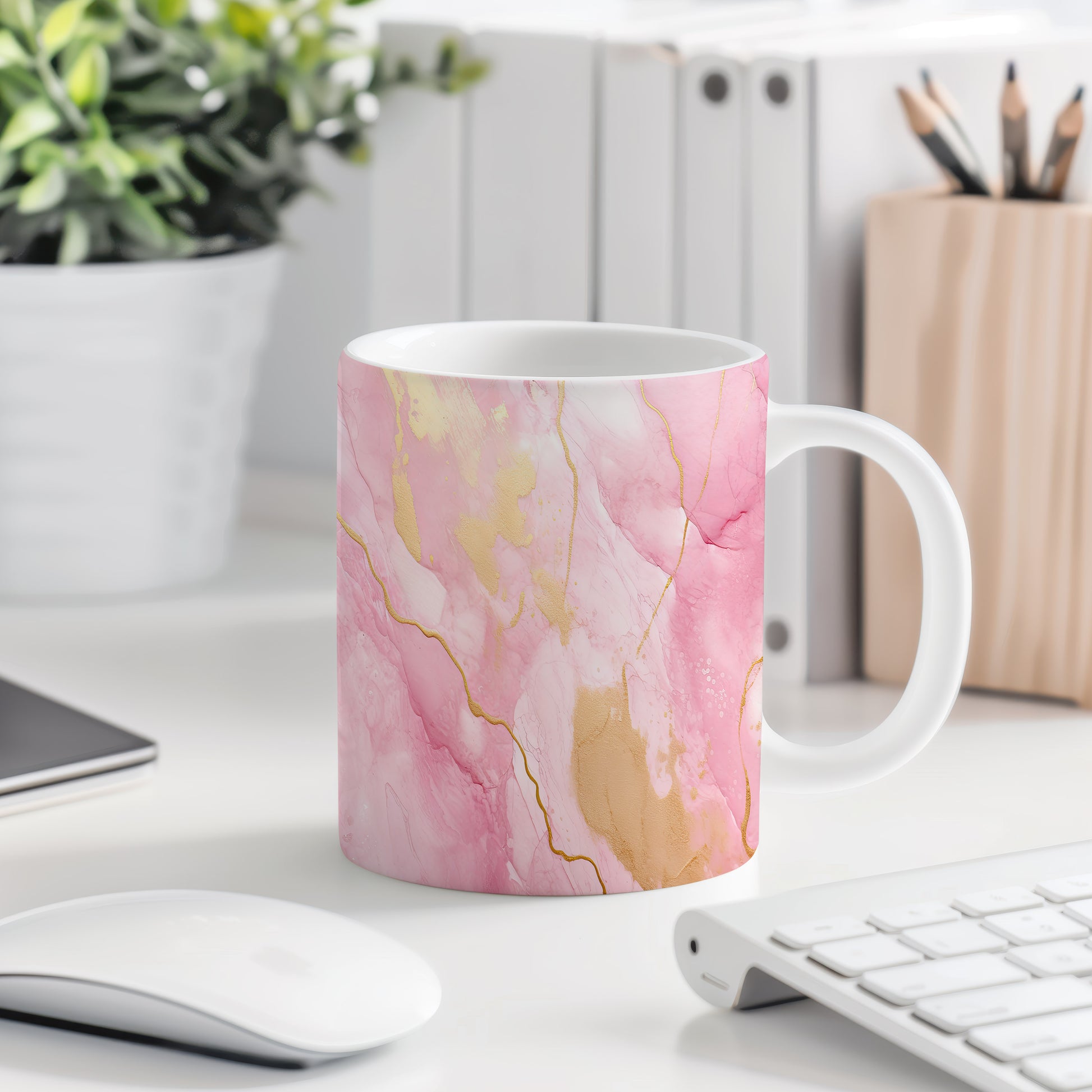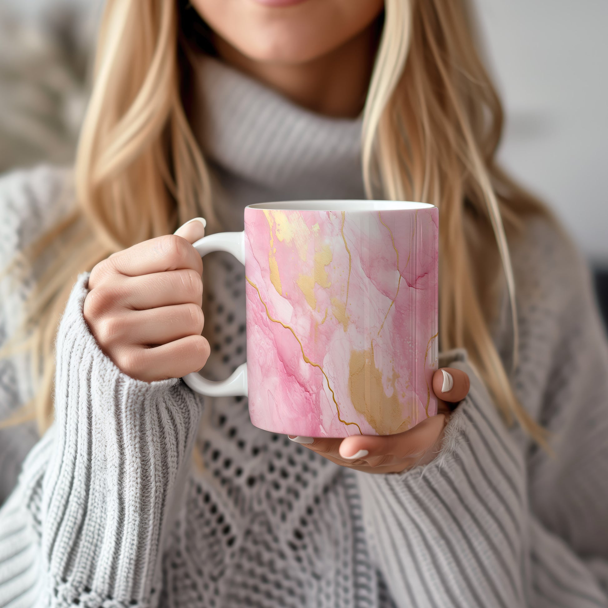 Hrnek s jemně mramorovaným vzorem v růžových a zlatých odstínech, elegantní a minimalistický. Je ideální pro milovníky stylového nádobí a skvělým dárkem pro přátele či rodinu. Materiál: keramika. Objem: 330 ml. Vhodné do myčky i mikrovlnky. Tento hrnek přináší do každodenního pití špetku luxusu a radosti.