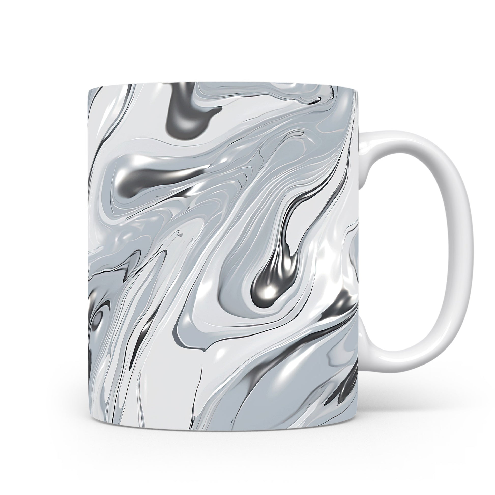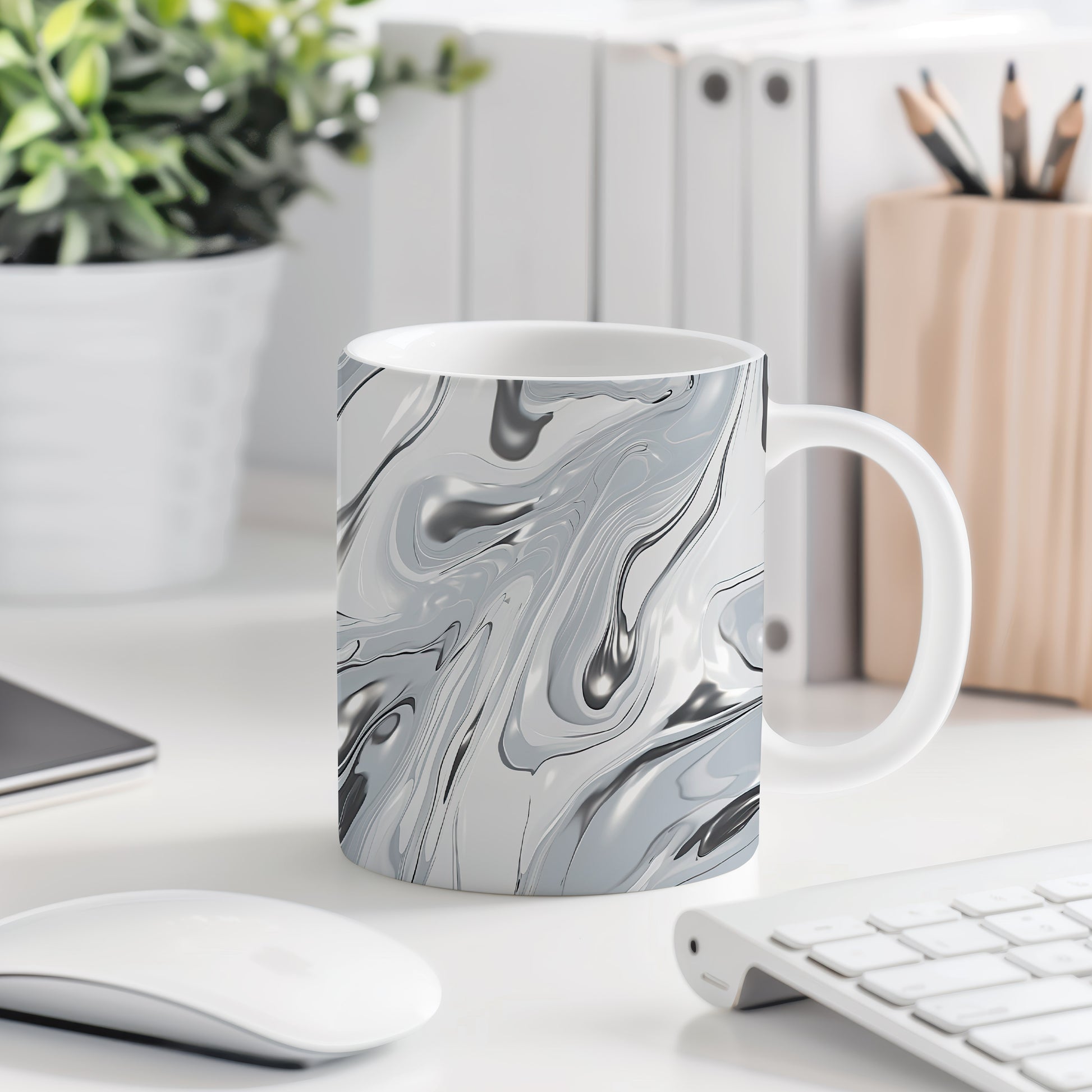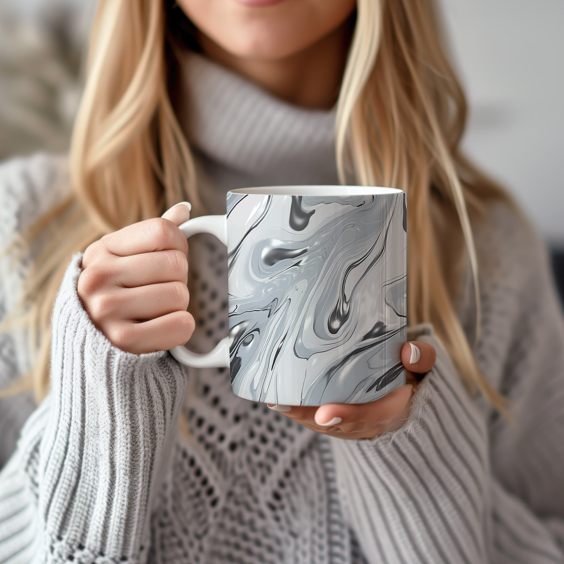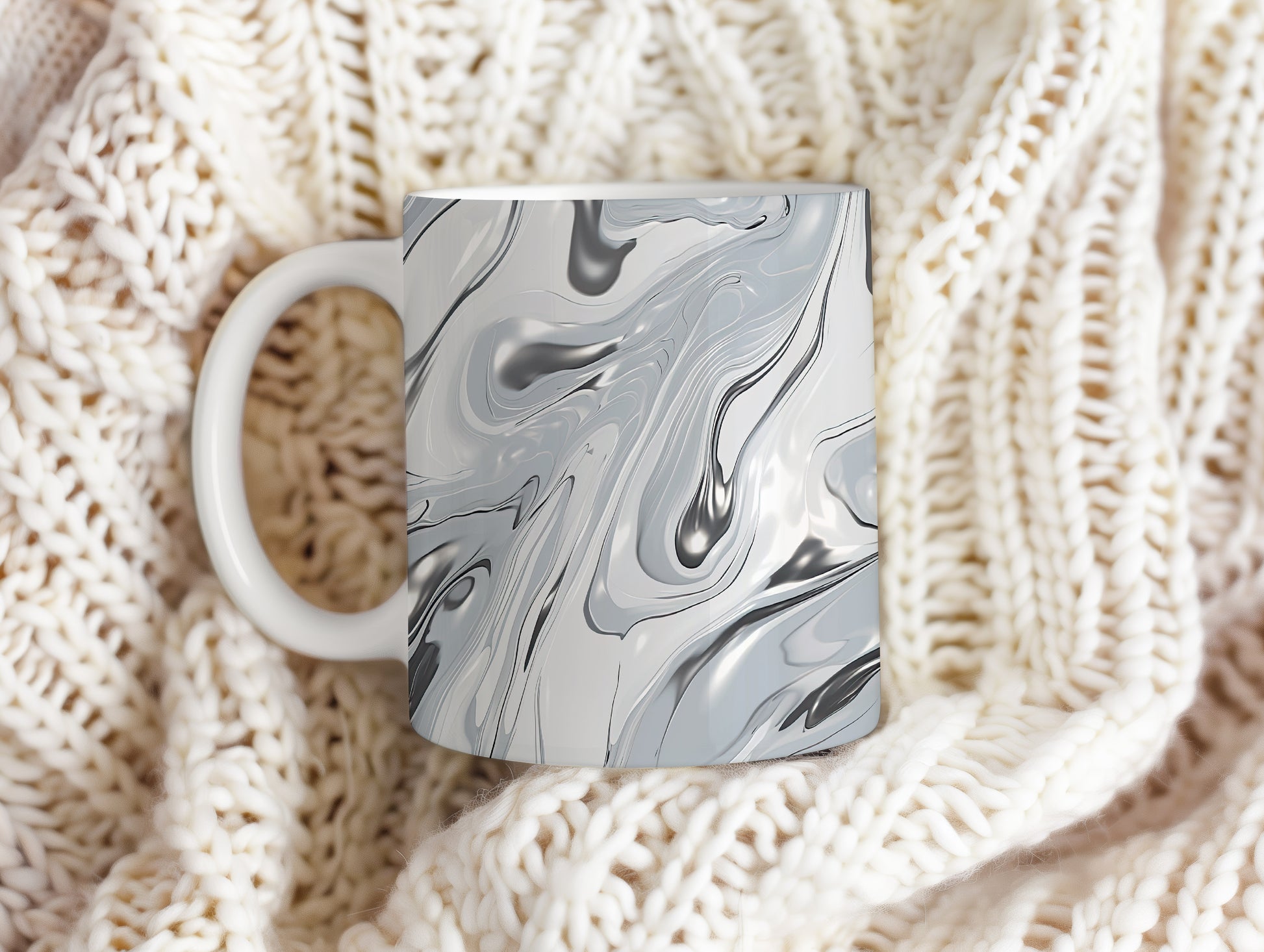 Hrnek s mramorováním v šedých a stříbrných tónech
