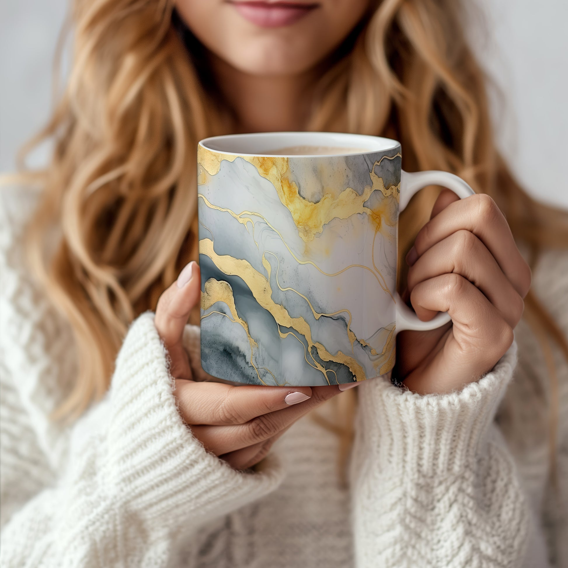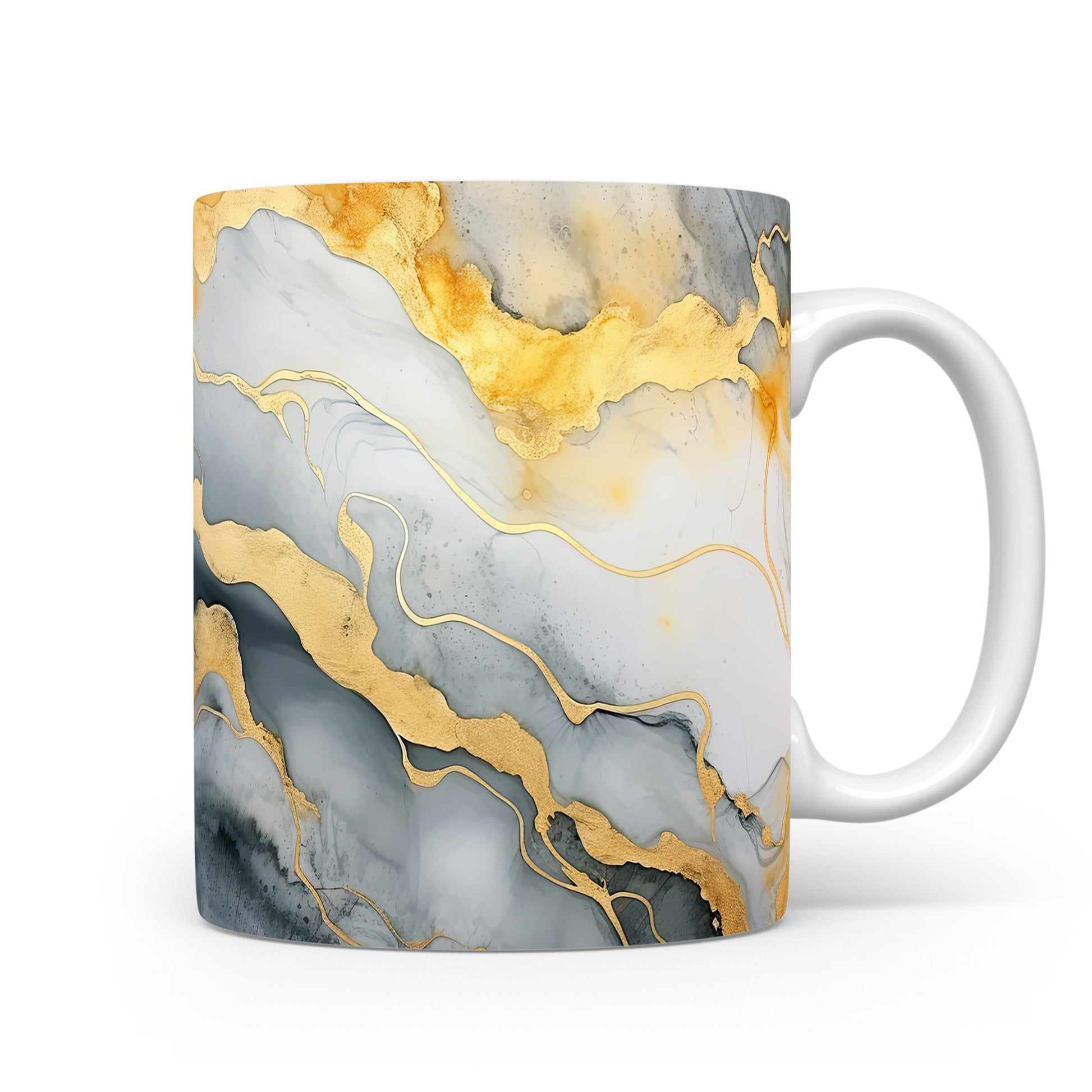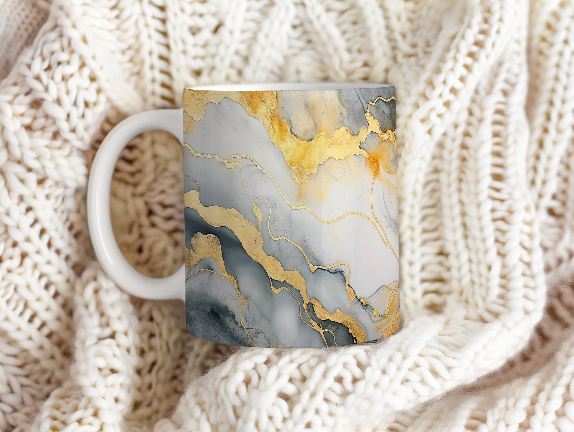 Hrnek s mramorováním v šedých a zlatých tónech – originálním motivem