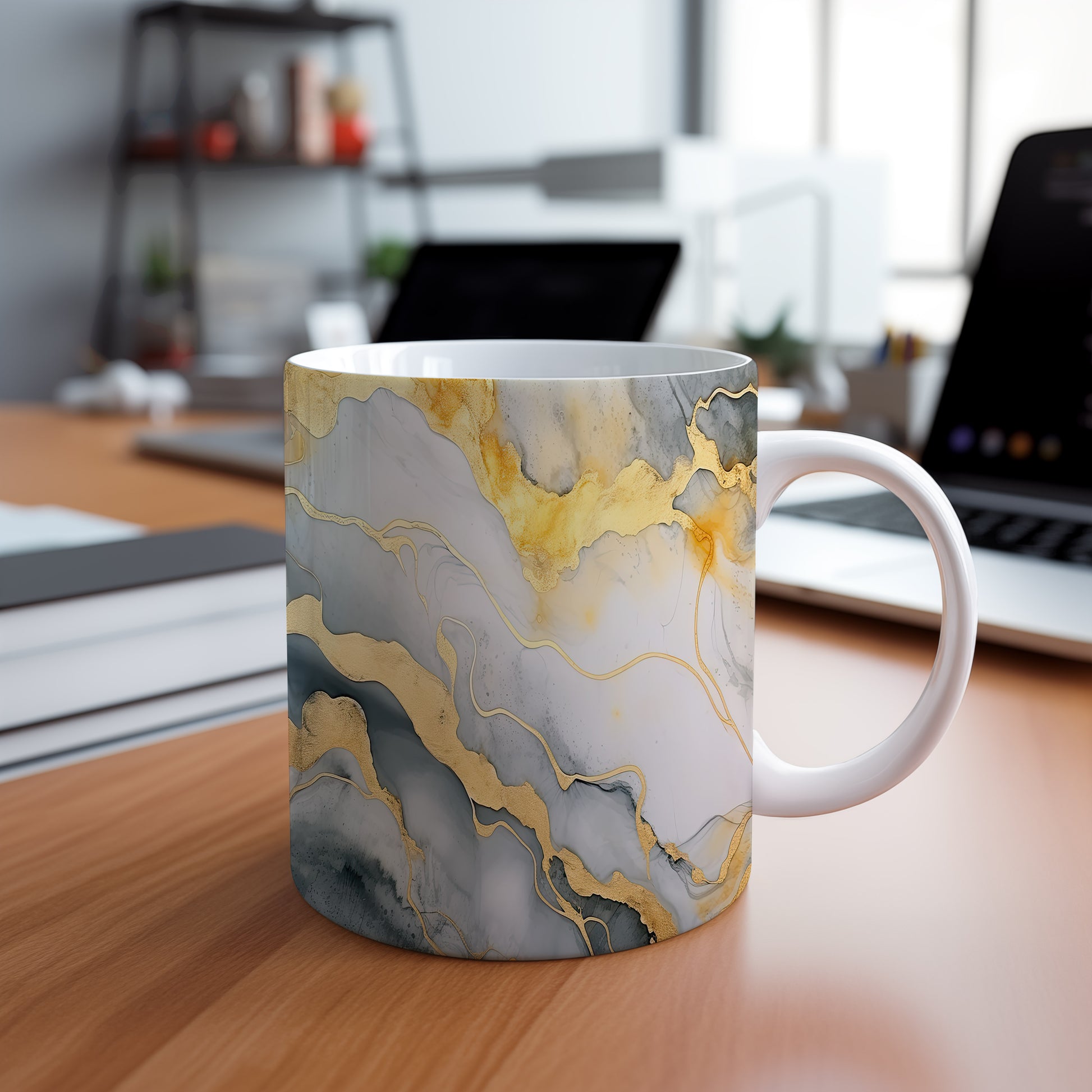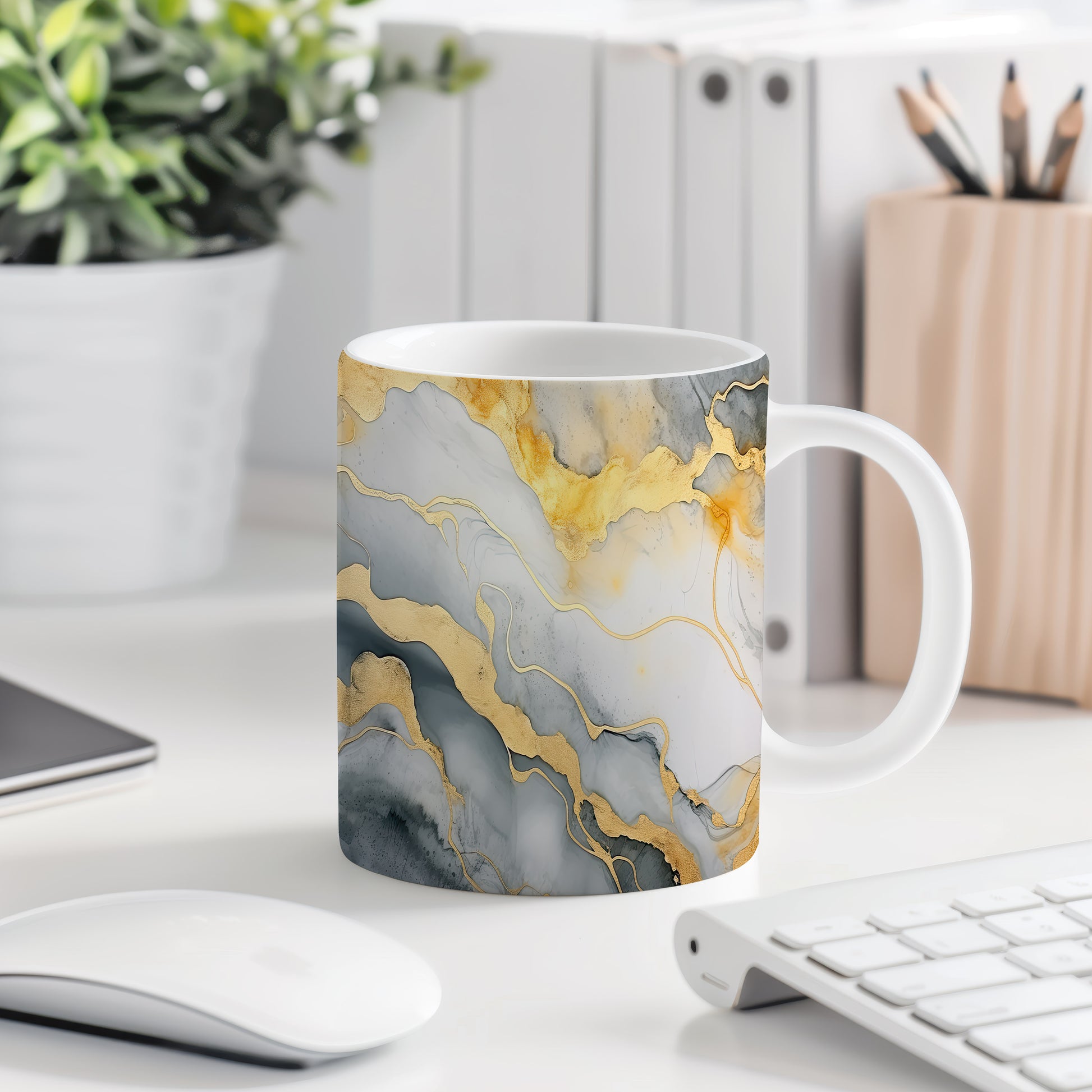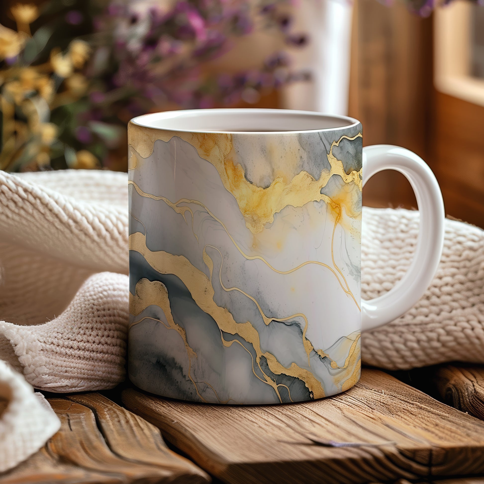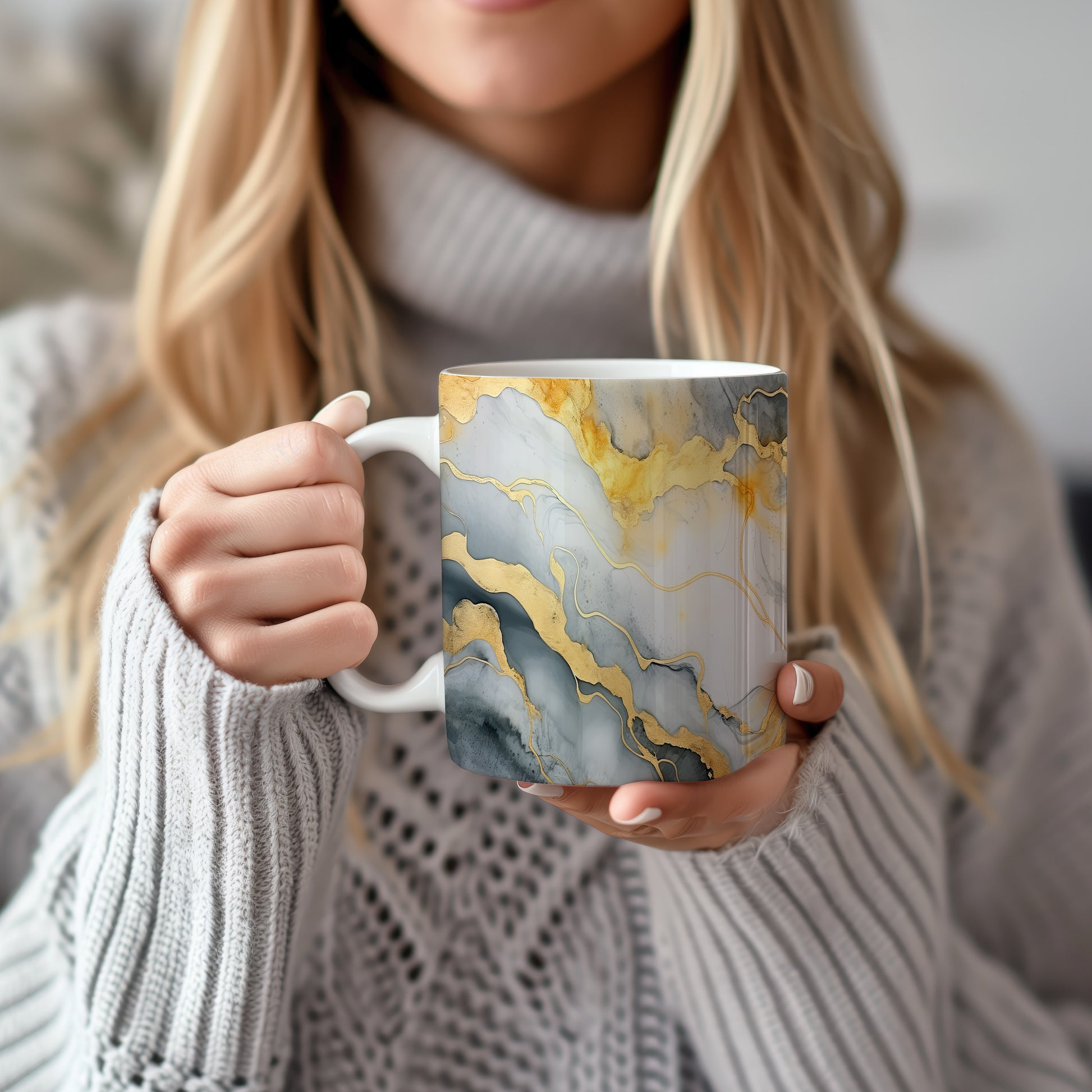 Hrnek s mramorováním v šedých a zlatých tónech – originálním motivem