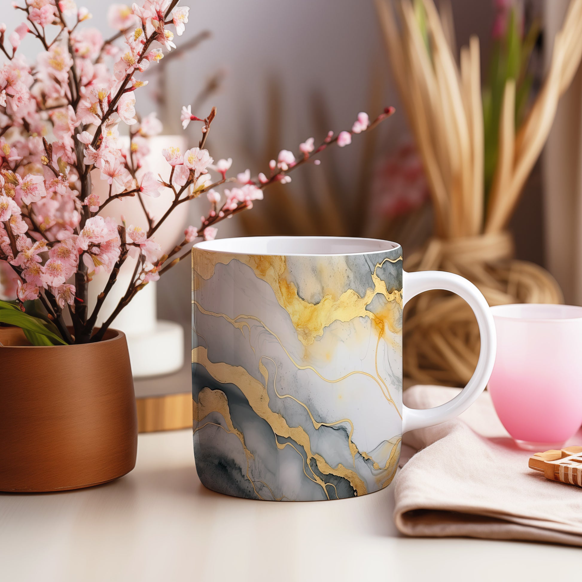 Tento hrnek s mramorováním v šedých a zlatých tónech přináší elegantní a stylový vzhled. Je ideální pro milovníky moderního designu a skvělým dárkem pro každého, kdo ocení krásu a jedinečnost. Materiál: keramika. Objem: 330 ml. Vhodné do myčky i mikrovlnky. Používání tohoto hrnku dodá vašemu pití šmrnc a potěší vaše smysly.