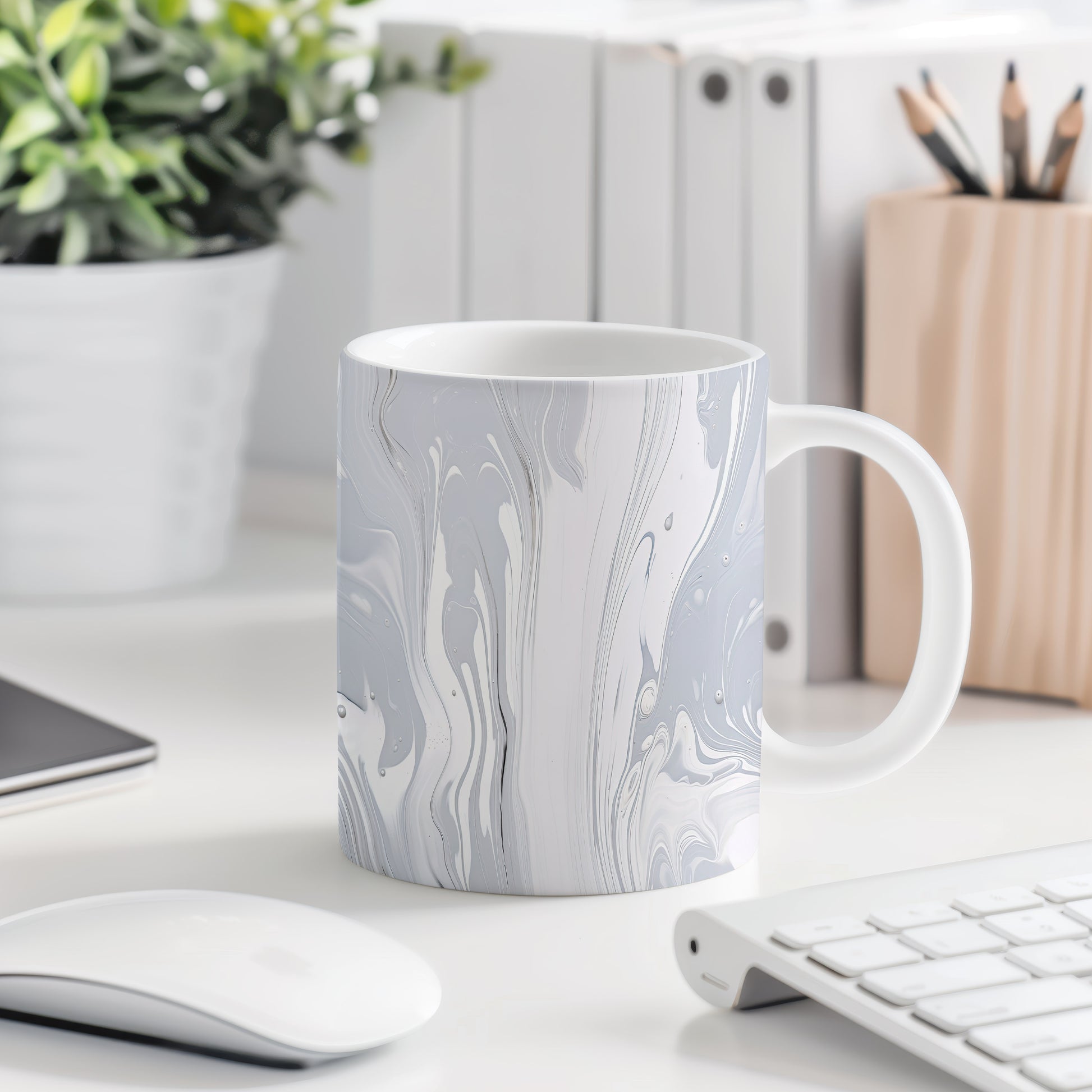 Tento hrnek s mramorováním v šedých tónech přináší elegantní a moderní vzhled. Je ideální pro milovníky minimalistického designu a skvělým dárkem pro každého, kdo ocení stylové doplňky. Materiál: keramika. Objem: 330 ml. Vhodné do myčky i mikrovlnky. Používáním tohoto hrnku si užijete nejen krásný design, ale i praktické vlastnosti.