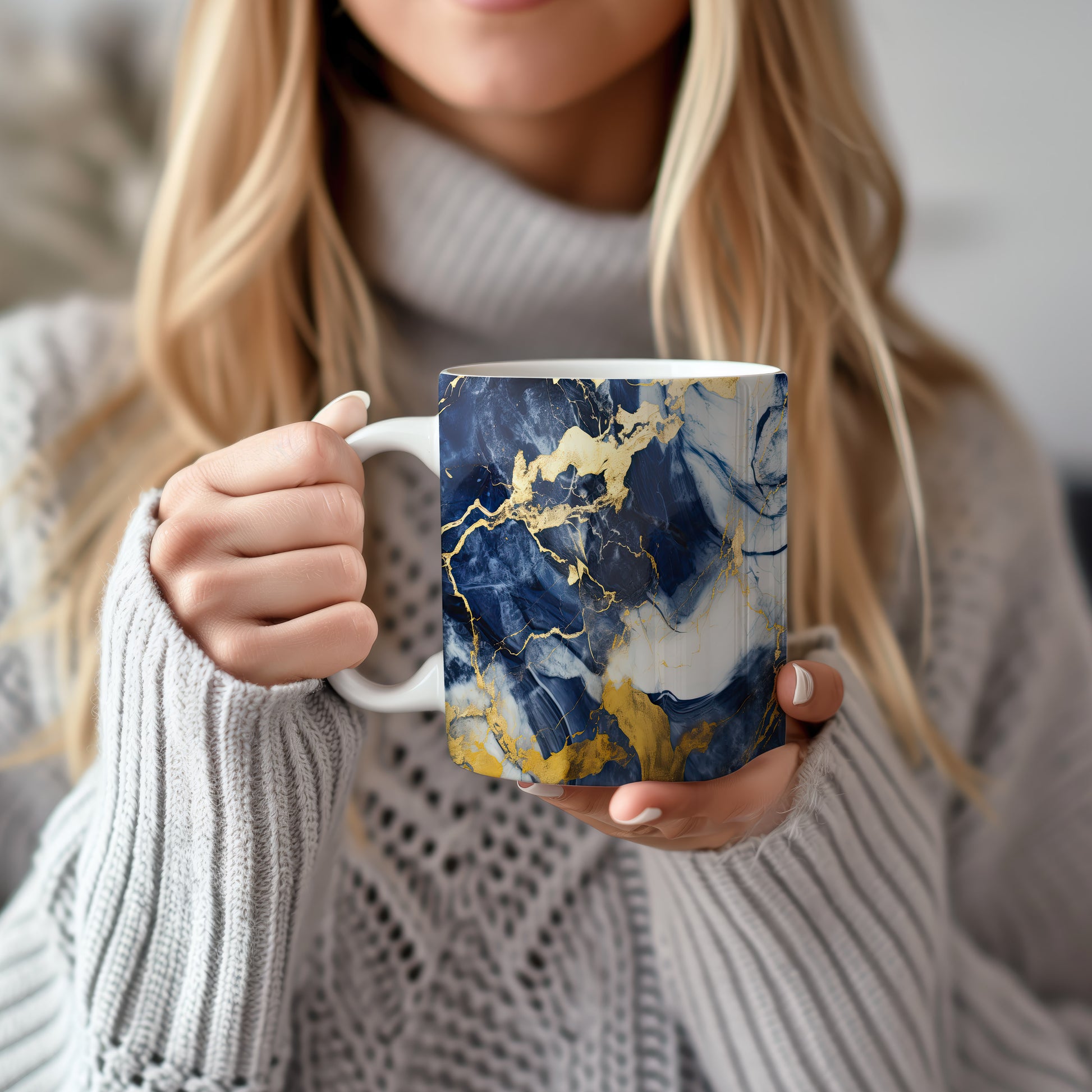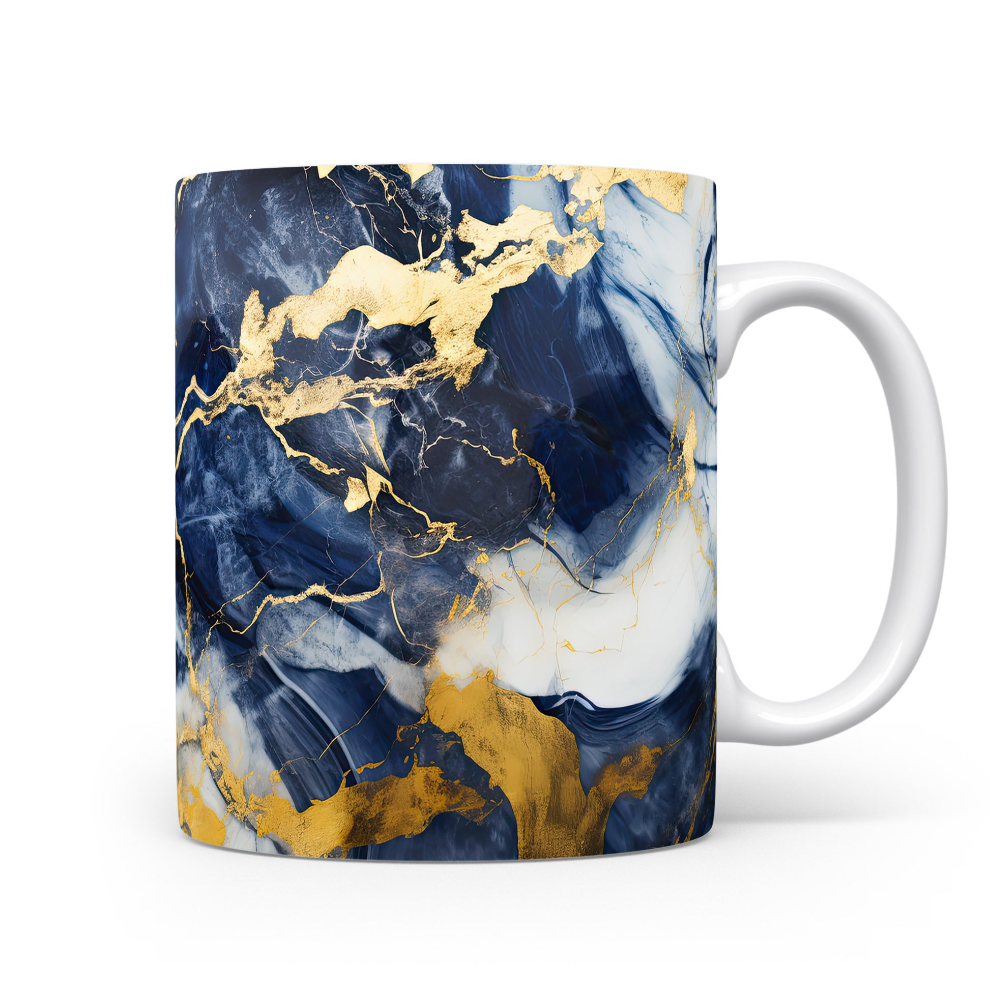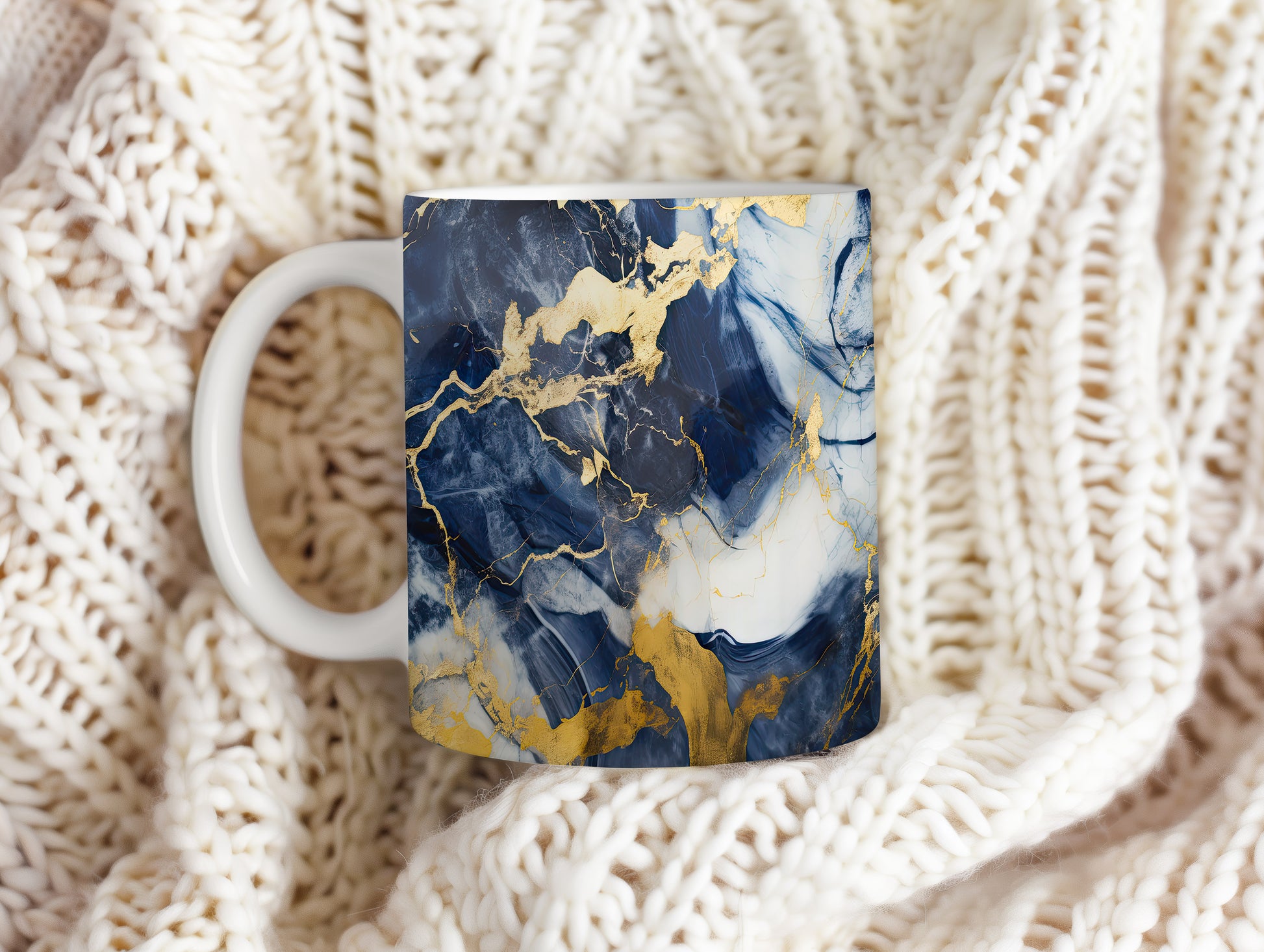 Hrnek s mramorováním v tmavě modré a zlaté – originálním motivem