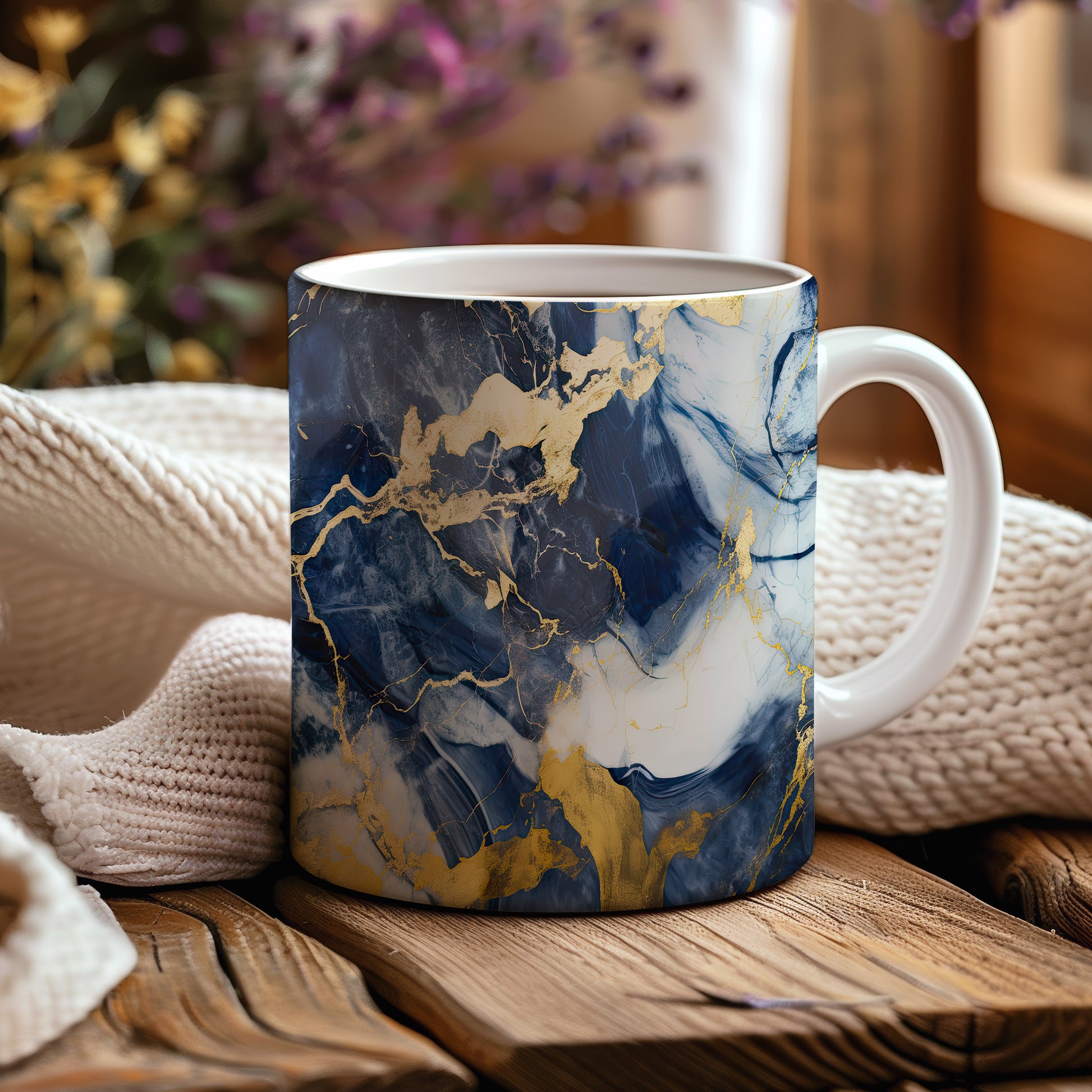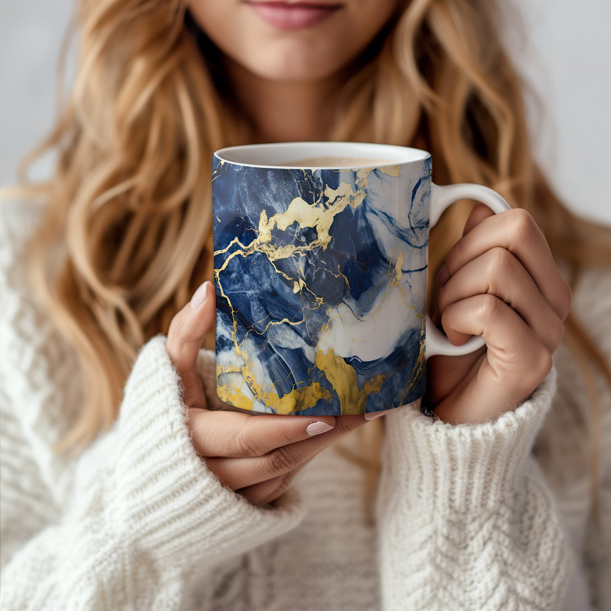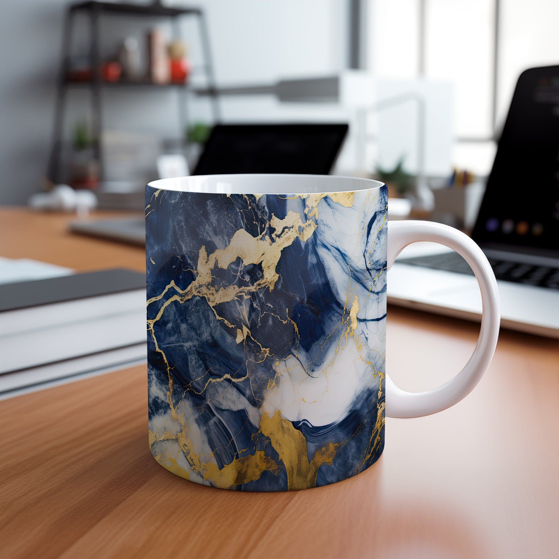 Hrnek s mramorováním v tmavě modré a zlaté – originálním motivem
