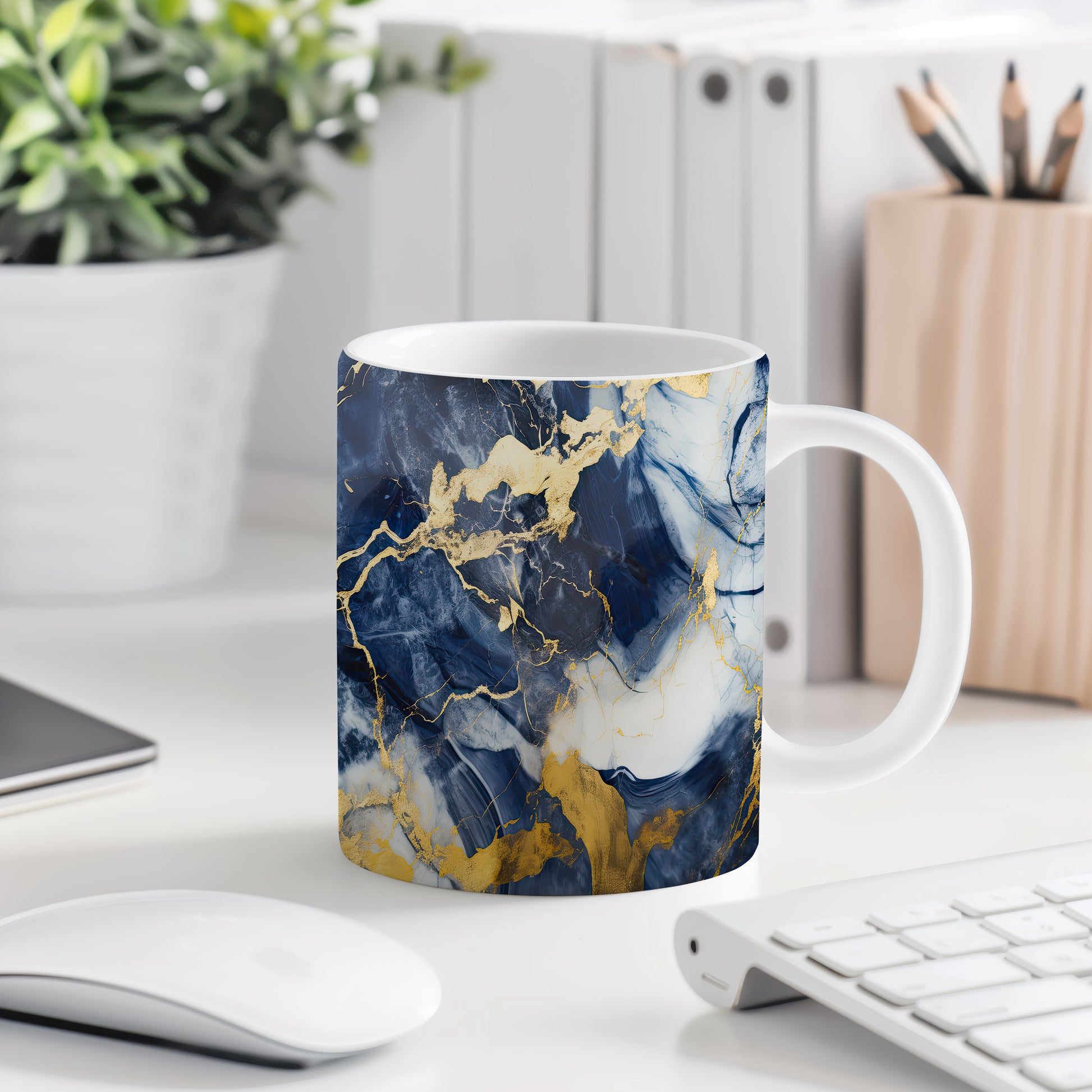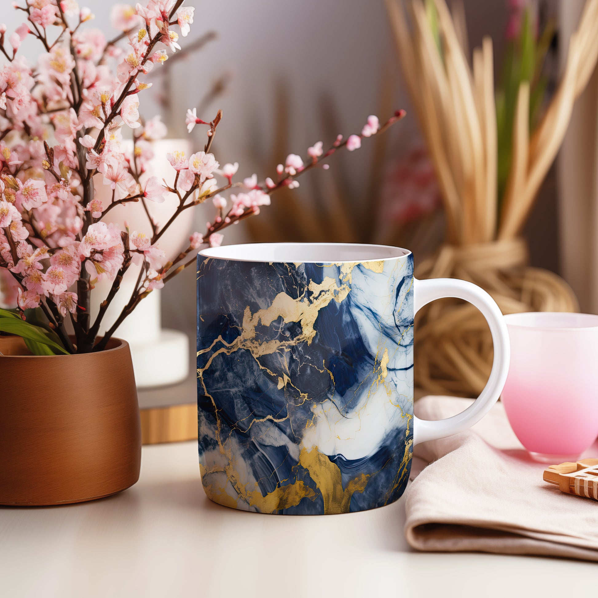 Hrnek s elegantním mramorováním v tmavě modré a zlaté barvě přináší sofistikovaný vzhled. Je ideální pro milovníky stylového nádobí a skvělým dárkem pro přátele či rodinu. Materiál: keramika. Objem: 330 ml. Vhodné do myčky i mikrovlnky. Tento hrnek dodá vašemu pití nádech luxusu a elegance.