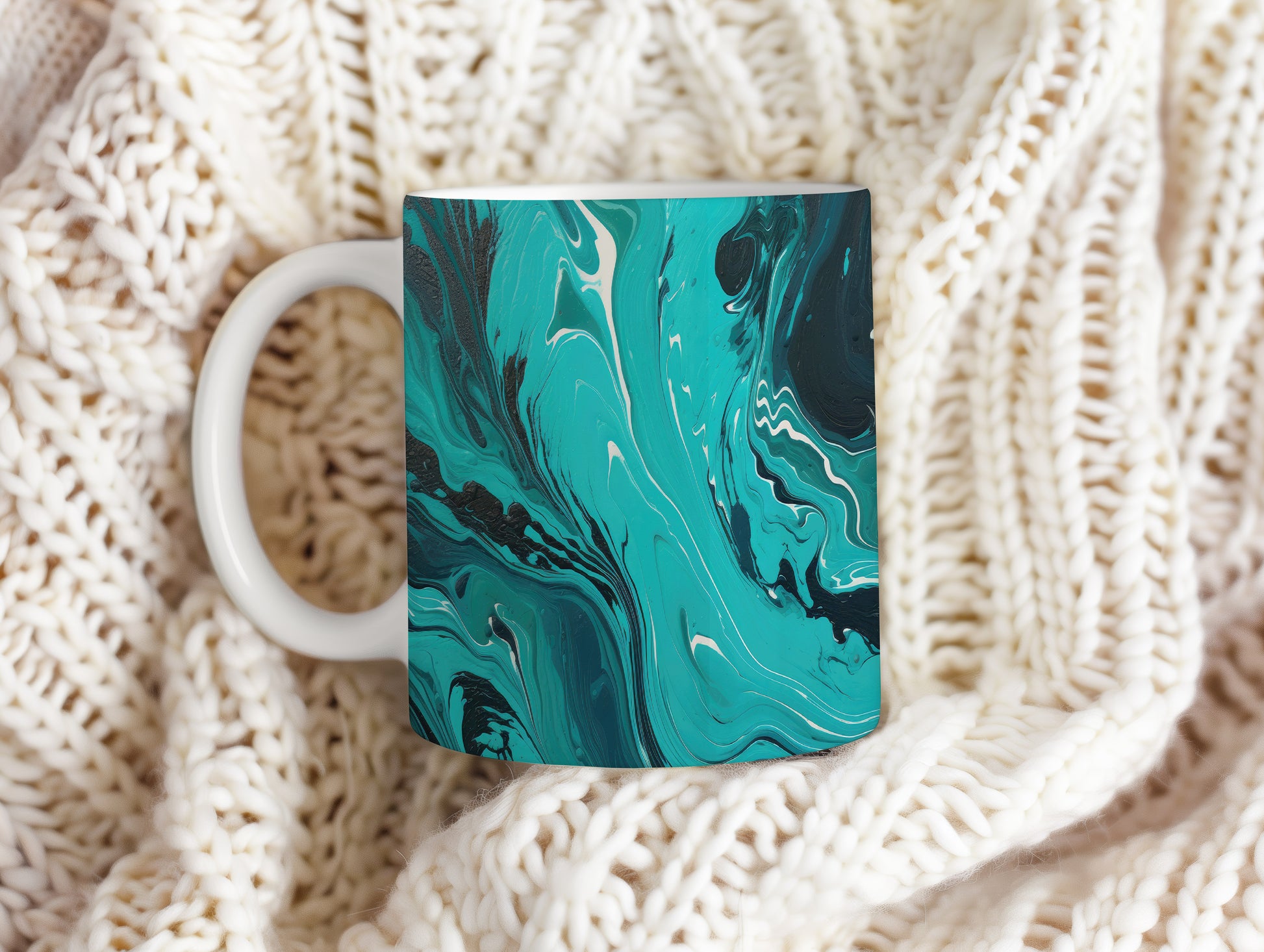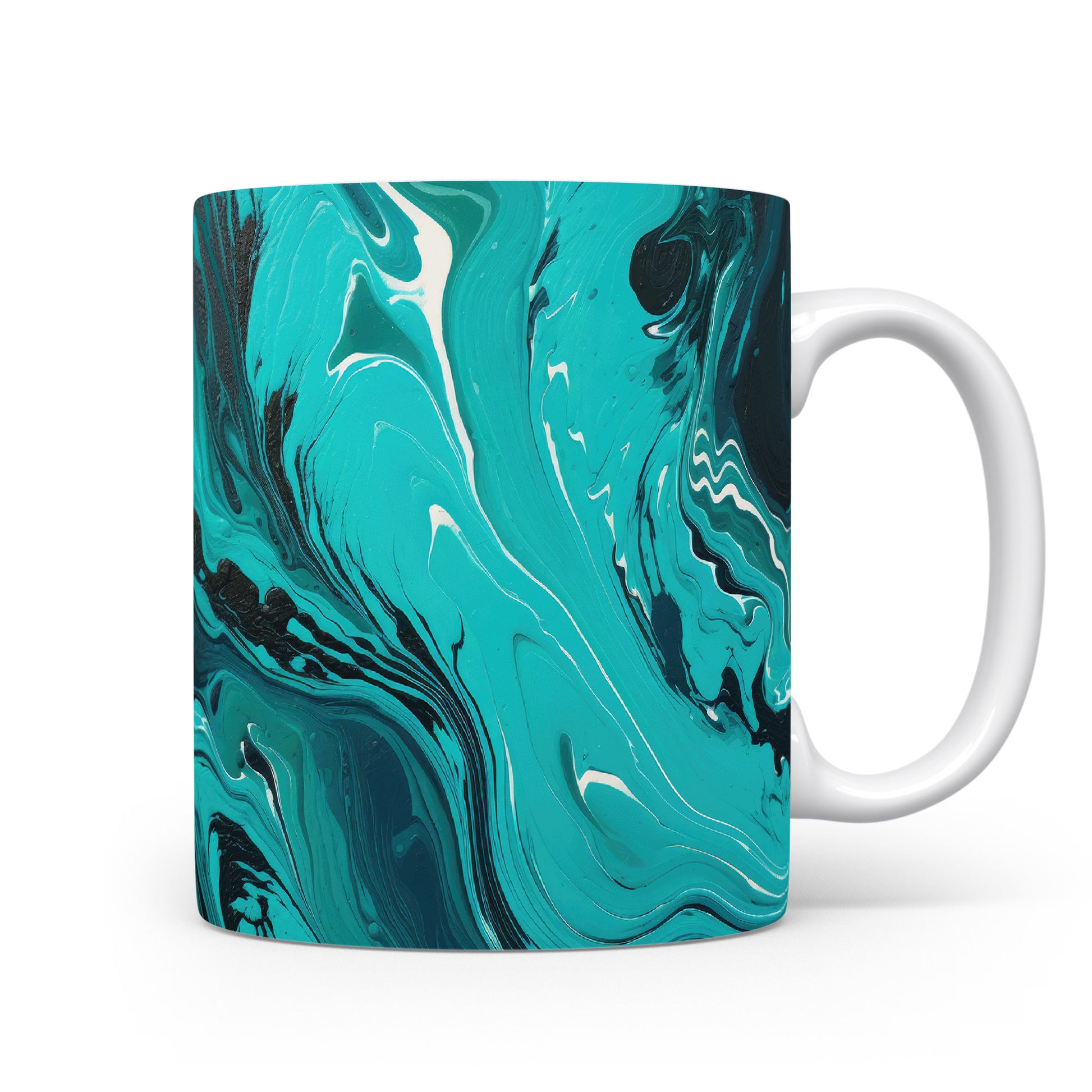 Hrnek s mramorováním v tyrkysových a černých tónech