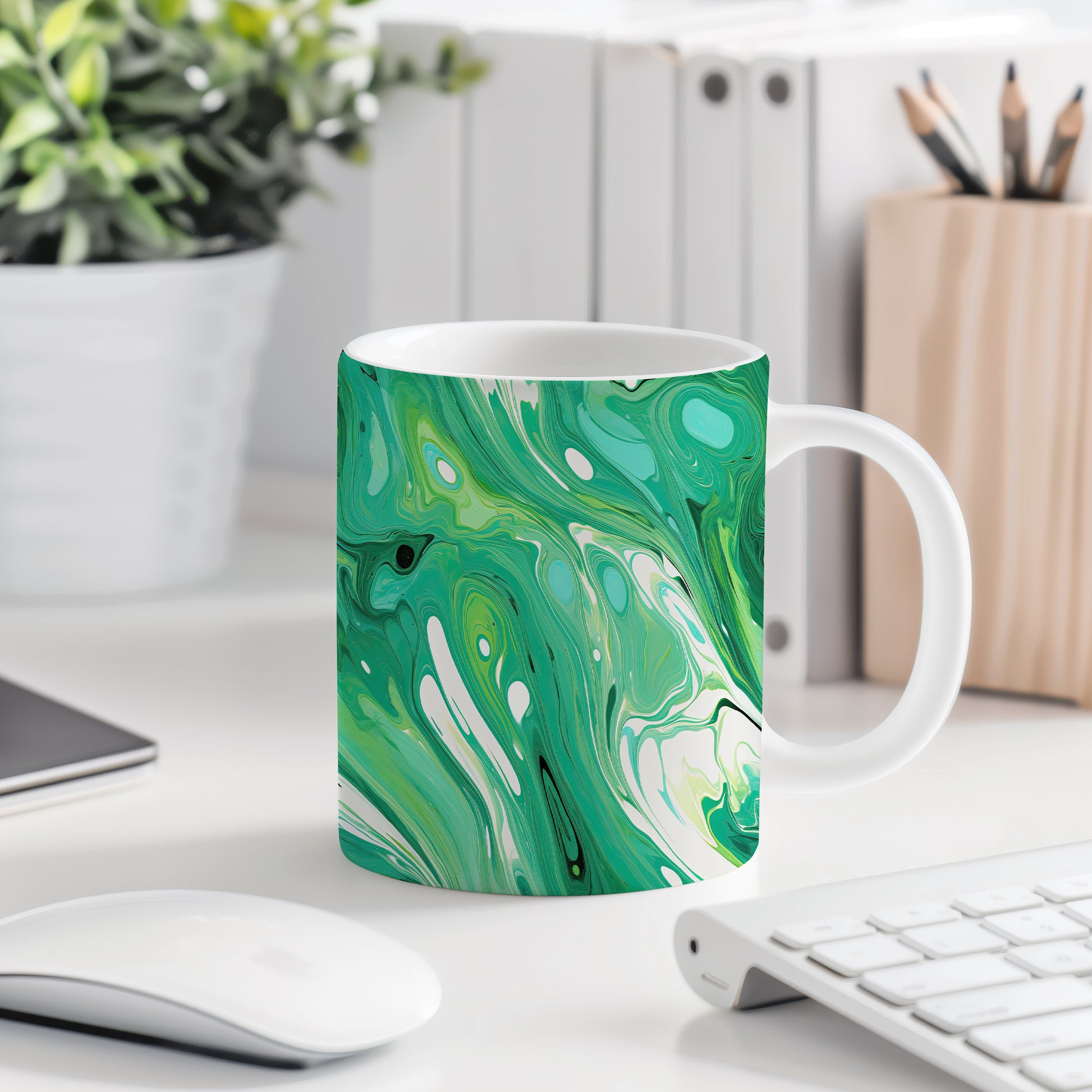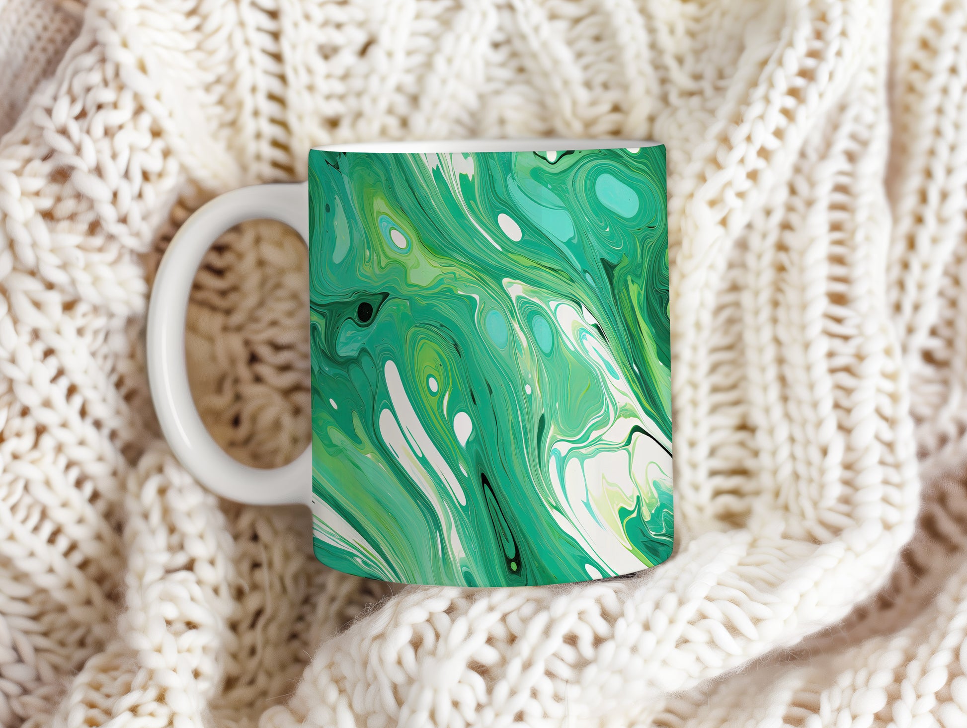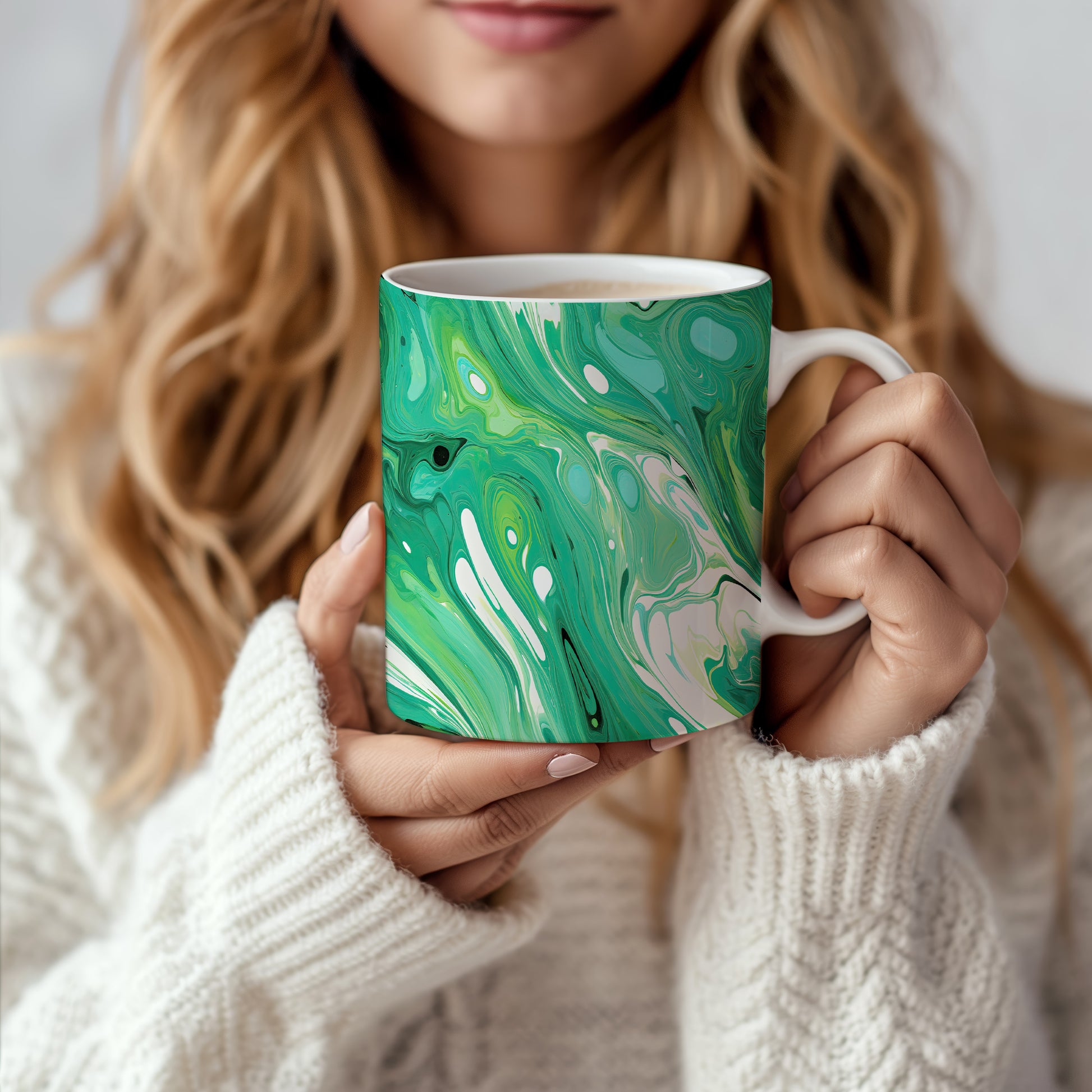 Hrnek s mramorováním v zelených a bílých tónech