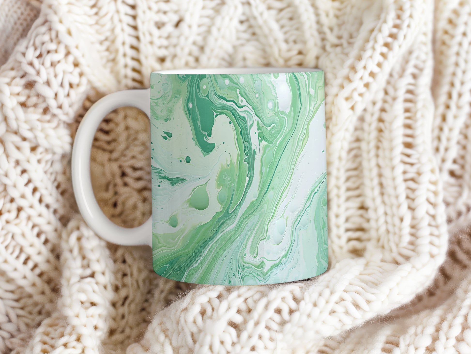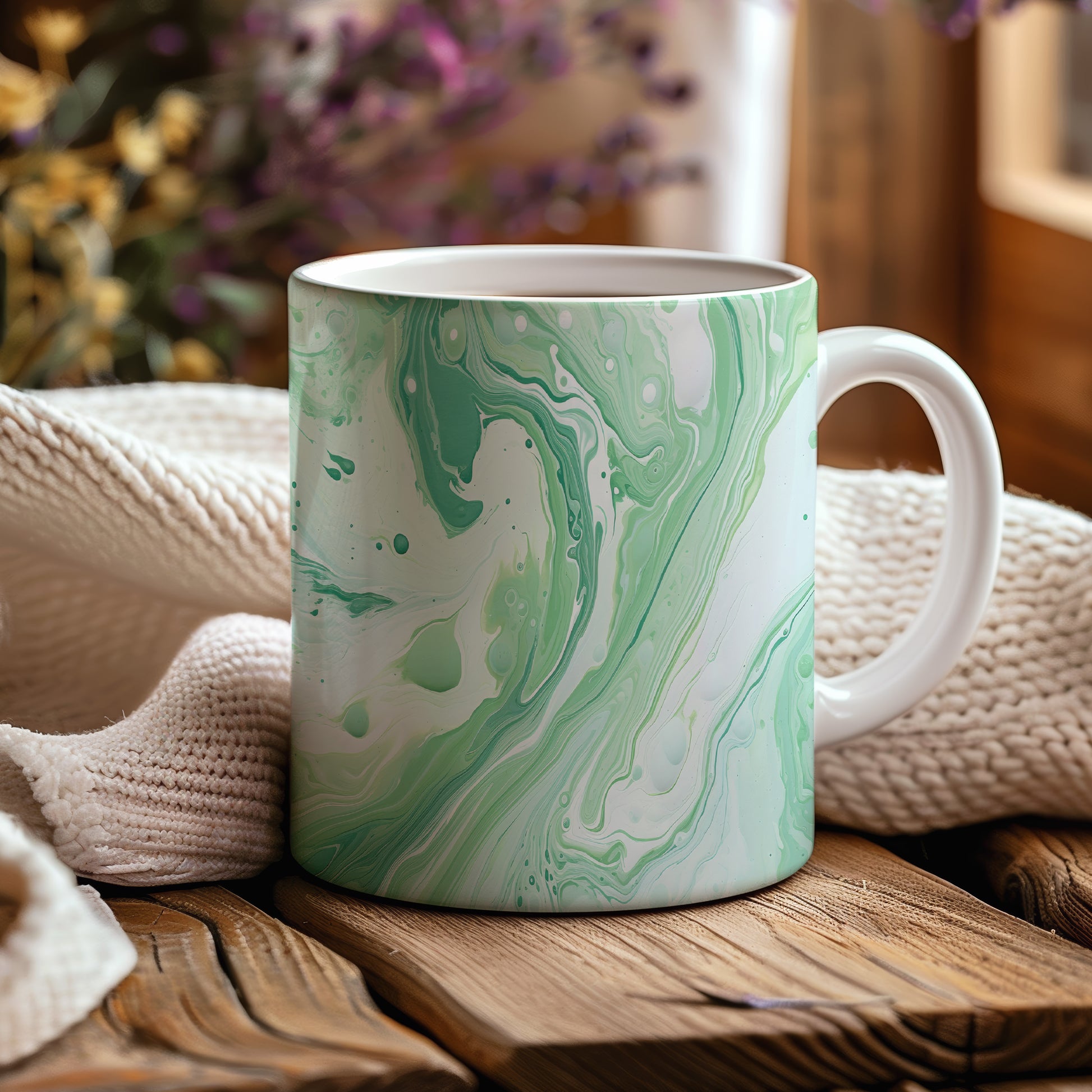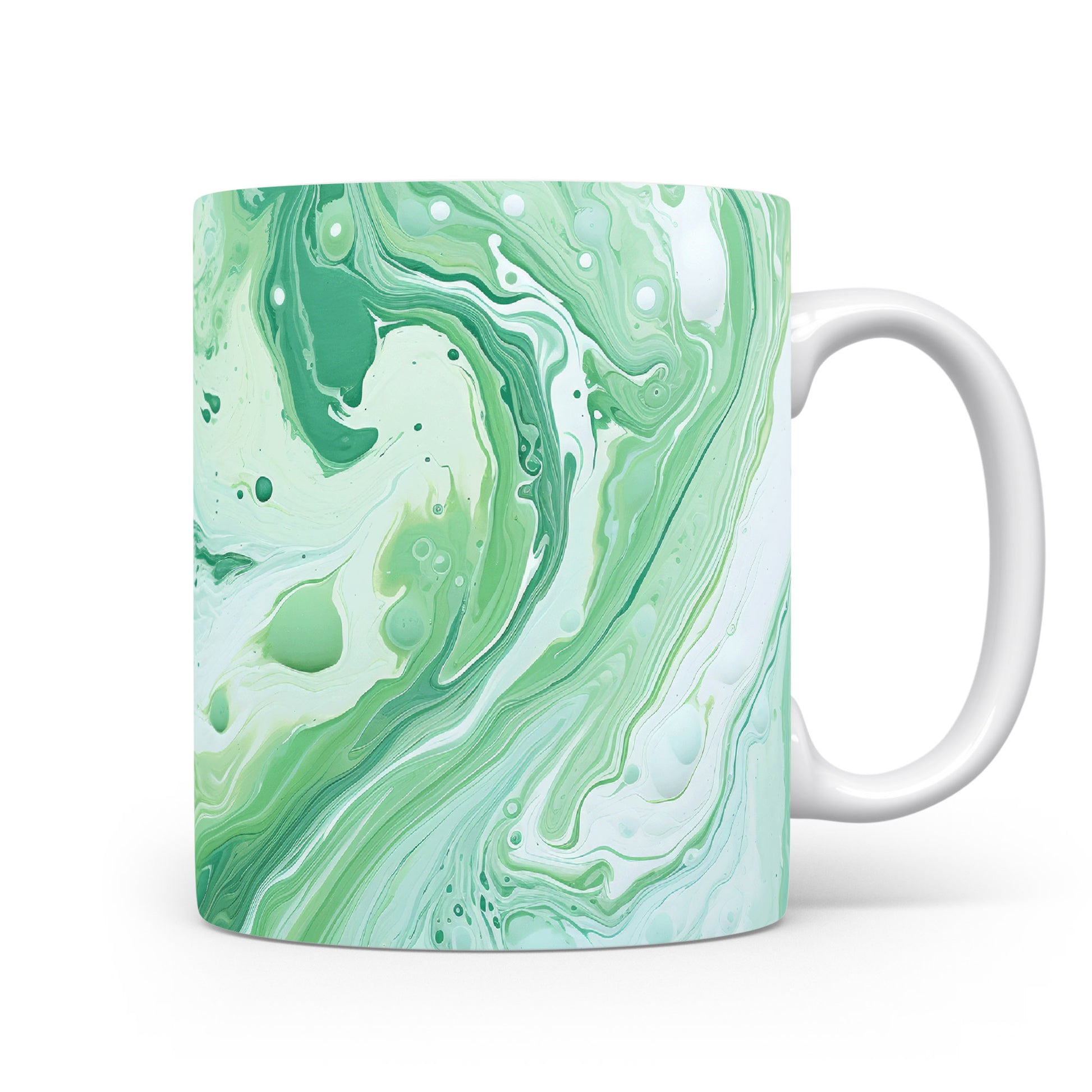 Hrnek s mramorováním v zelených a bílých tónech – originálním motivem