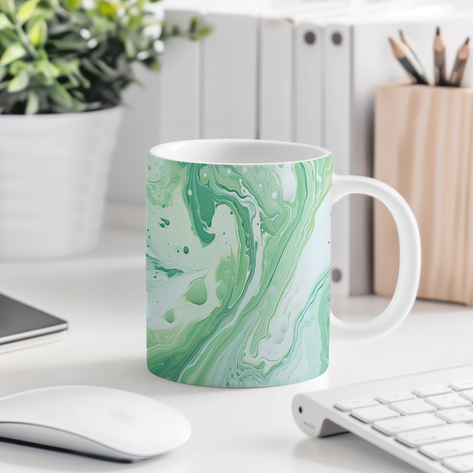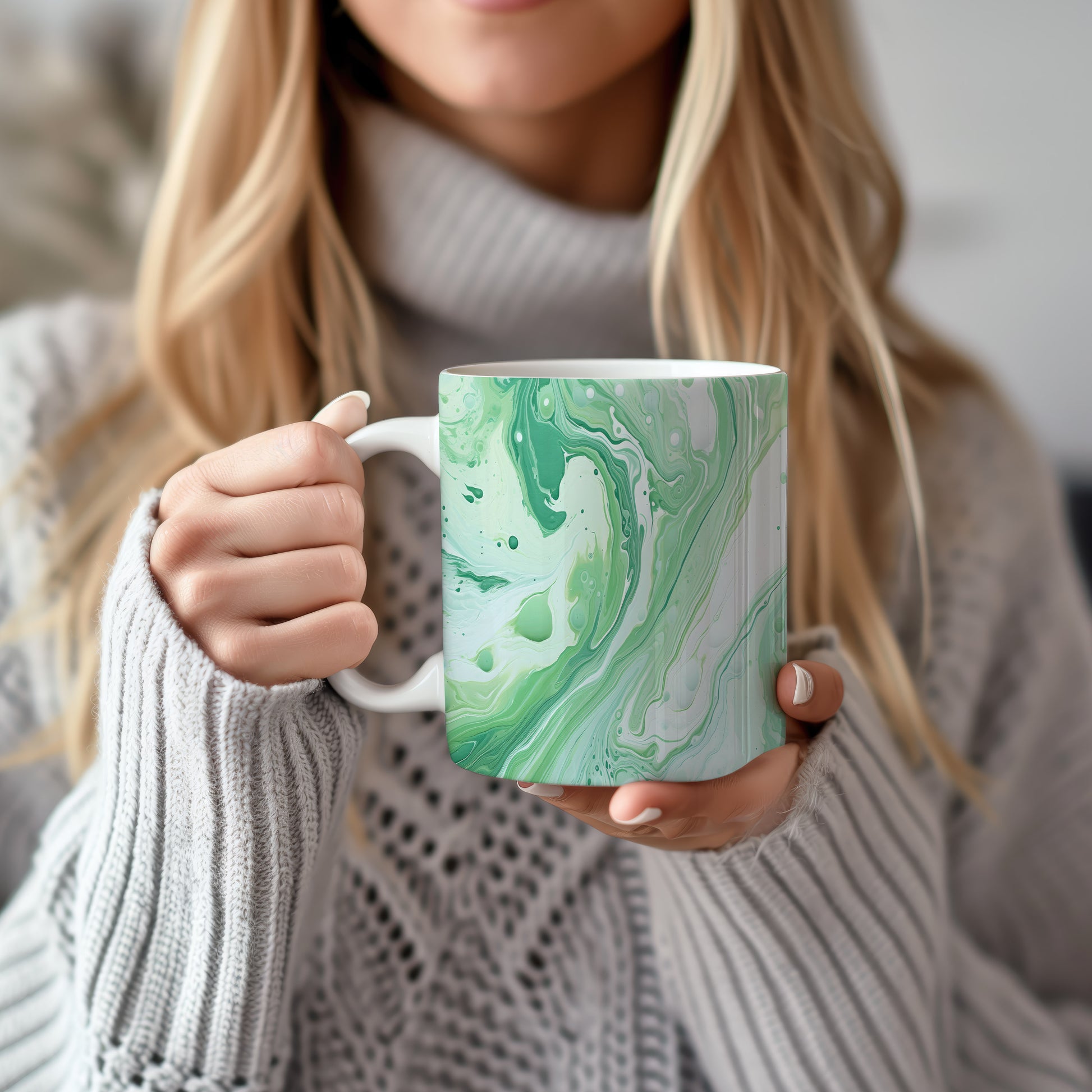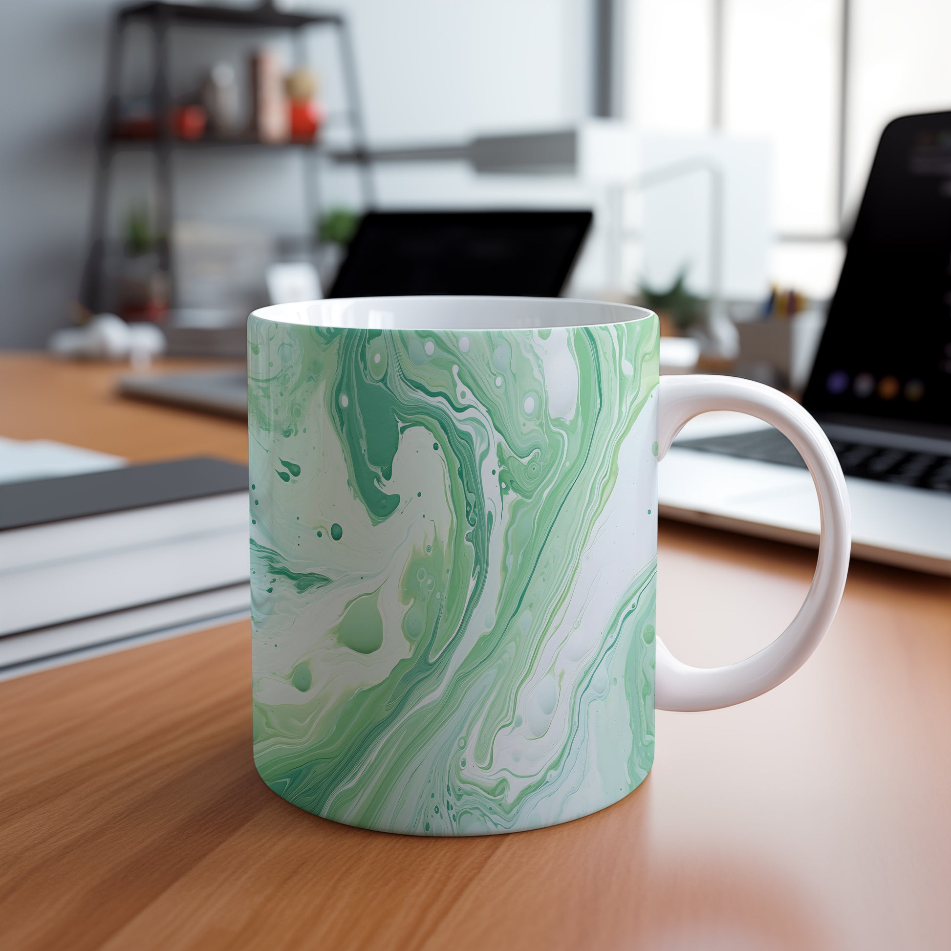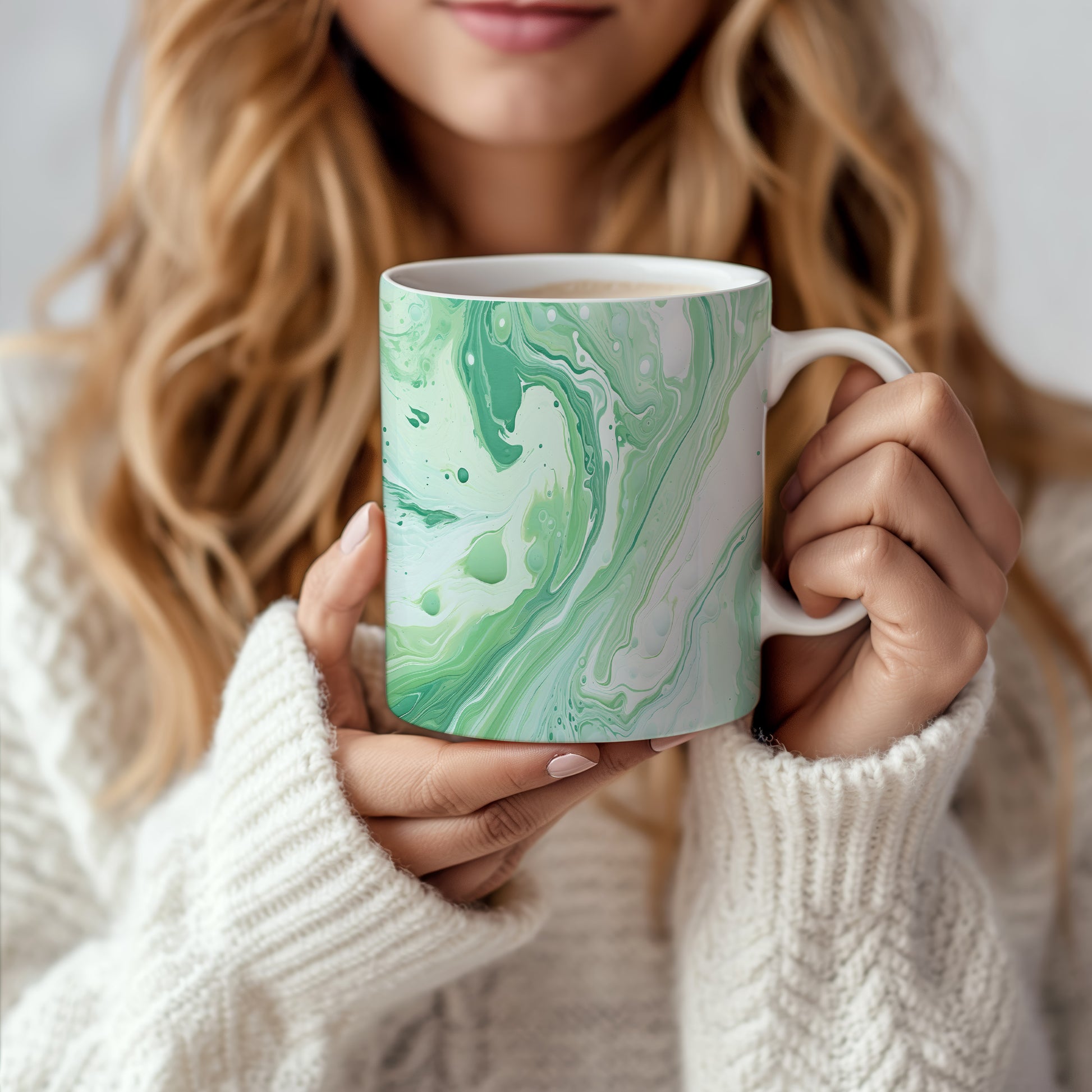 Hrnek s mramorováním v zelených a bílých tónech – originálním motivem