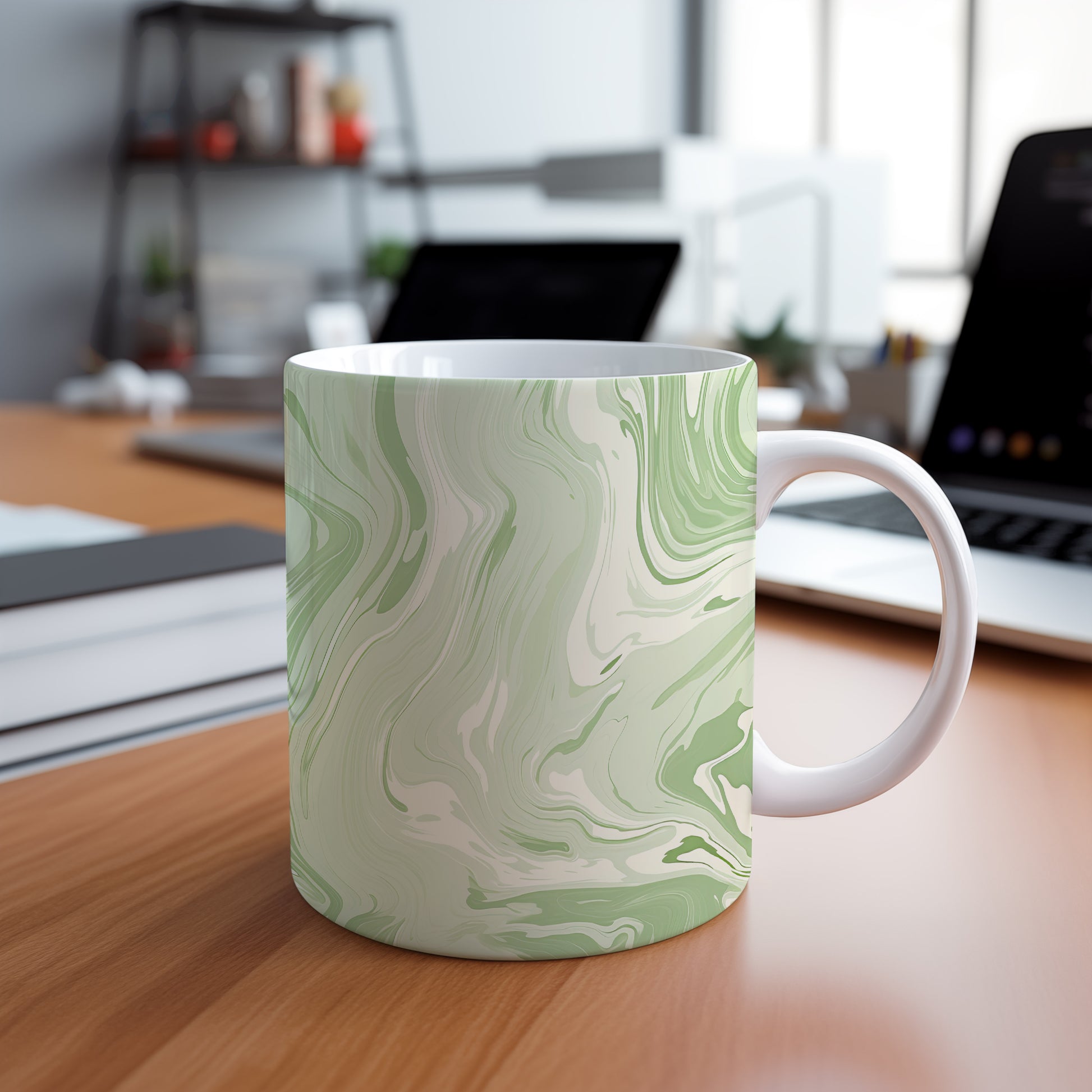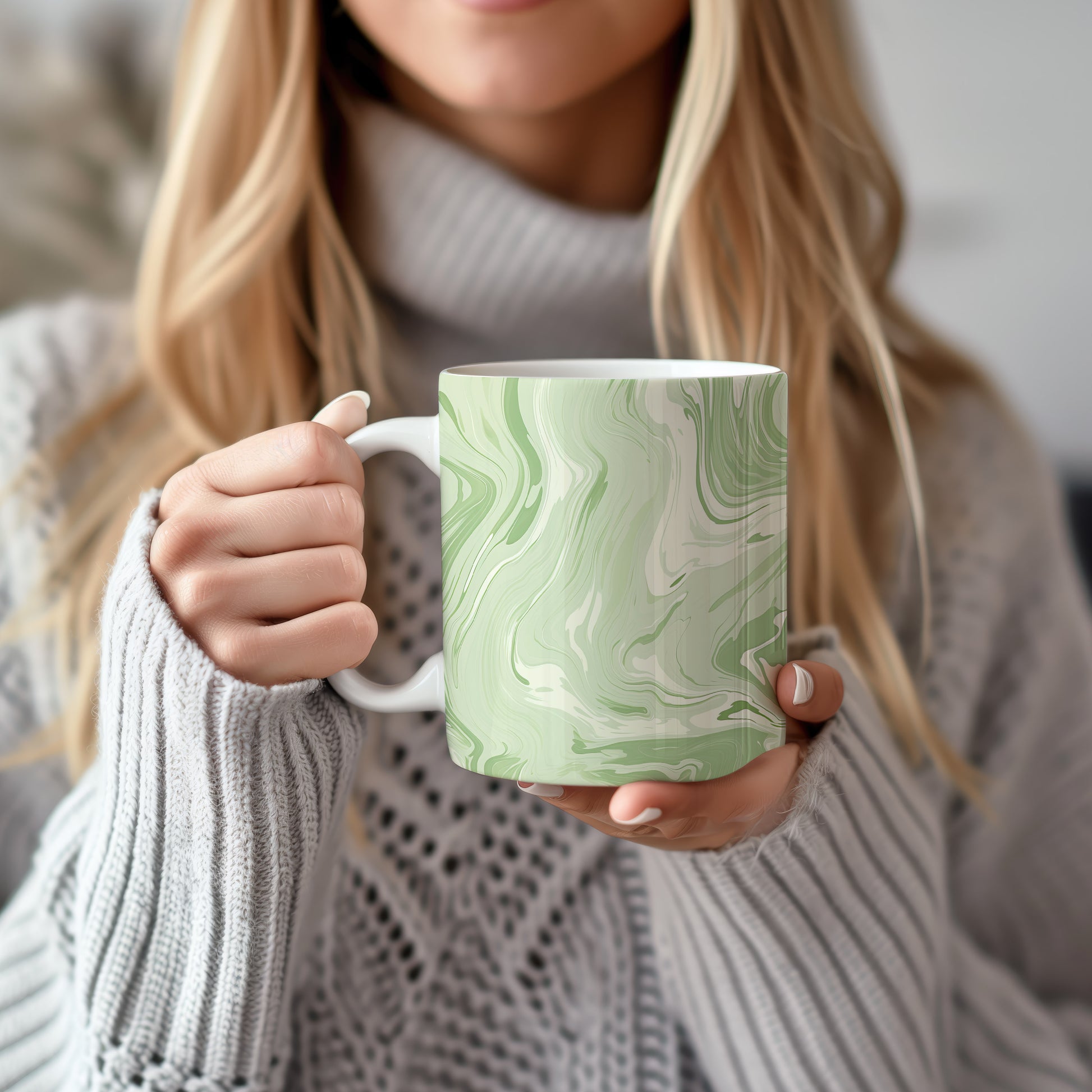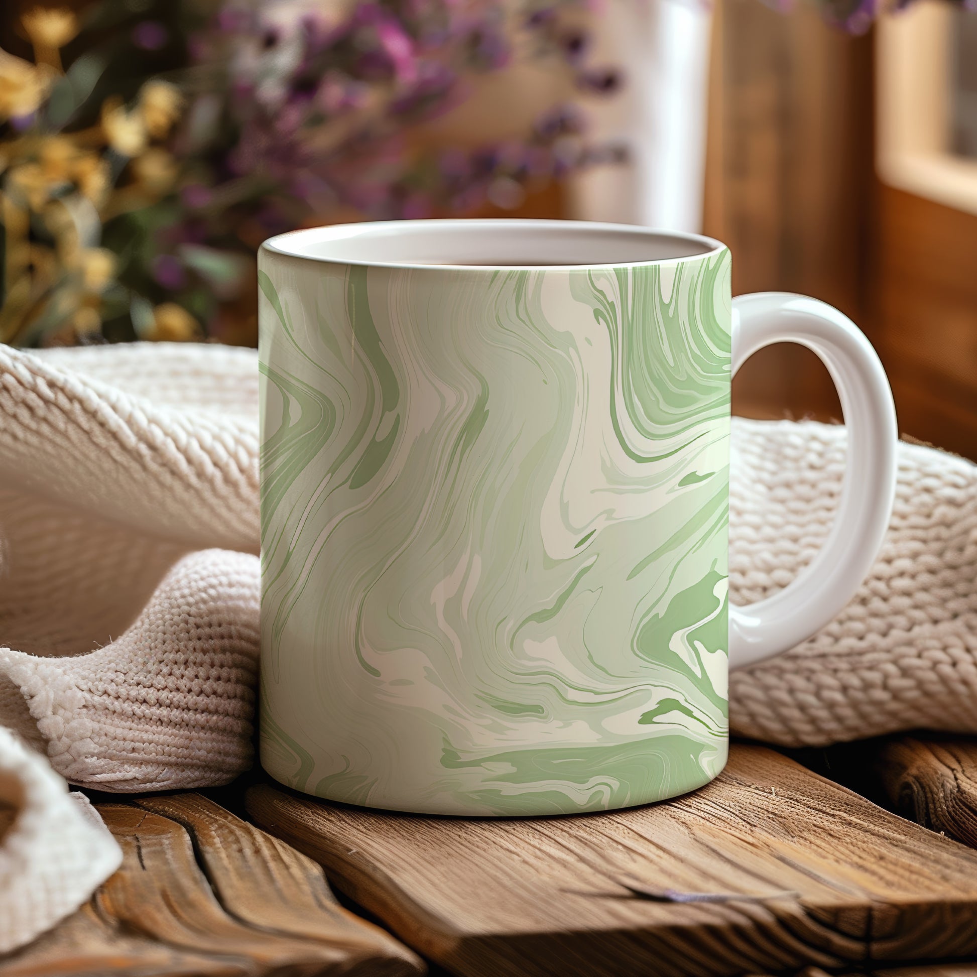 Tento hrnek s mramorováním v zelených a krémových tónech přináší elegantní a moderní vzhled. Je ideální pro milovníky stylového nádobí a skvělým dárkem pro přátele či rodinu. Materiál: keramika. Objem: 330 ml. Vhodné do myčky i mikrovlnky. Díky hladkému povrchu a lesklé textuře se snadno udržuje a dodává každému nápoji šmrnc.