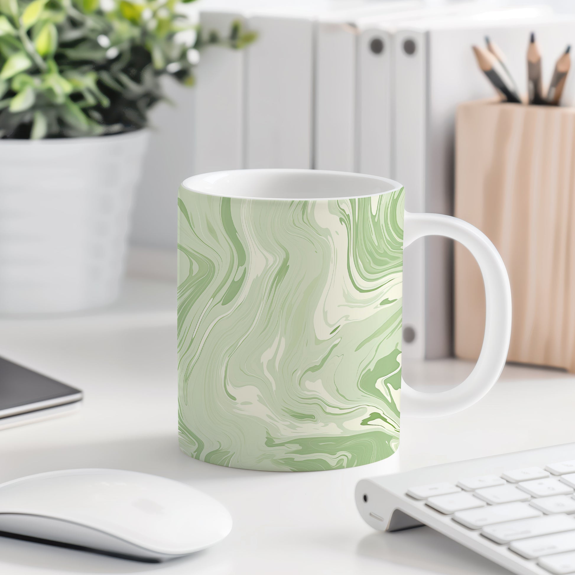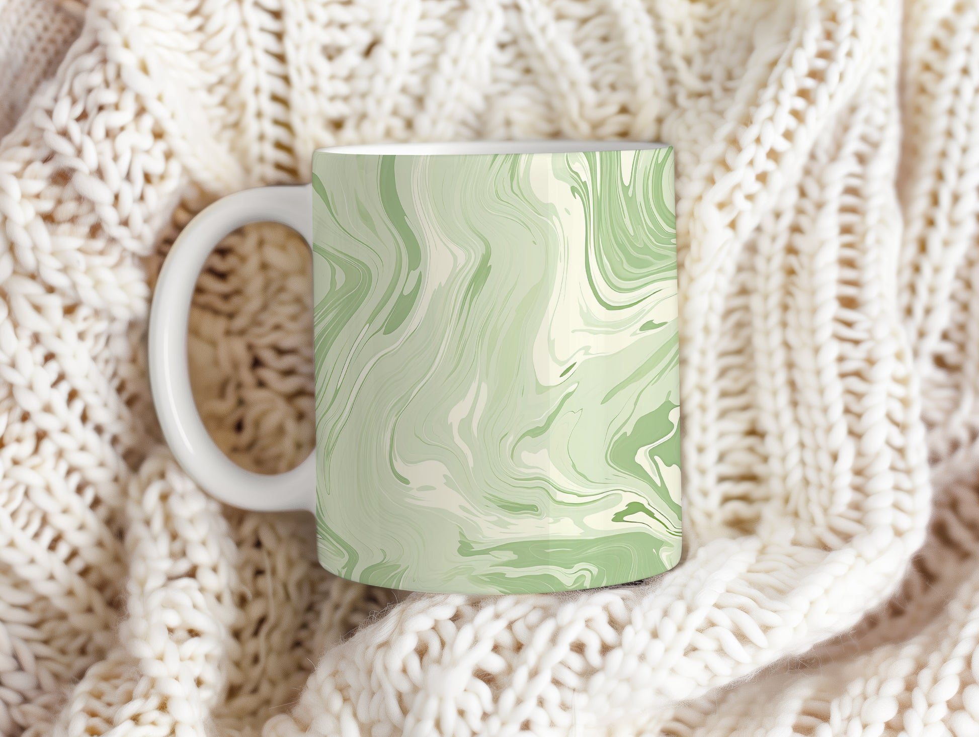 Hrnek s mramorováním v zelených a krémových tónech