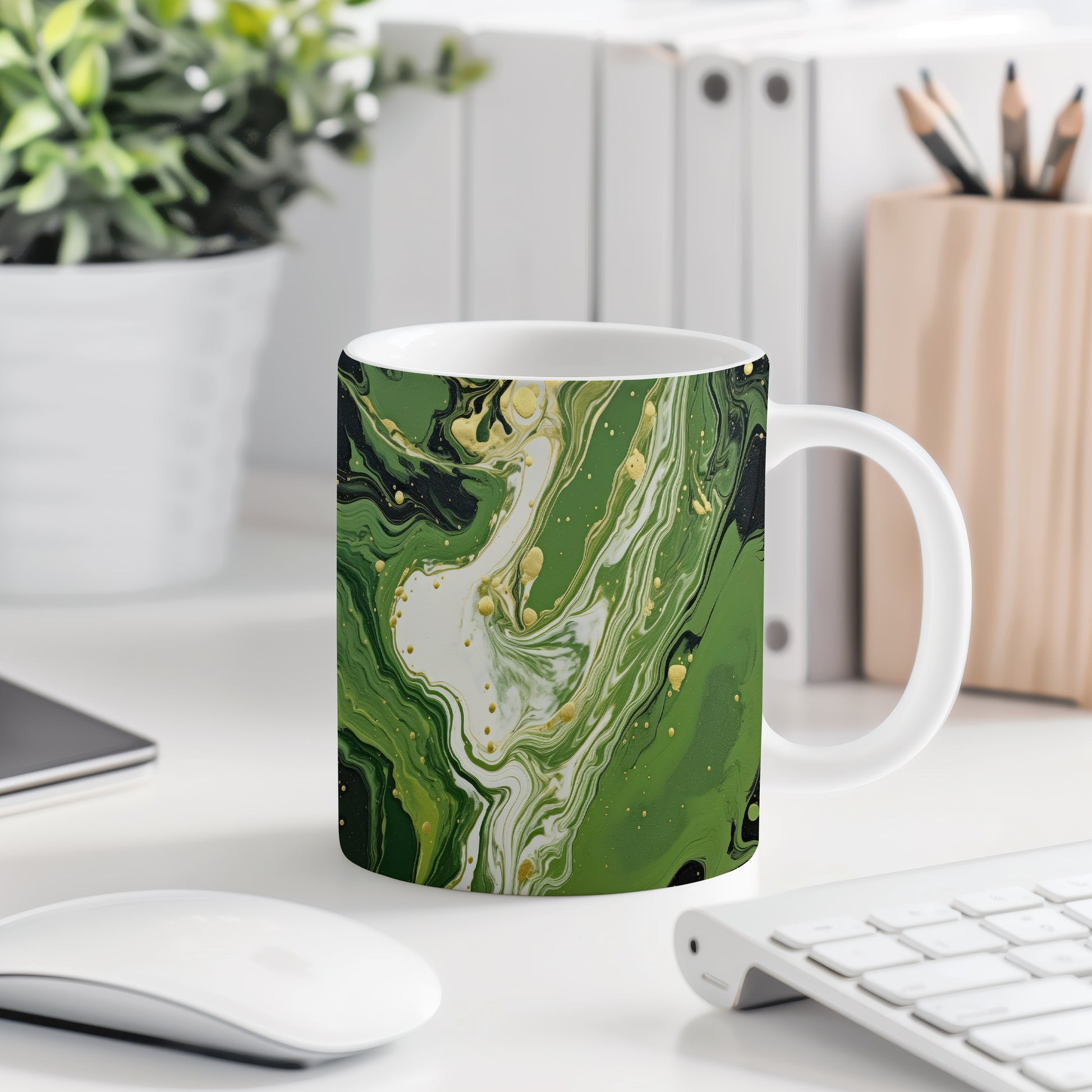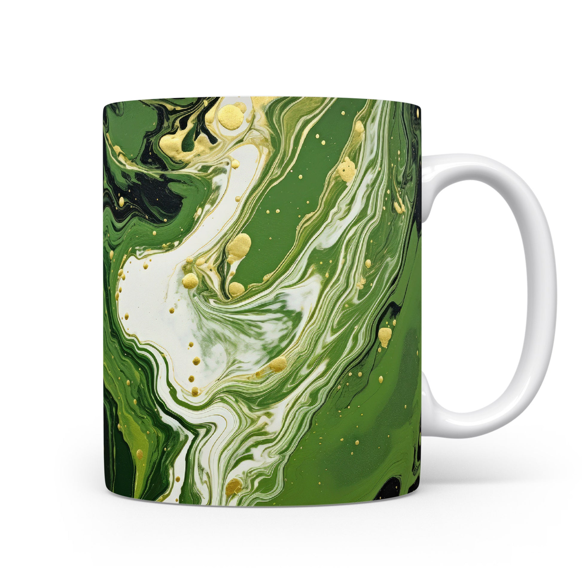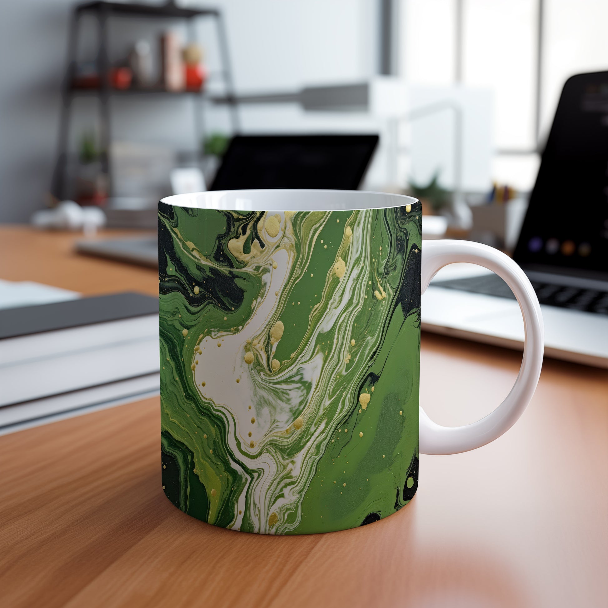 Hrnek s mramorováním v zelených a zlatých tónech
