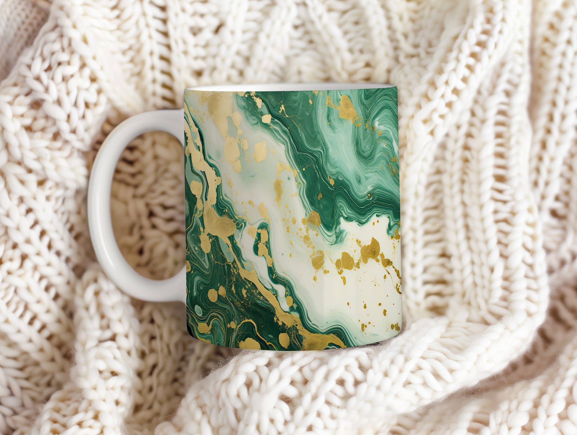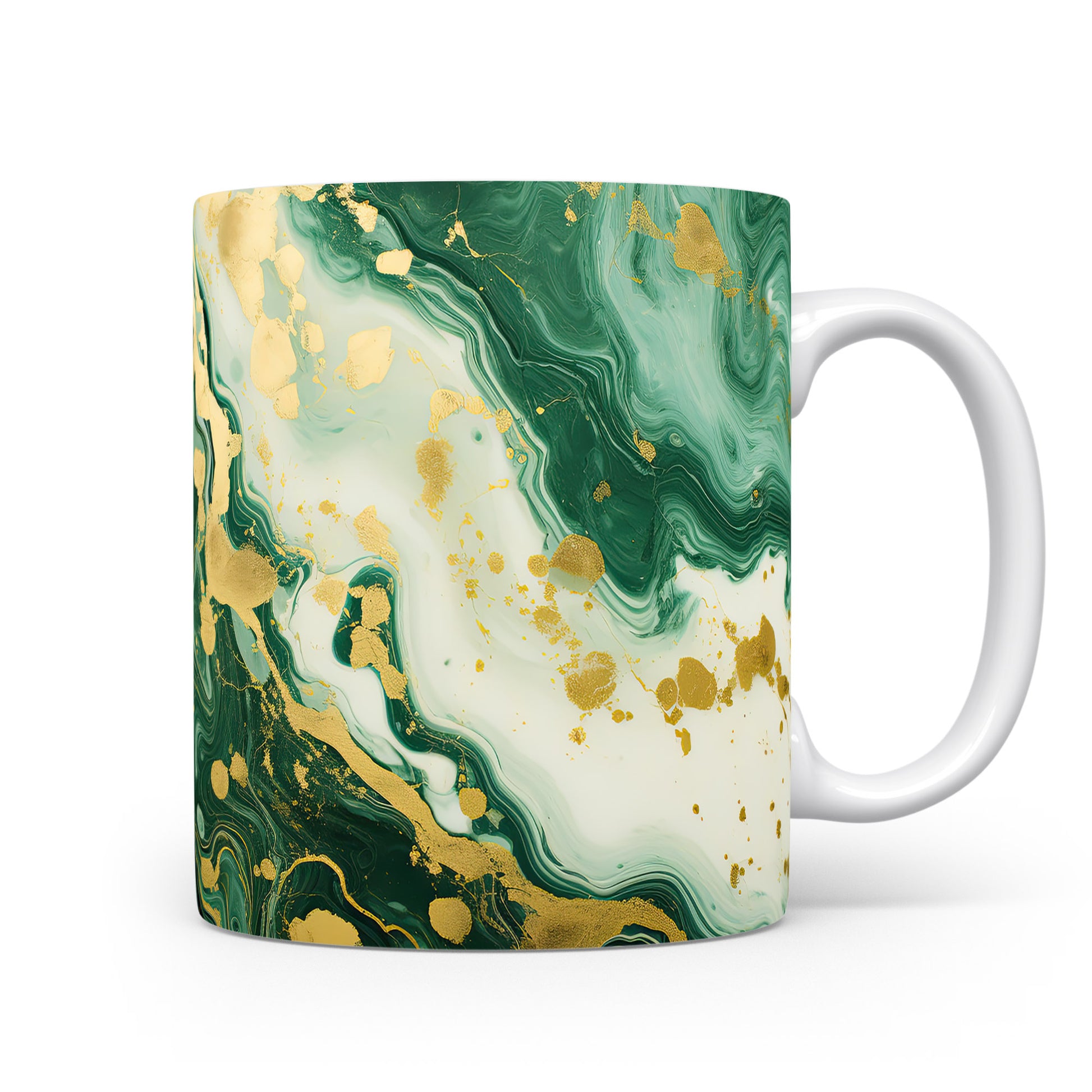 Hrnek s mramorováním v zelených a zlatých tónech – originálním motivem