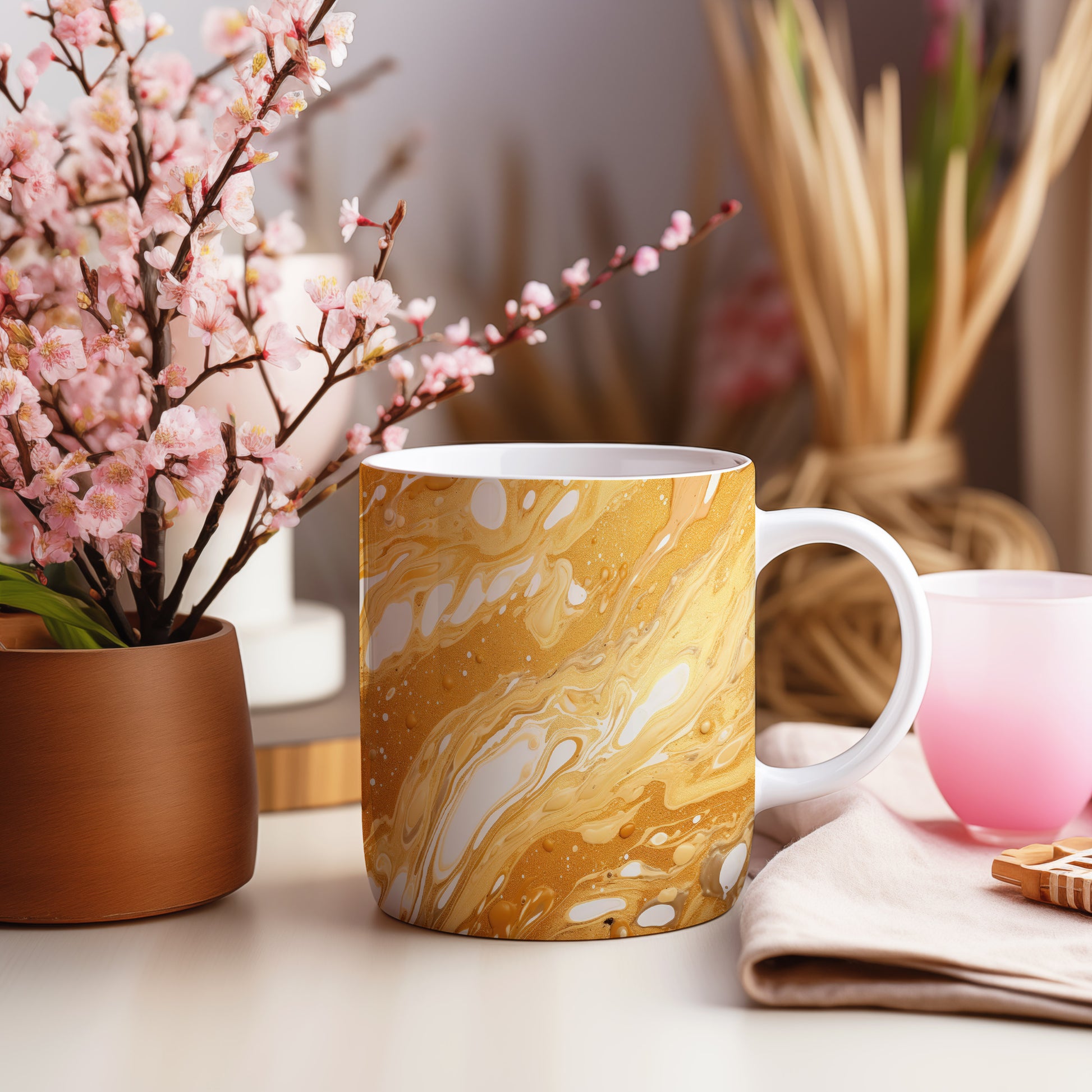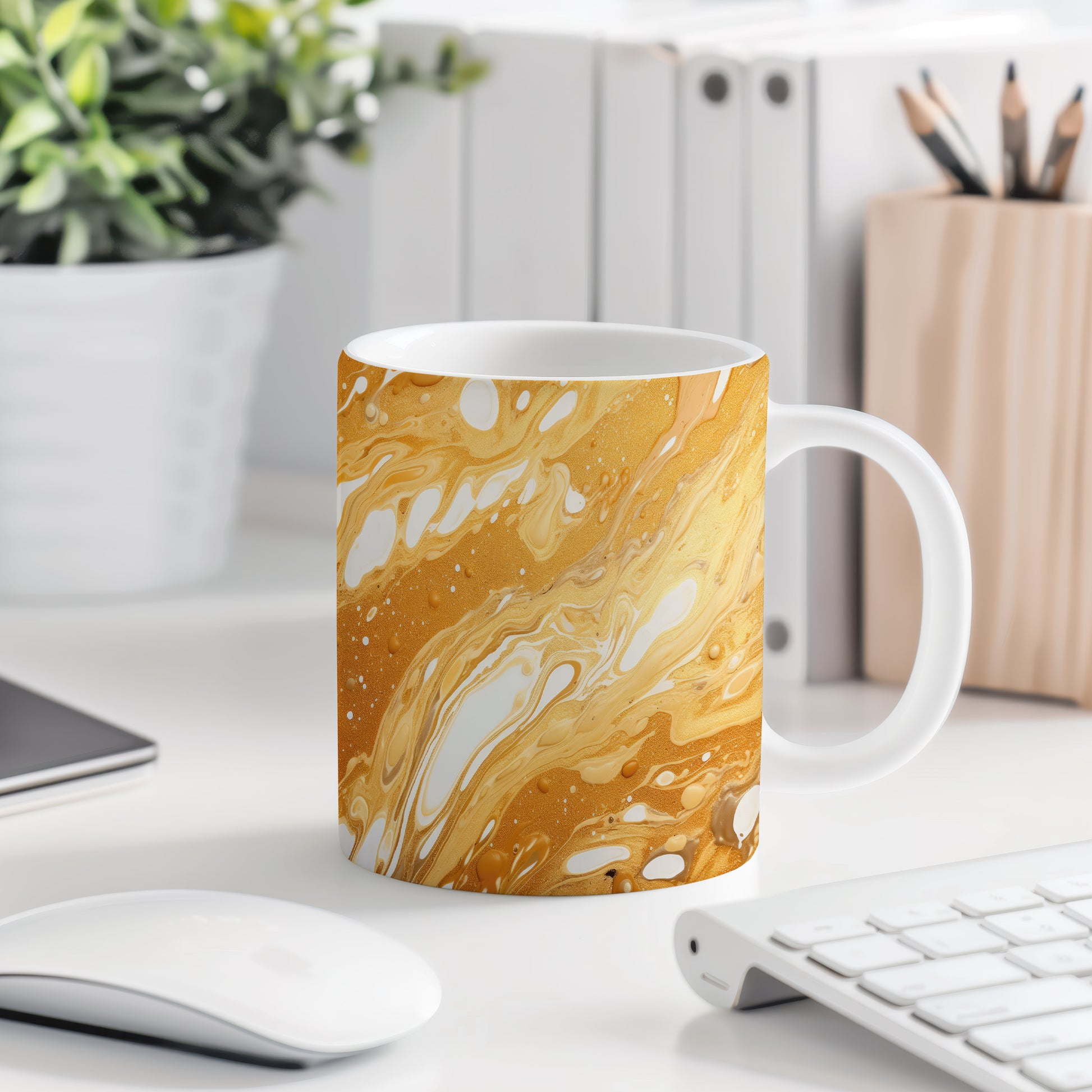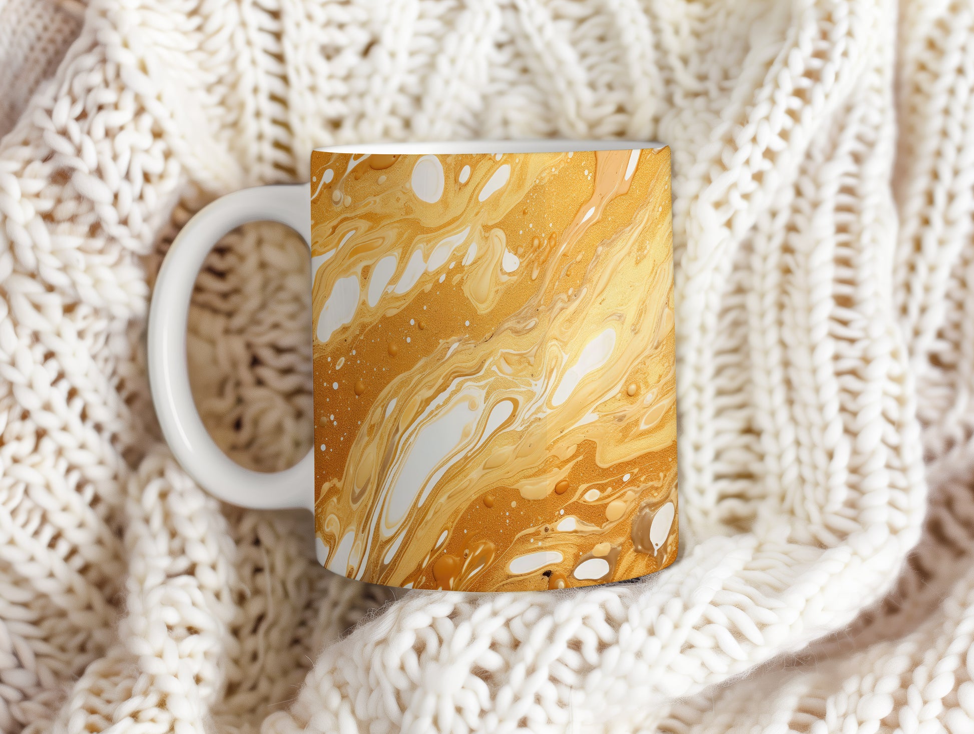 Tento hrnek s mramorováním v zlatých a bílých tónech přináší elegantní a moderní vzhled. Je ideální pro milovníky stylového nádobí a skvělým dárkem pro přátele či rodinu. Materiál: keramika. Objem: 330 ml. Vhodné do myčky i mikrovlnky. Díky svému designu dodá každému nápoji šmrnc a potěší oko.