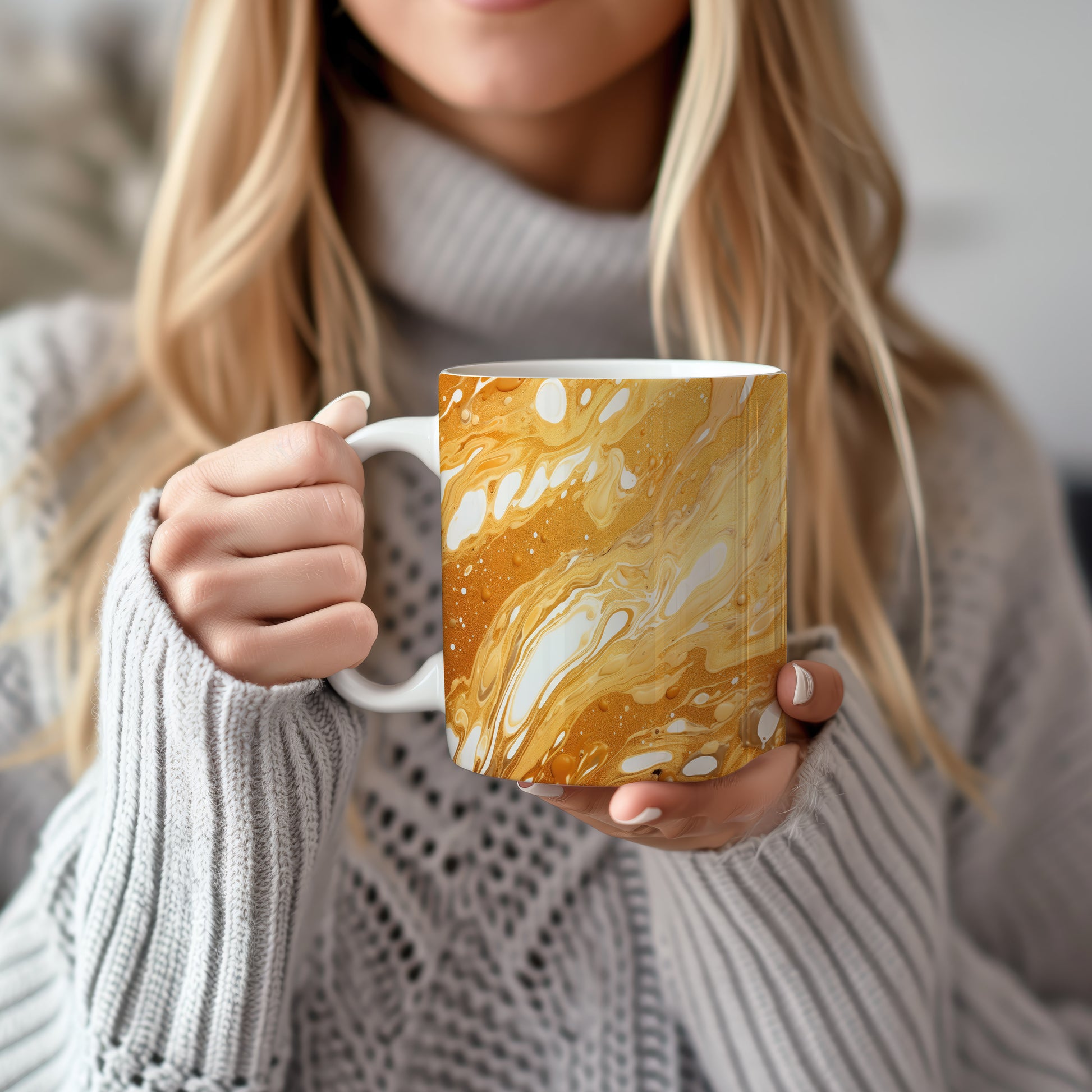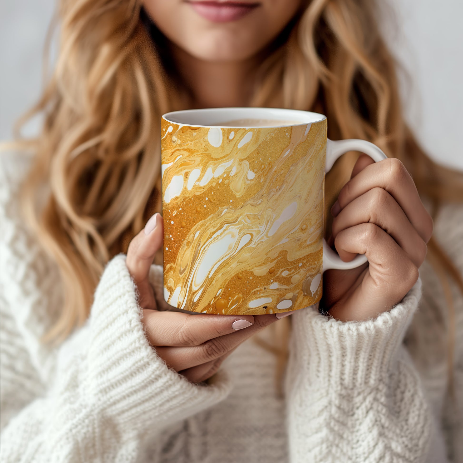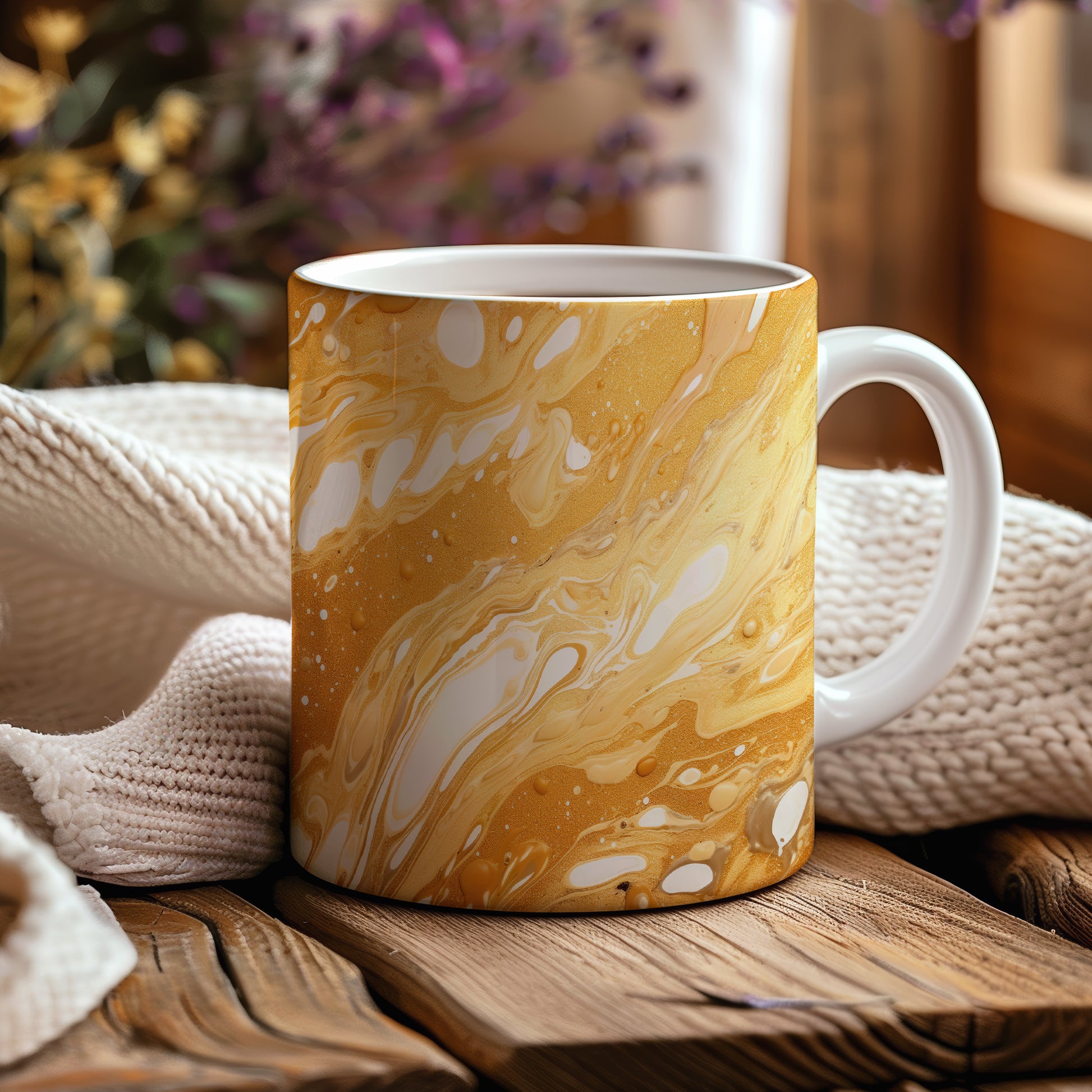Tento hrnek s mramorováním v zlatých a bílých tónech přináší elegantní a moderní vzhled. Je ideální pro milovníky stylového nádobí a skvělým dárkem pro přátele či rodinu. Materiál: keramika. Objem: 330 ml. Vhodné do myčky i mikrovlnky. Díky svému designu dodá každému nápoji šmrnc a potěší oko.