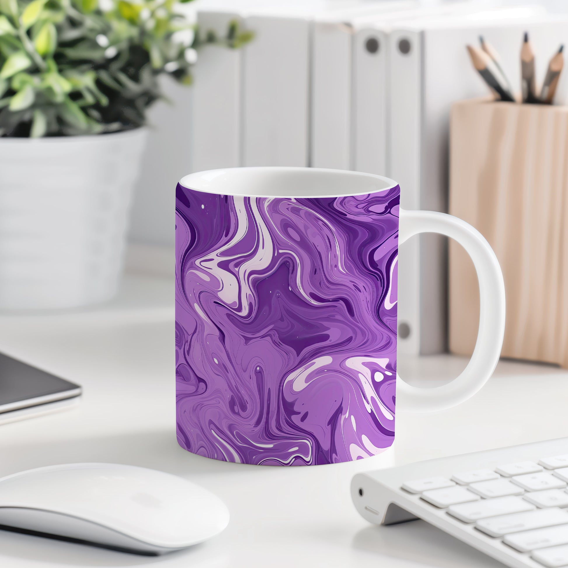 Tento hrnek s mramorováním ve fialových a bílých tónech přináší elegantní a moderní design. Je ideální pro milovníky stylového nádobí a skvělým dárkem pro přátele či rodinu. Materiál: keramika. Objem: 330 ml. Vhodné do myčky i mikrovlnky. Díky svému jedinečnému vzhledu dodá každému nápoji nádech luxusu.