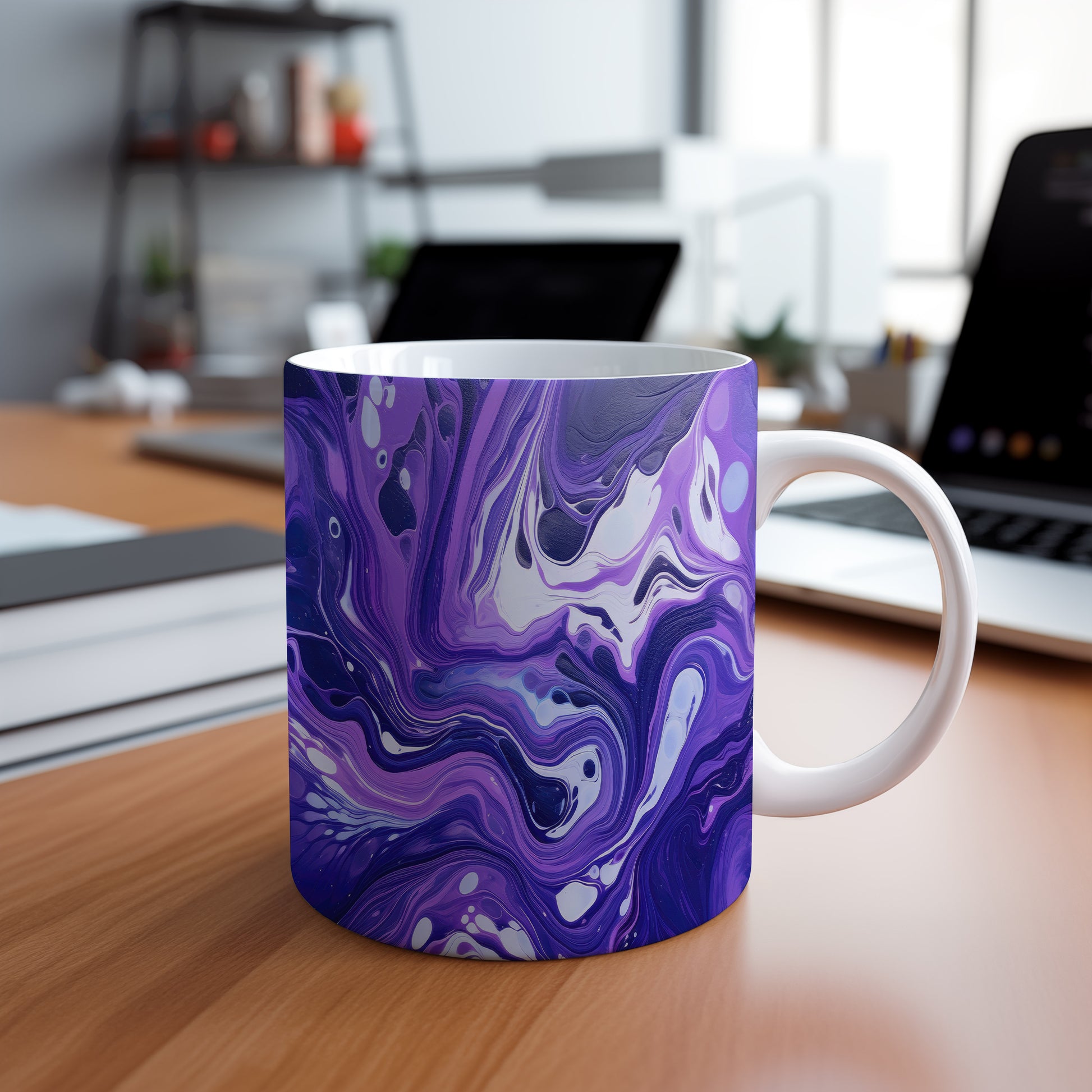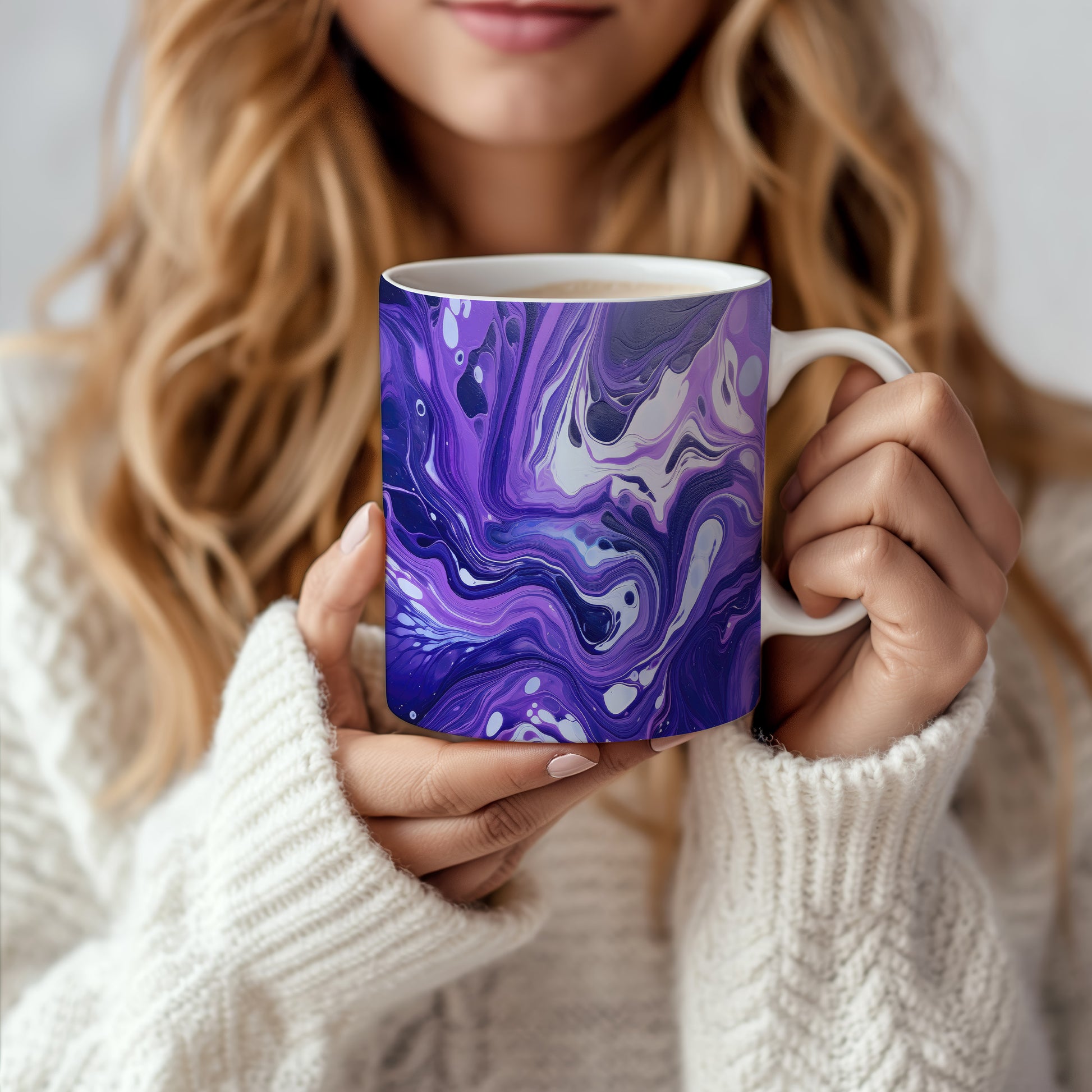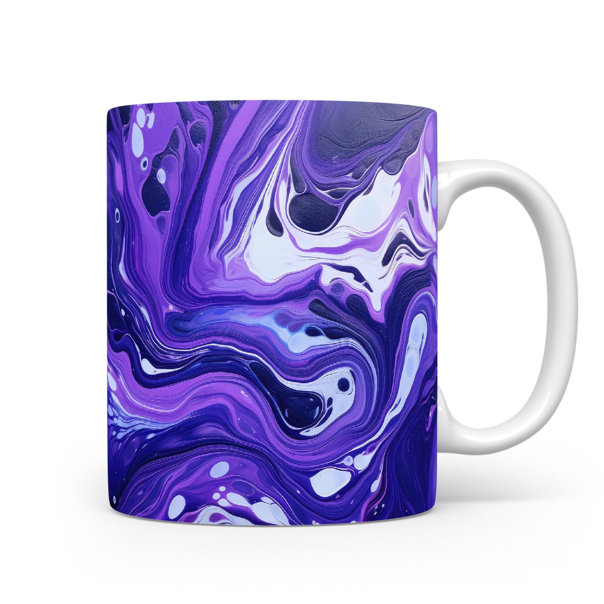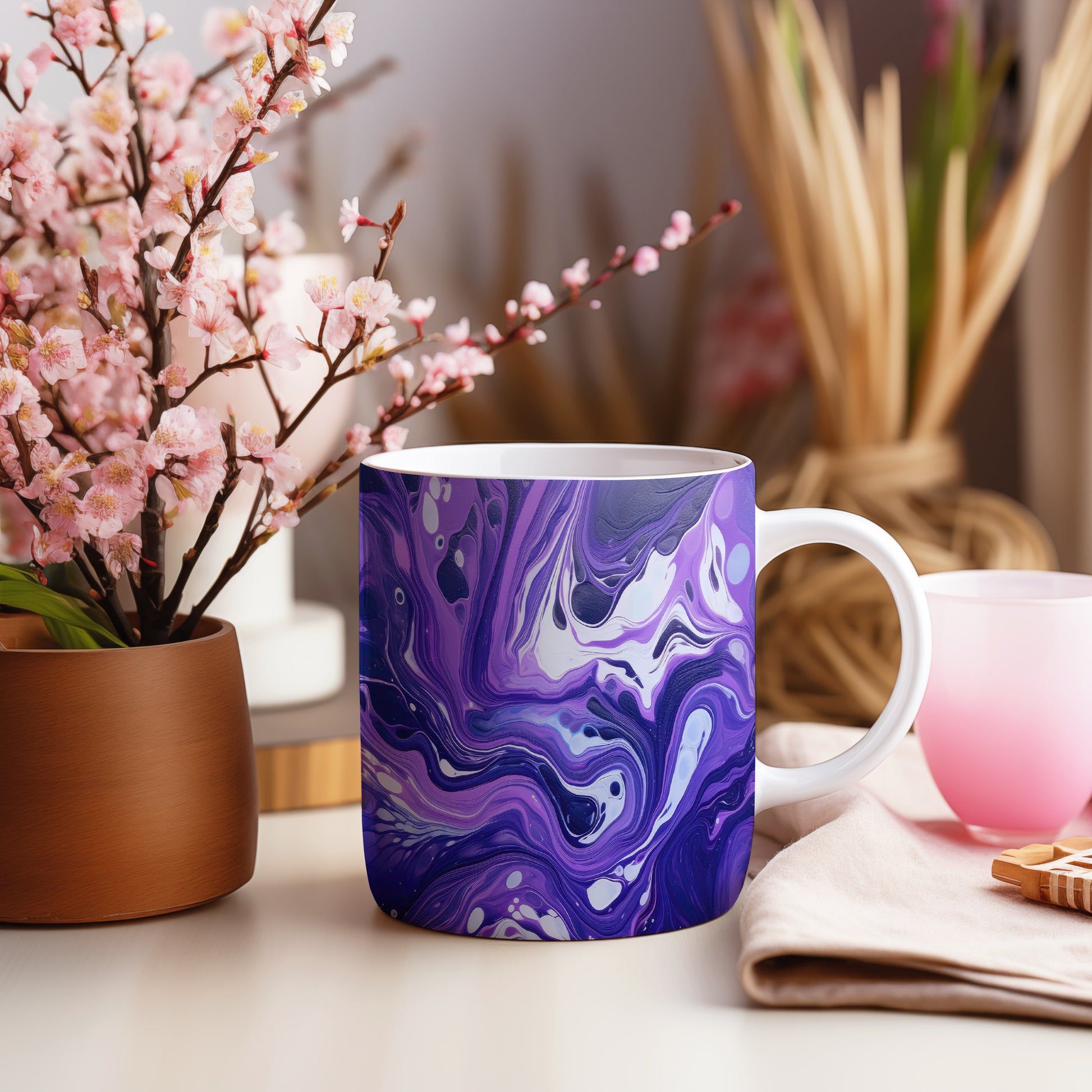 Tento hrnek s mramorováním ve fialových a modrých tónech přináší elegantní a moderní vzhled. Je ideální pro milovníky stylového nádobí a skvělým dárkem pro přátele či rodinu. Materiál: keramika. Objem: 330 ml. Vhodné do myčky i mikrovlnky. Díky svému designu přidá do každého nápoje špetku umění a originality.