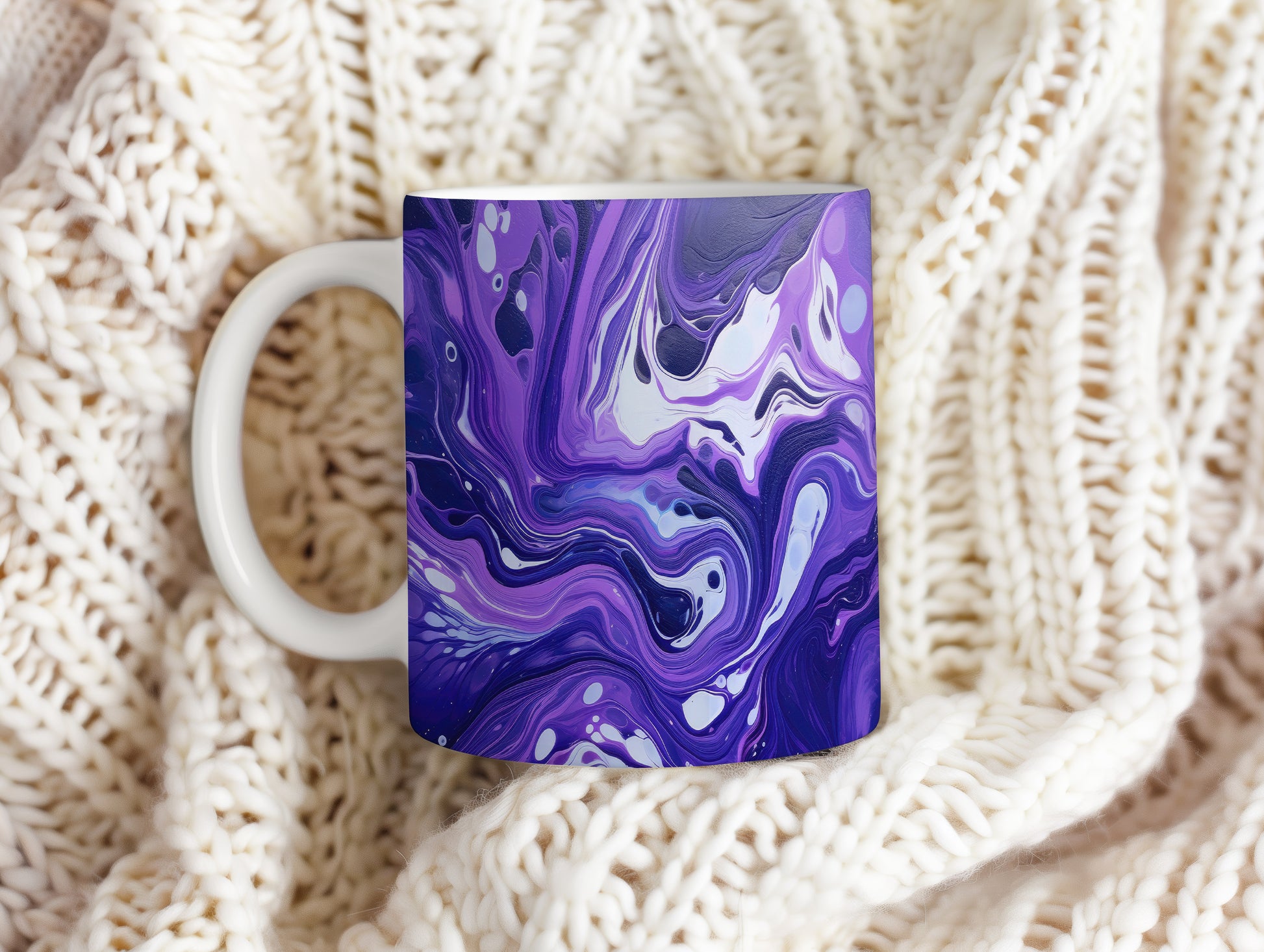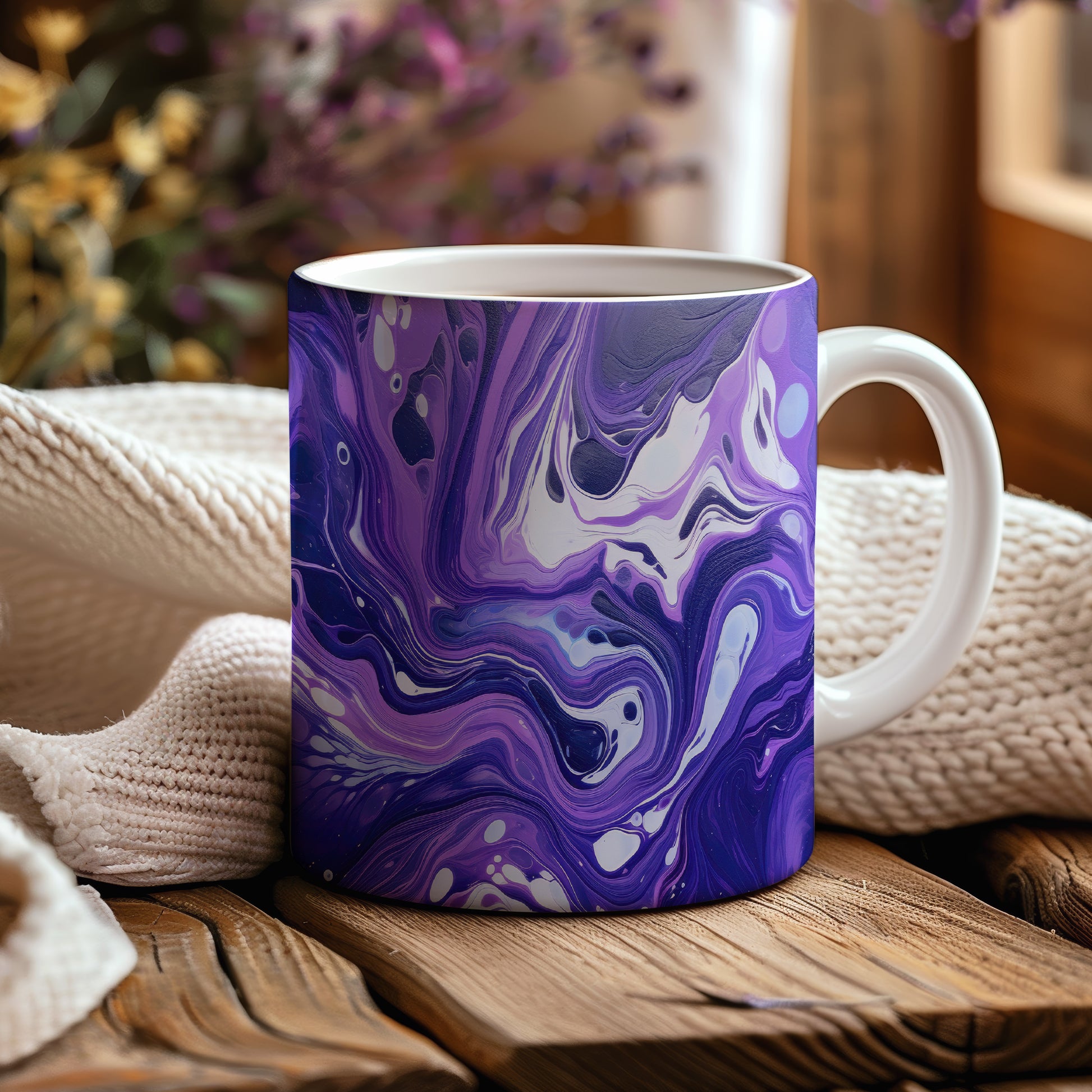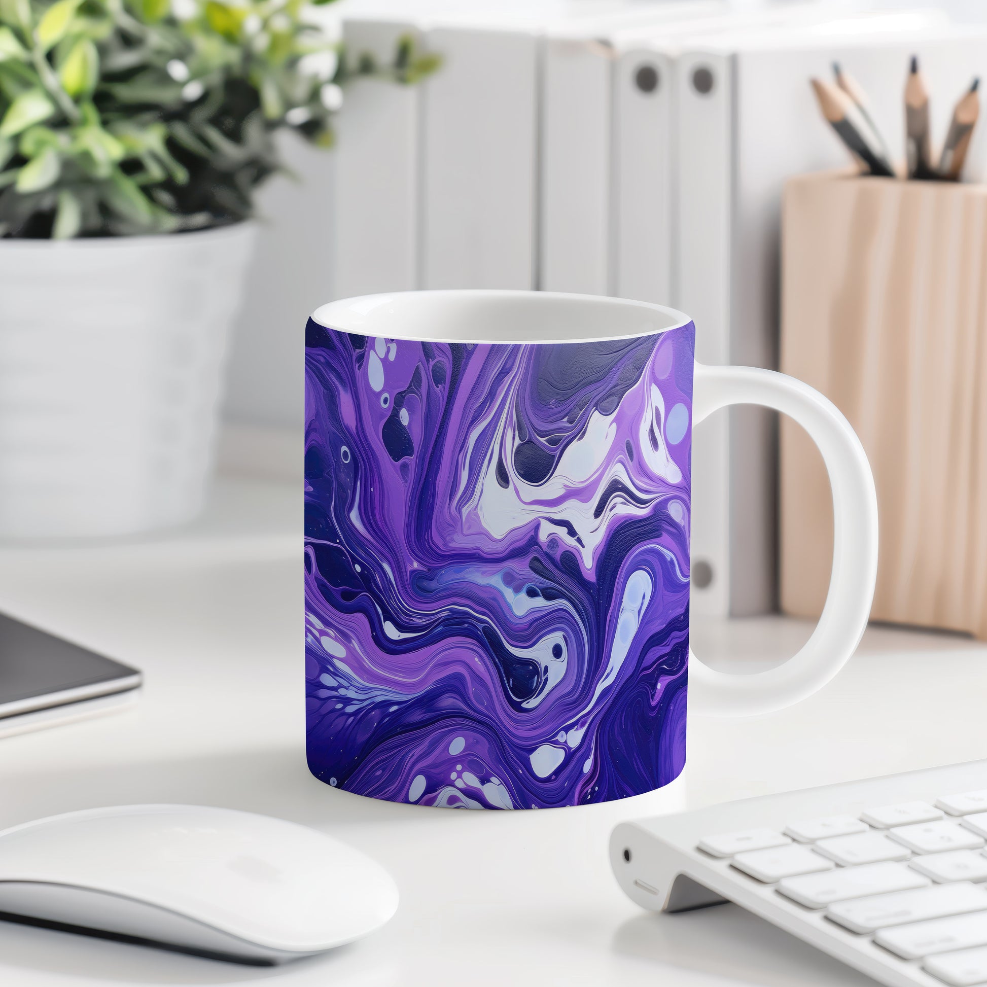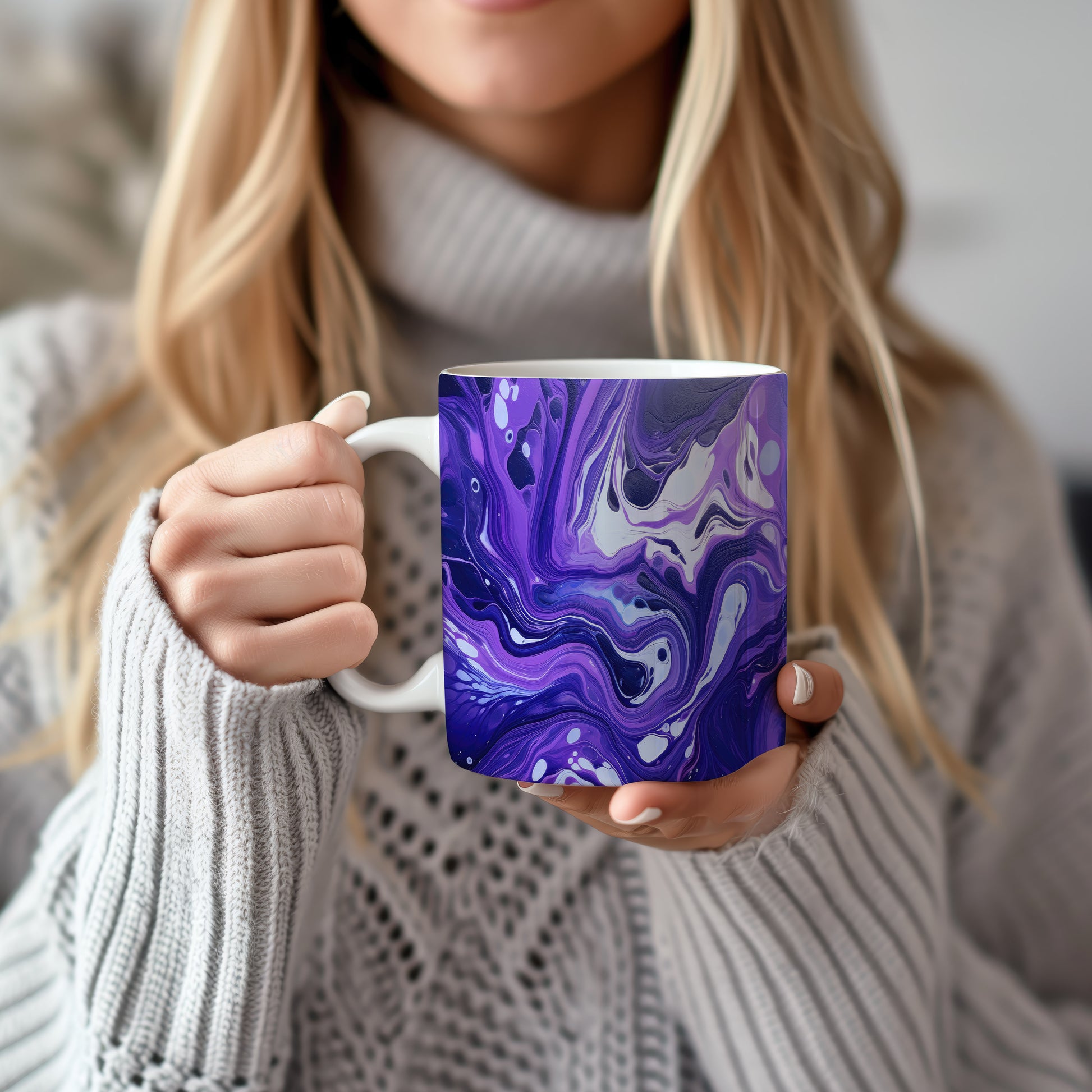 Tento hrnek s mramorováním ve fialových a modrých tónech přináší elegantní a moderní vzhled. Je ideální pro milovníky stylového nádobí a skvělým dárkem pro přátele či rodinu. Materiál: keramika. Objem: 330 ml. Vhodné do myčky i mikrovlnky. Díky svému designu přidá do každého nápoje špetku umění a originality.