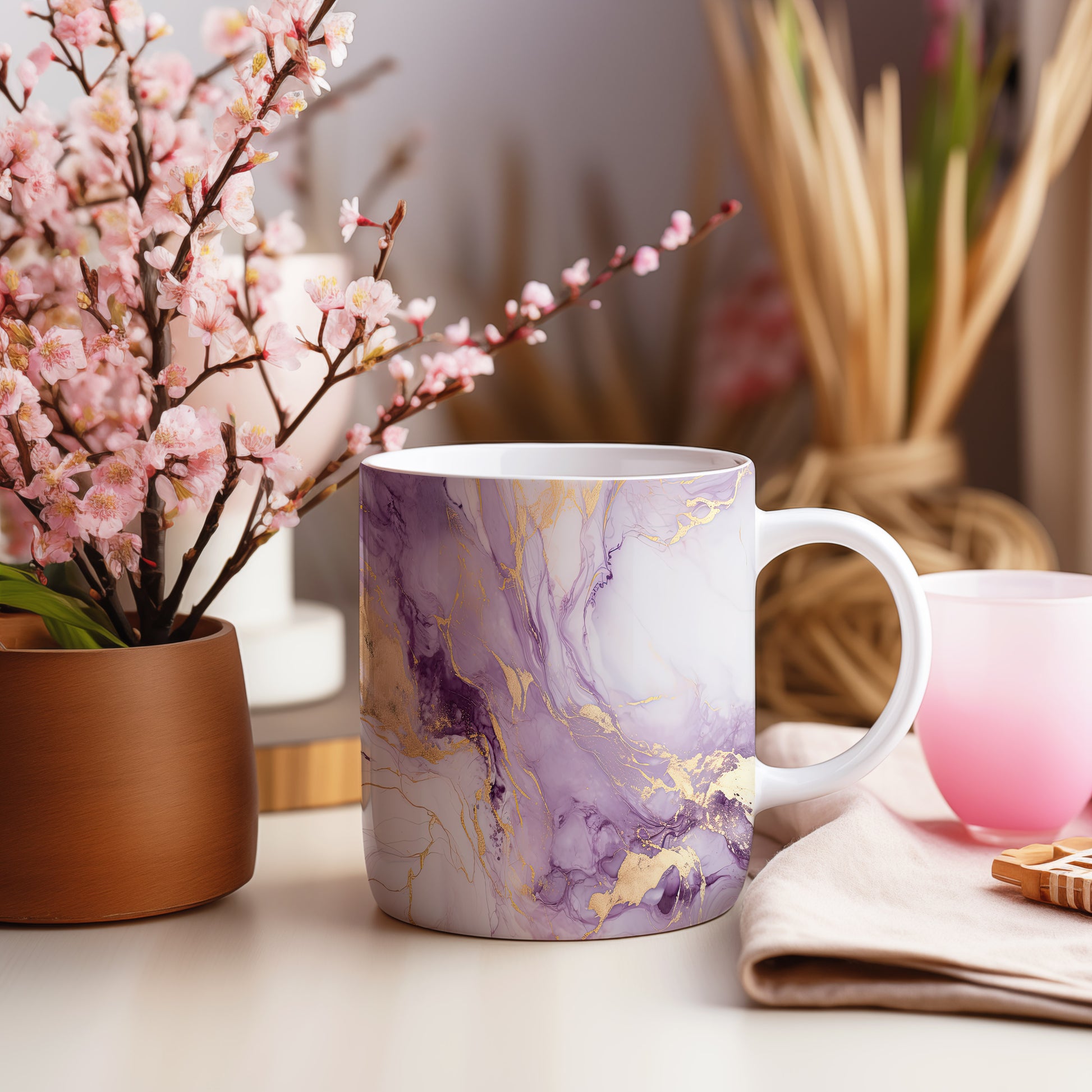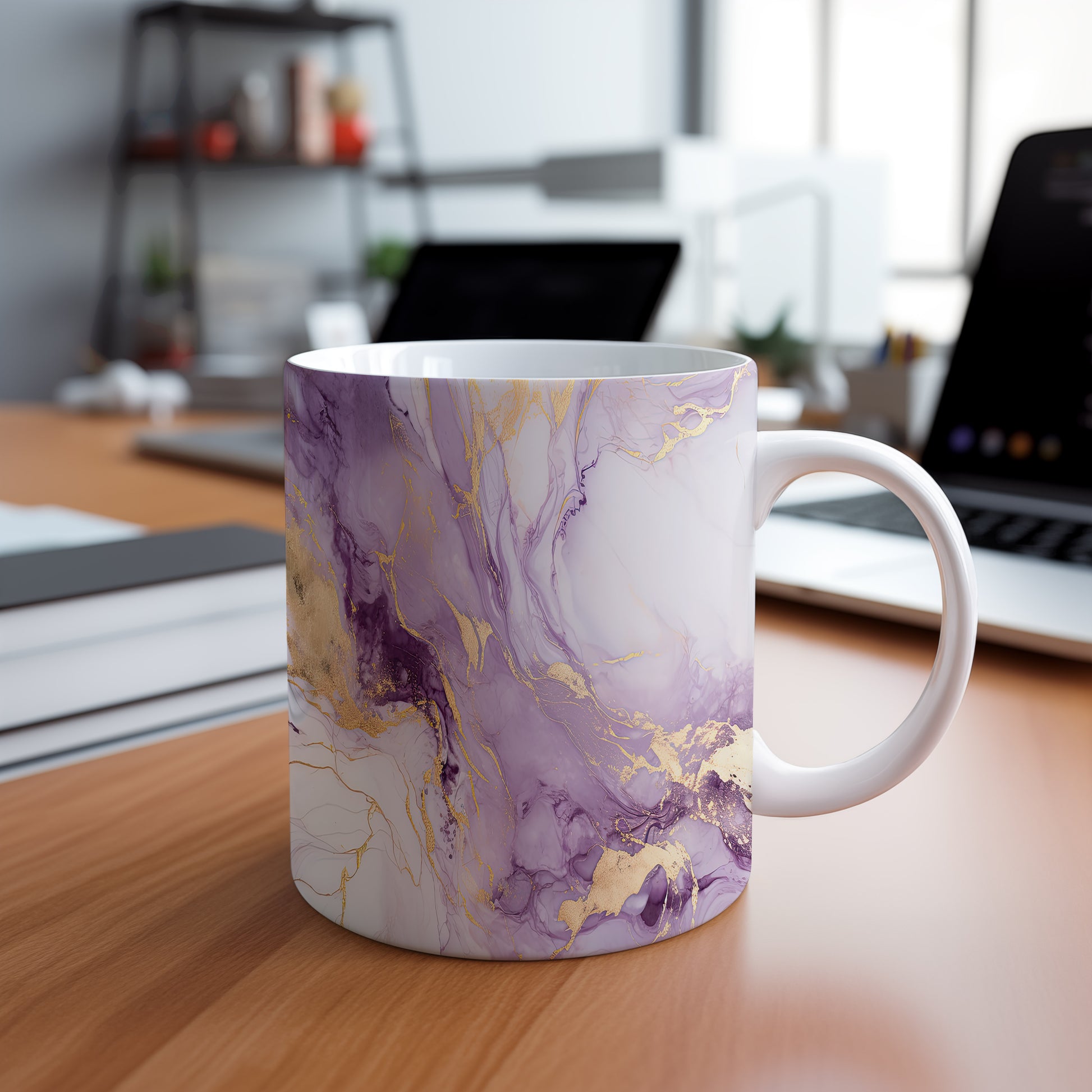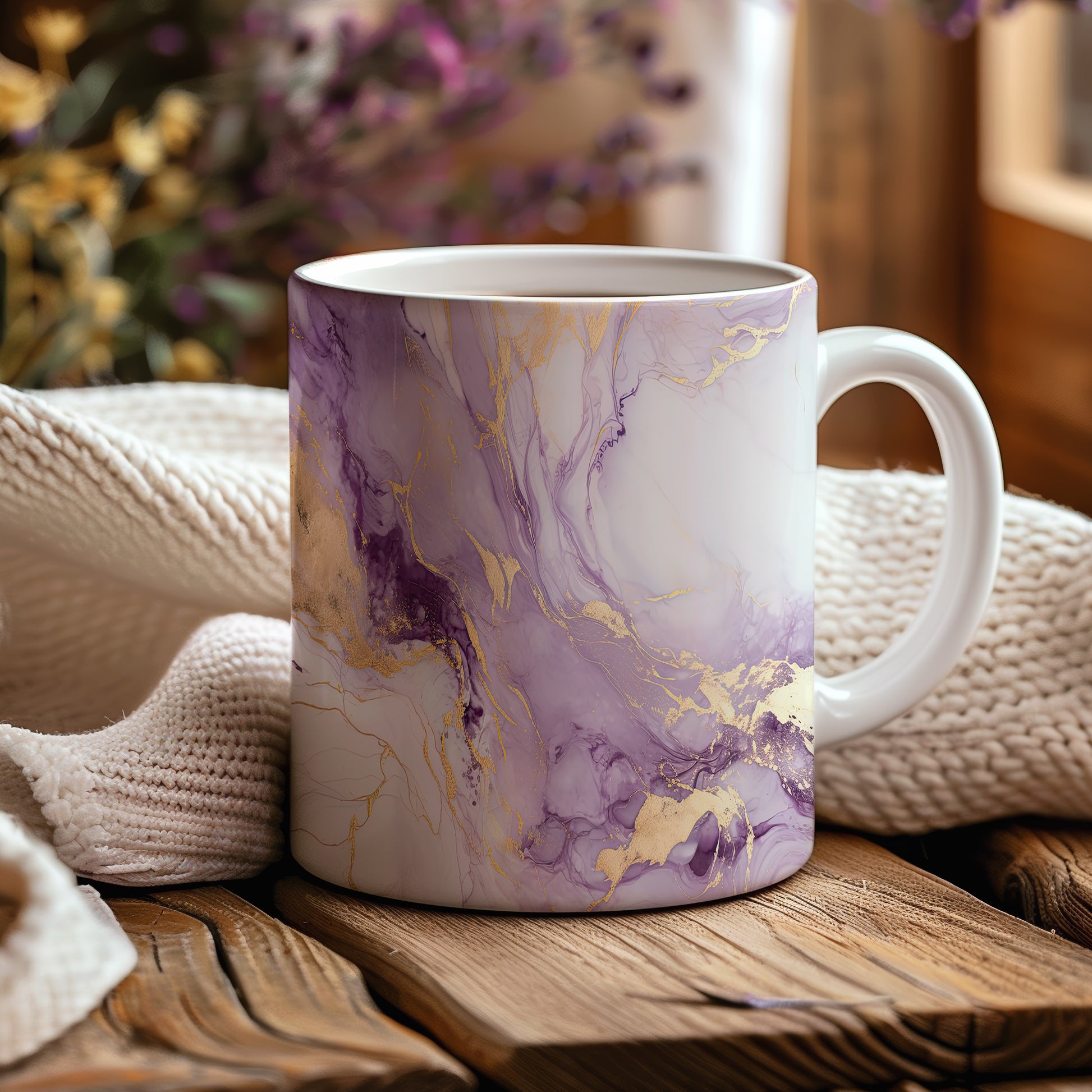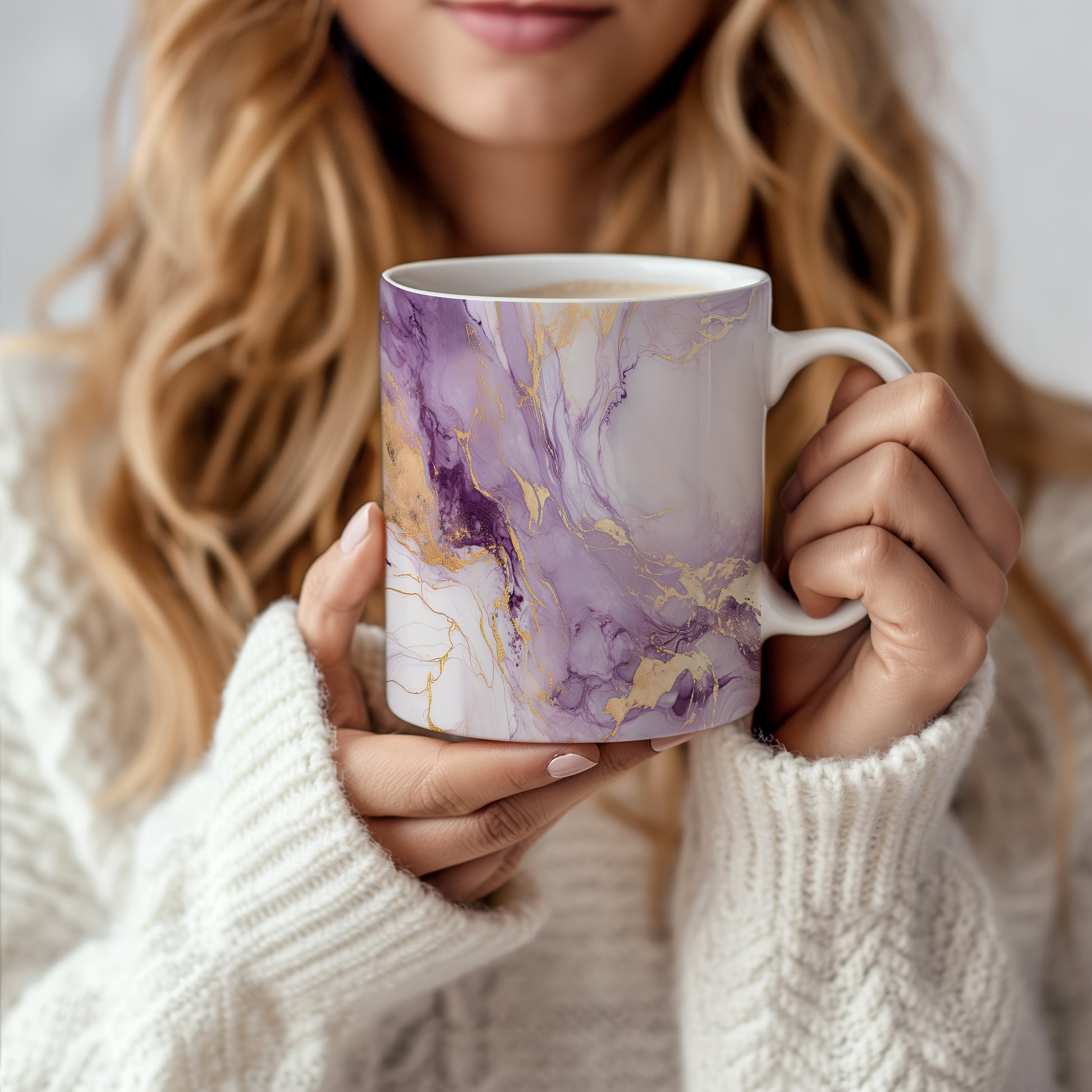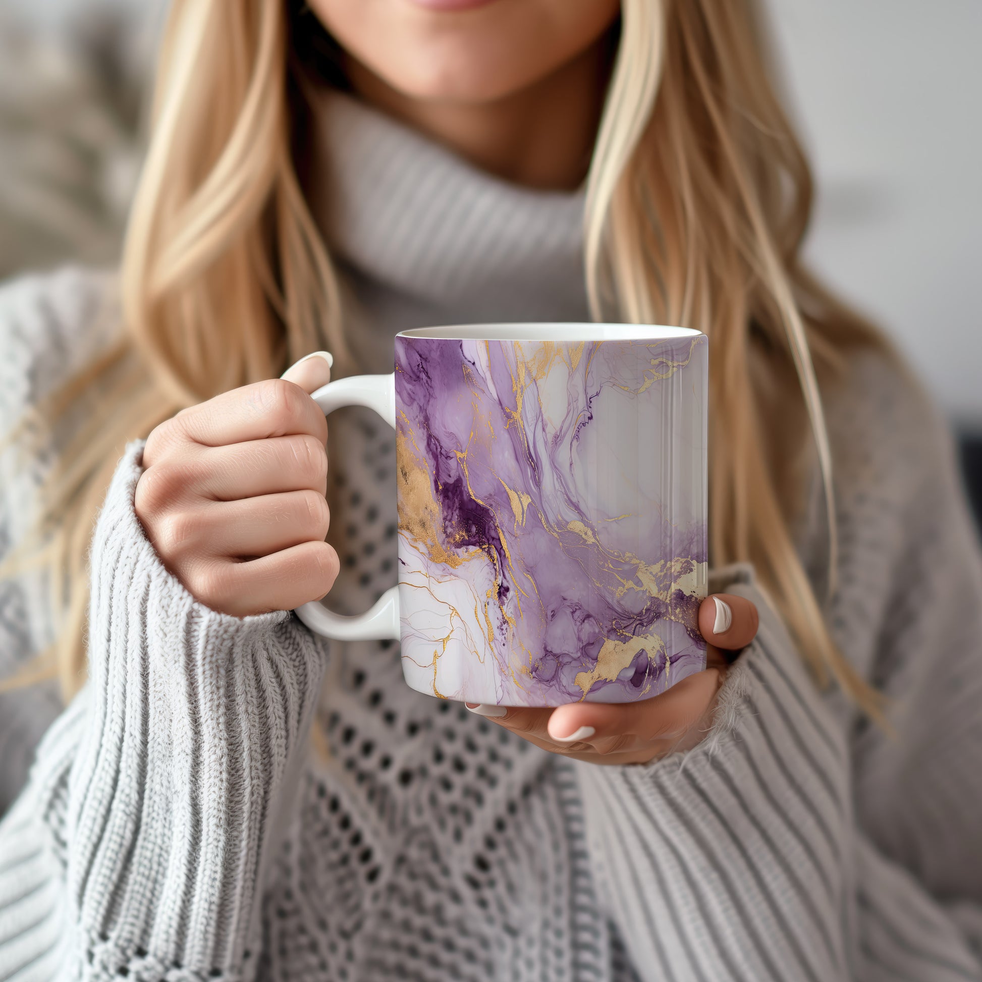 Hrnek s mramorováním v jemných fialových a zlatých akcentem představuje elegantní a stylový kousek. Je ideální pro milovníky designu a skvělým dárkem pro přátele či rodinu. Materiál: keramika. Objem: 330 ml. Vhodné do myčky i mikrovlnky. Díky svému jedinečnému vzhledu přináší do každodenního pití špetku luxusu.