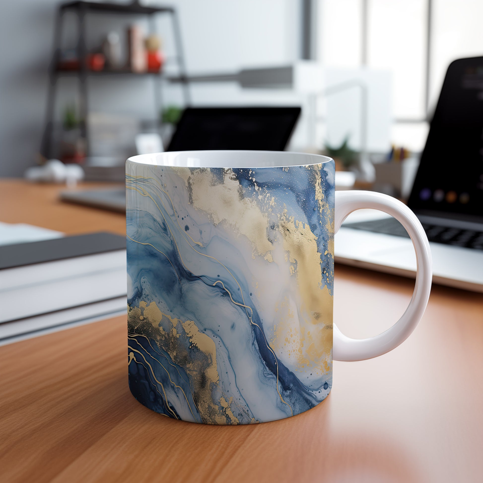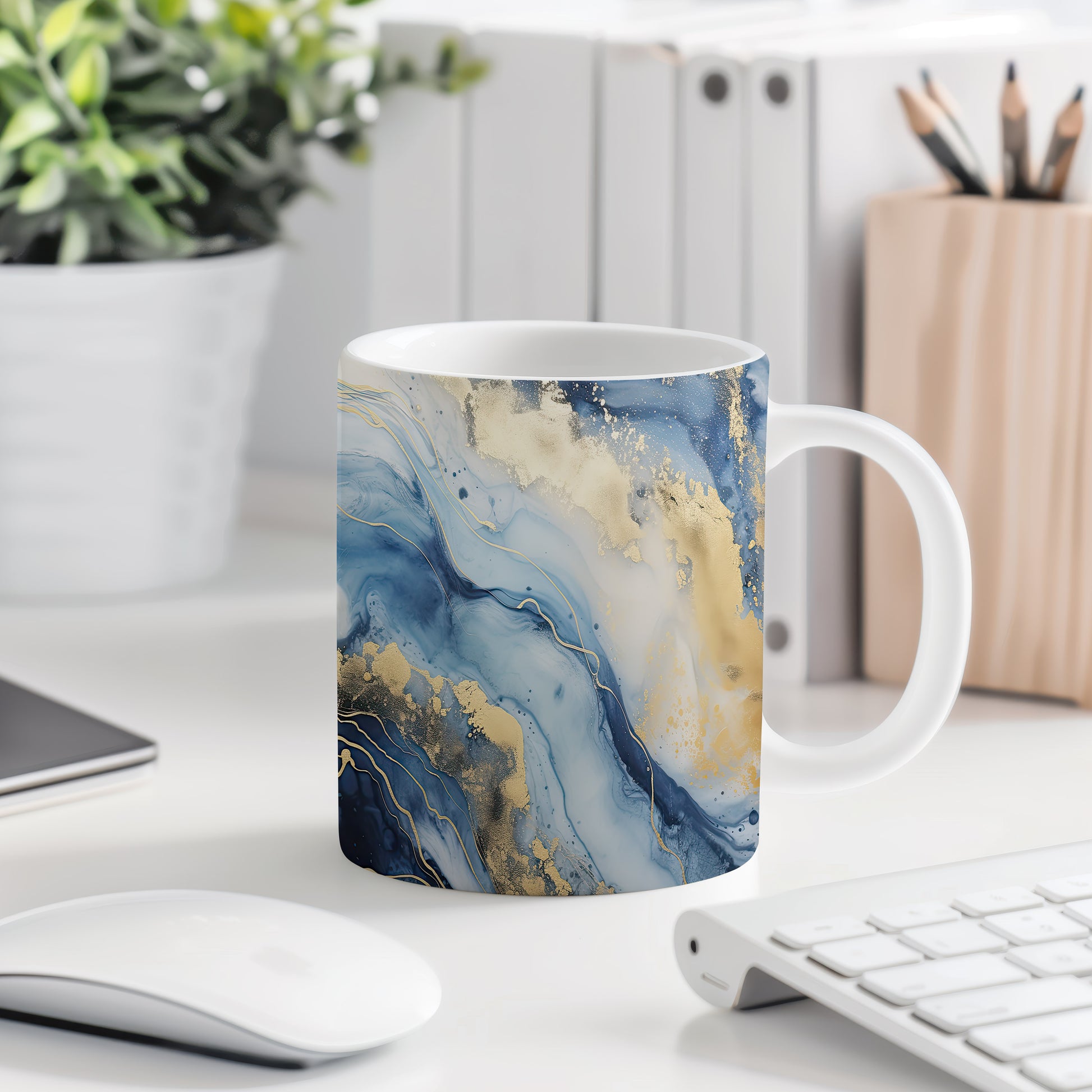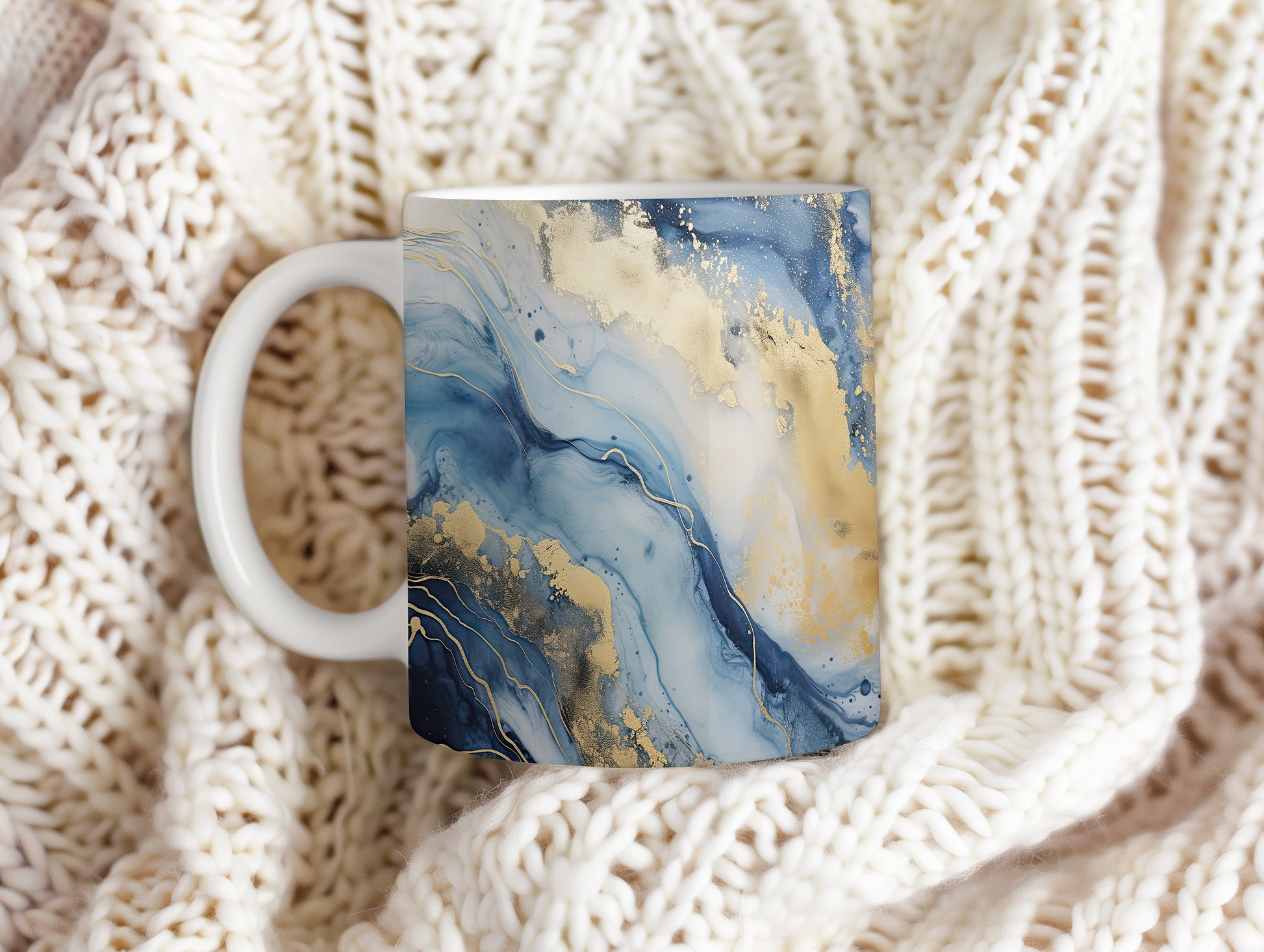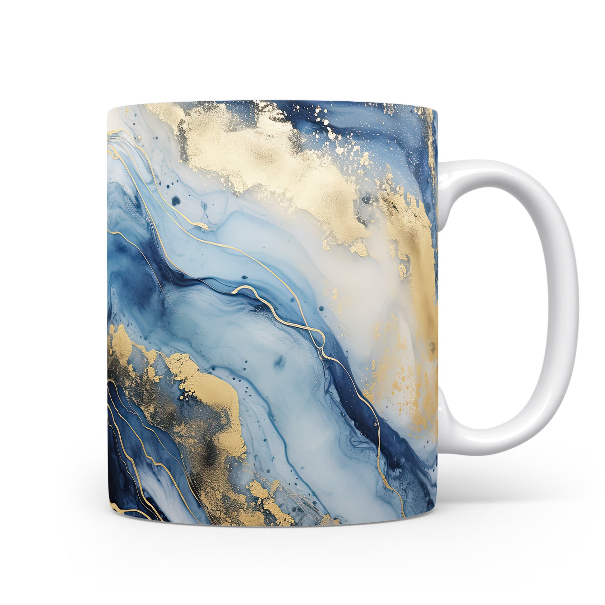 Hrnek s mramorovým efektem v modrých a zlatých tónech
