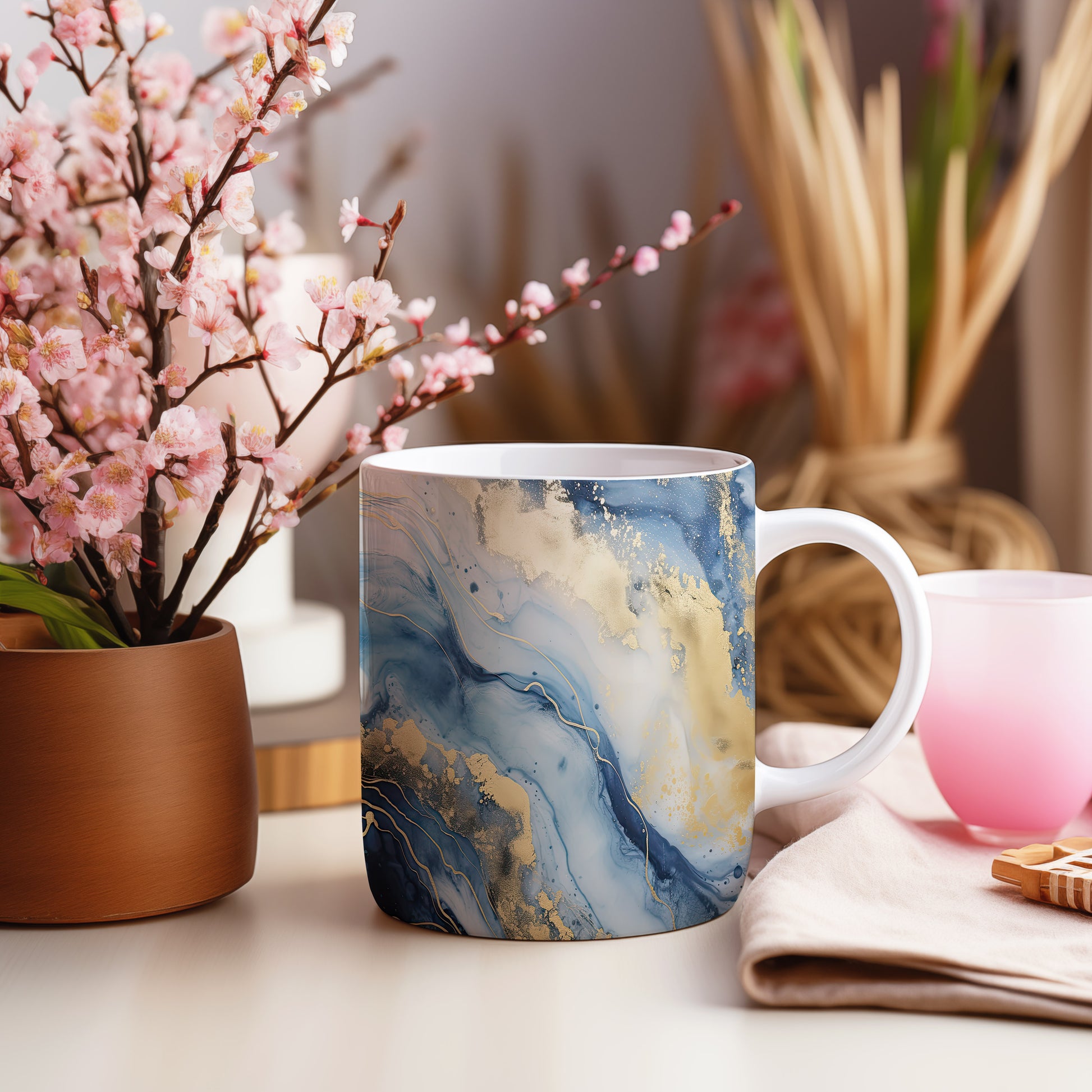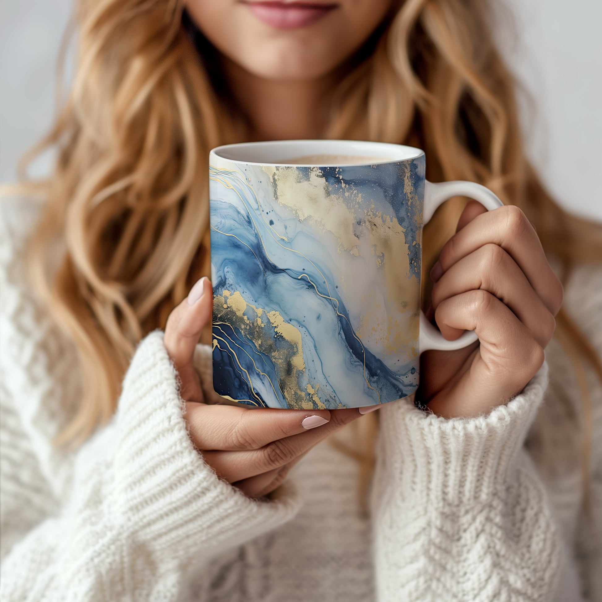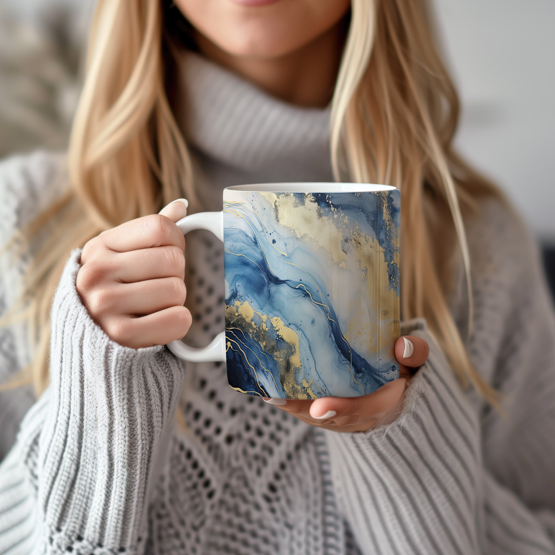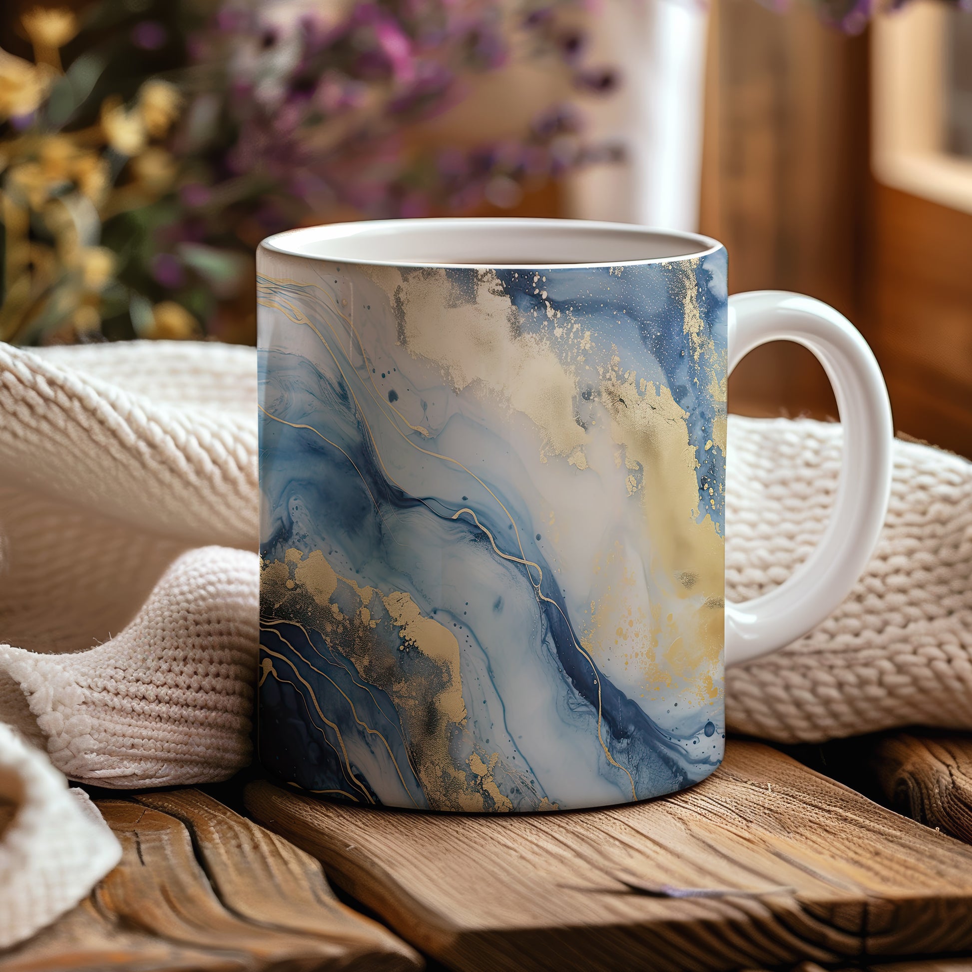 Hrnek s mramorovým efektem v modrých a zlatých tónech
