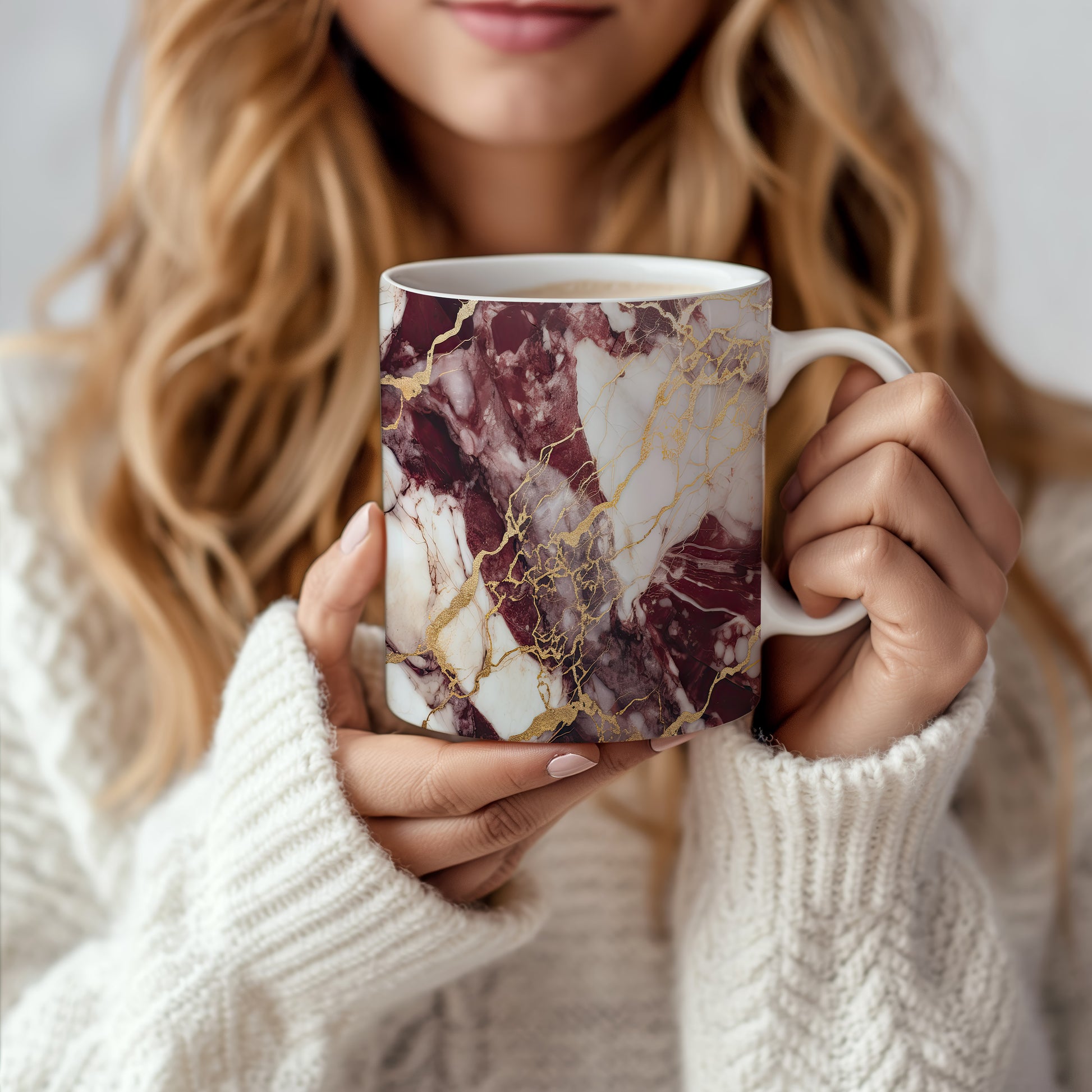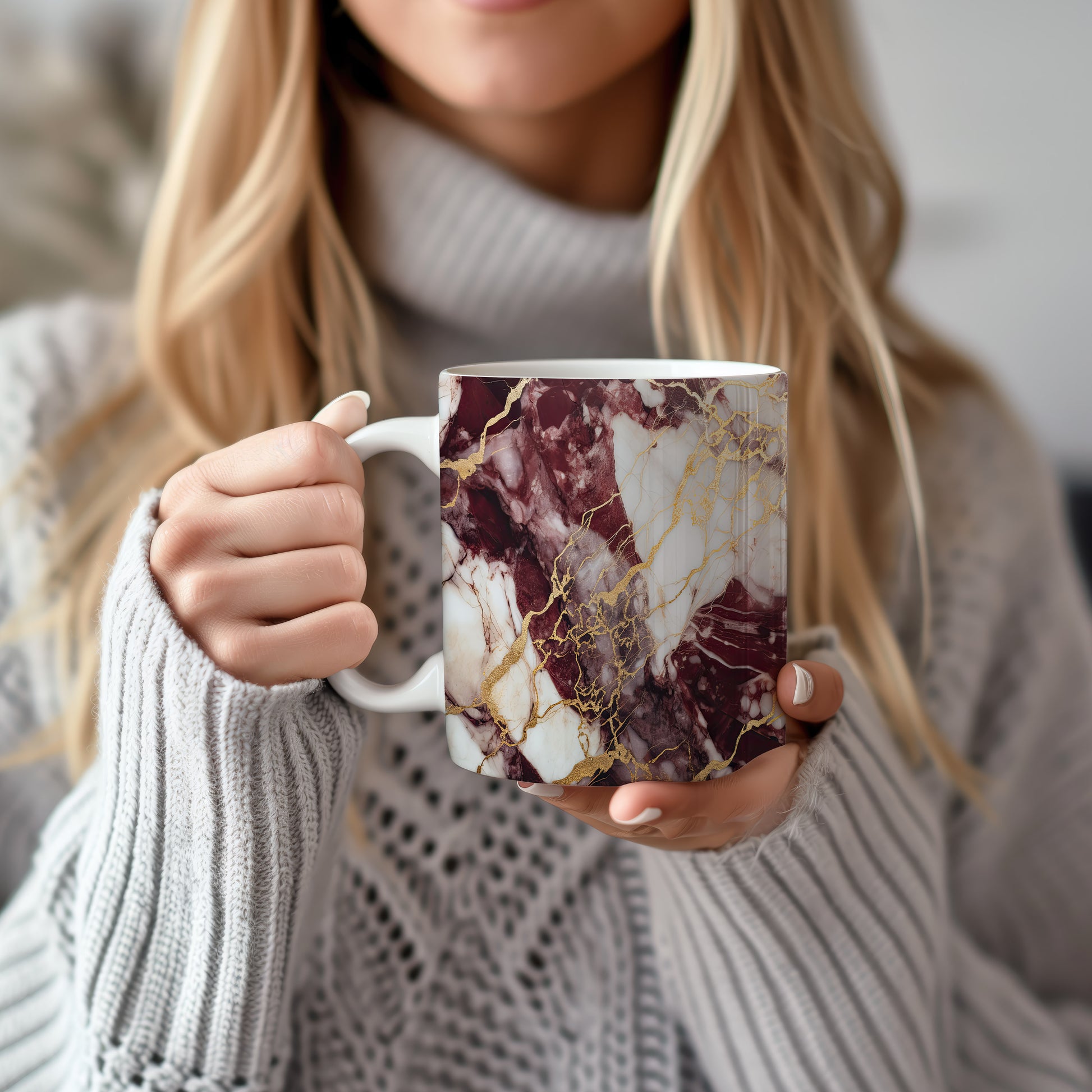 Tento hrnek s mramorovým vzorem v bílé a vínové barvě přináší elegantní a stylový vzhled. Je ideální pro milovníky designu a skvělým dárkem pro přátele či rodinu. Materiál: keramika. Objem: 330 ml. Vhodné do myčky i mikrovlnky. Díky svému jedinečnému vzhledu se stane ozdobou každého stolu.