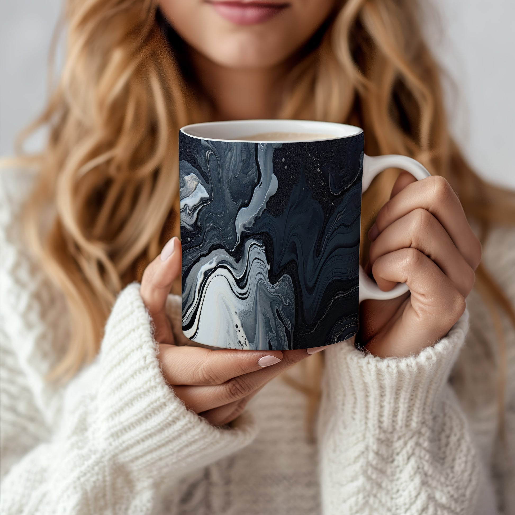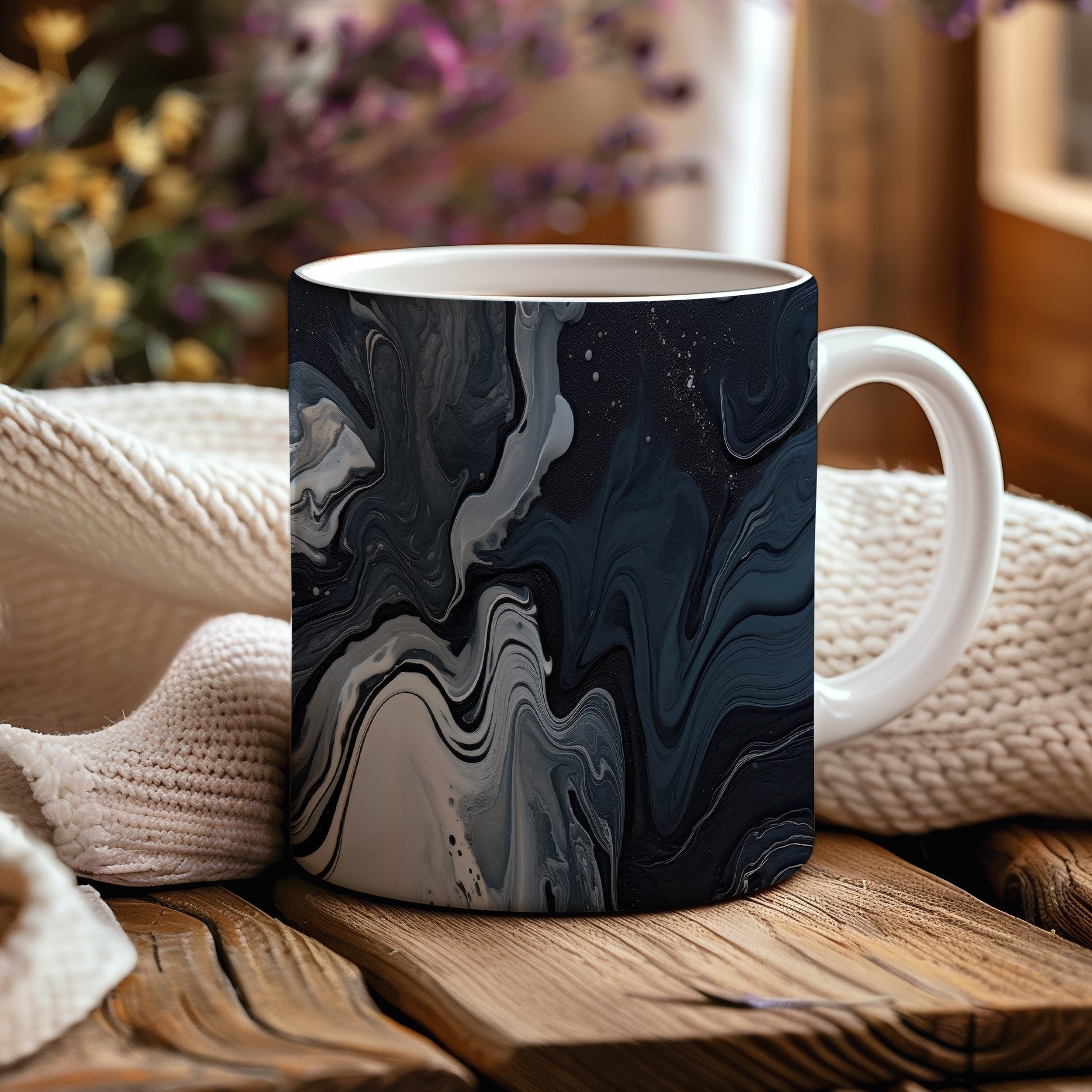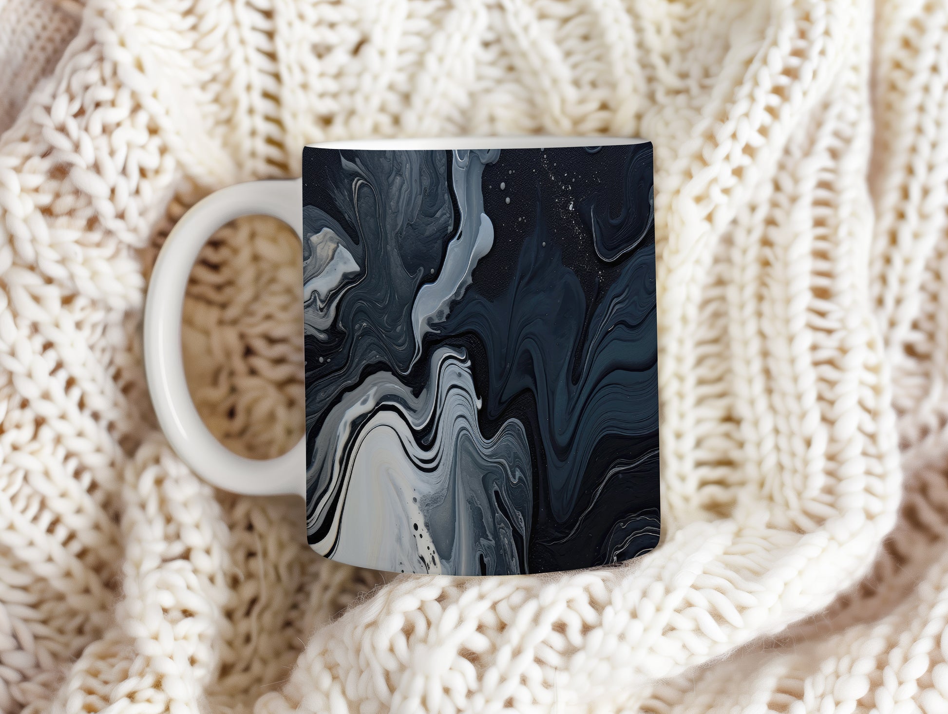 Hrnek s mramorovým vzorem v černých a šedých tónech