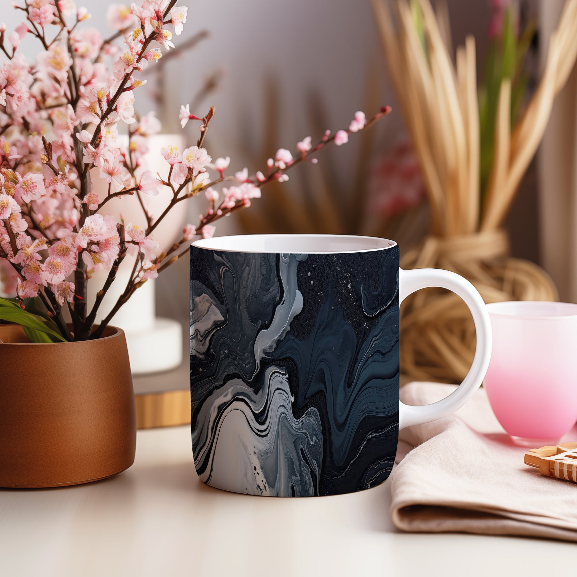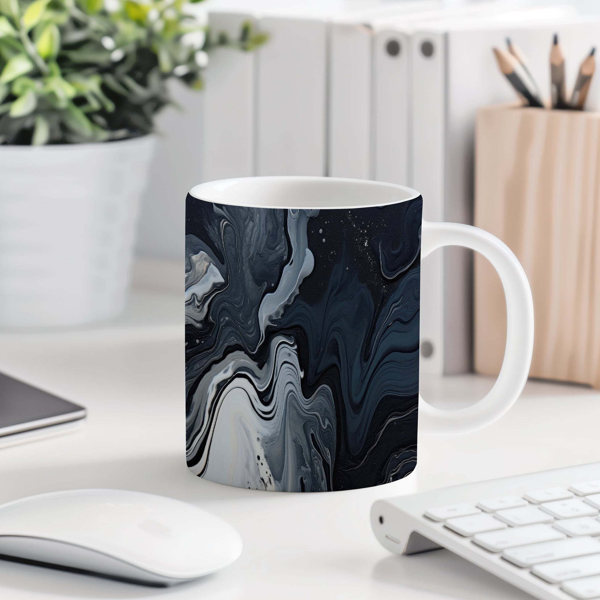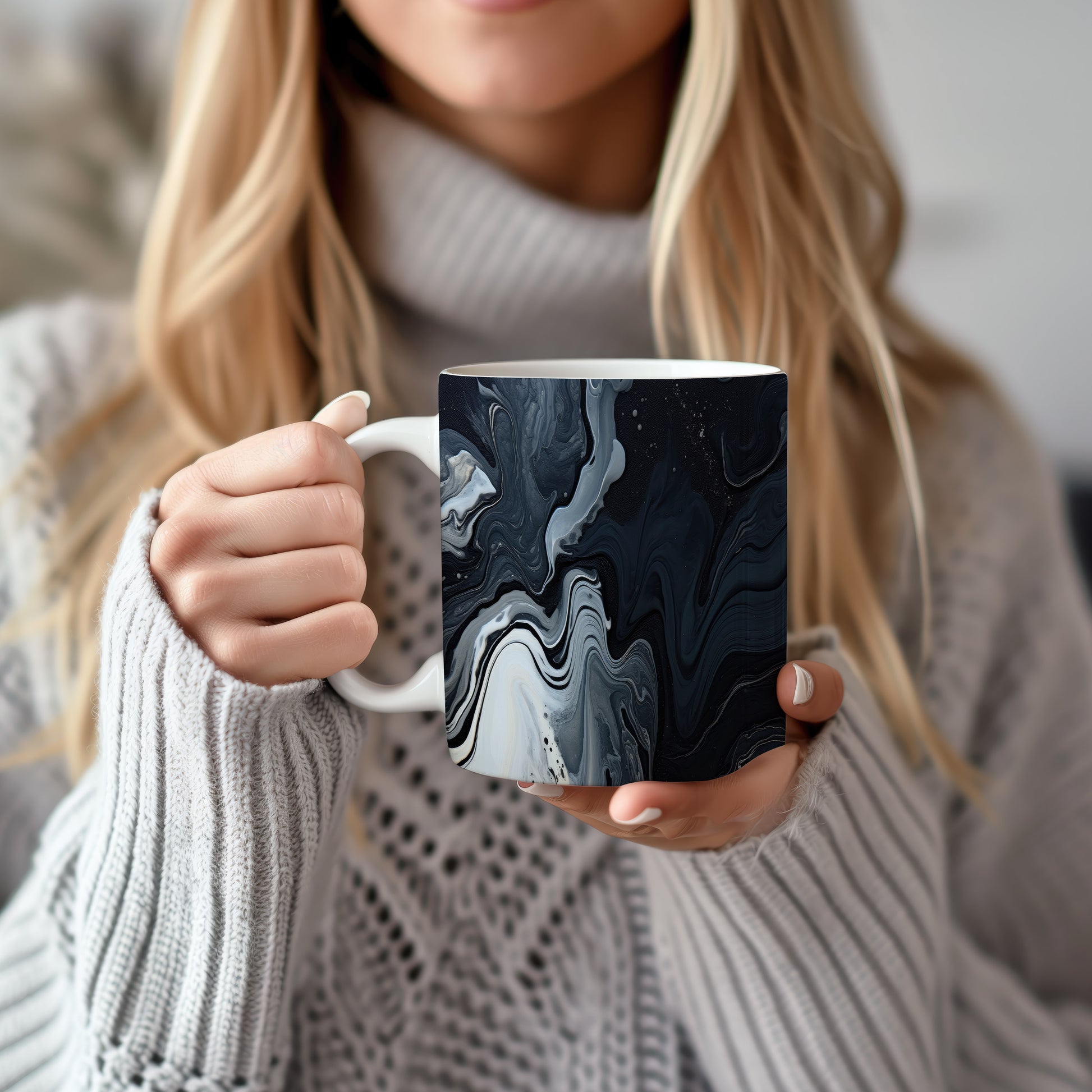 Hrnek s mramorovým vzorem v černých a šedých tónech