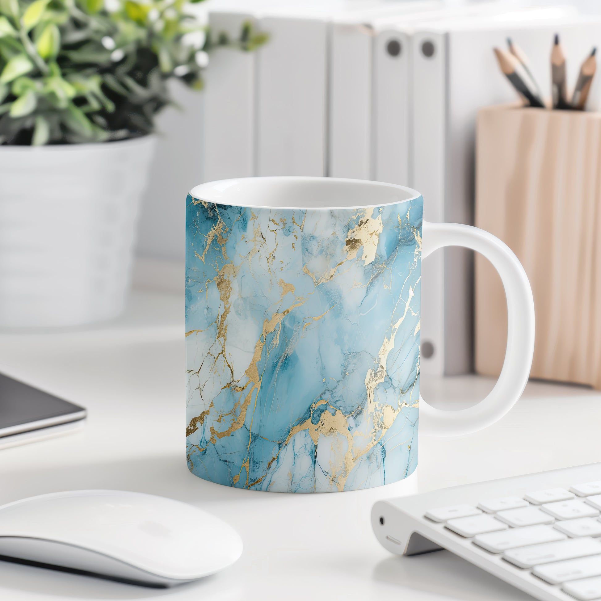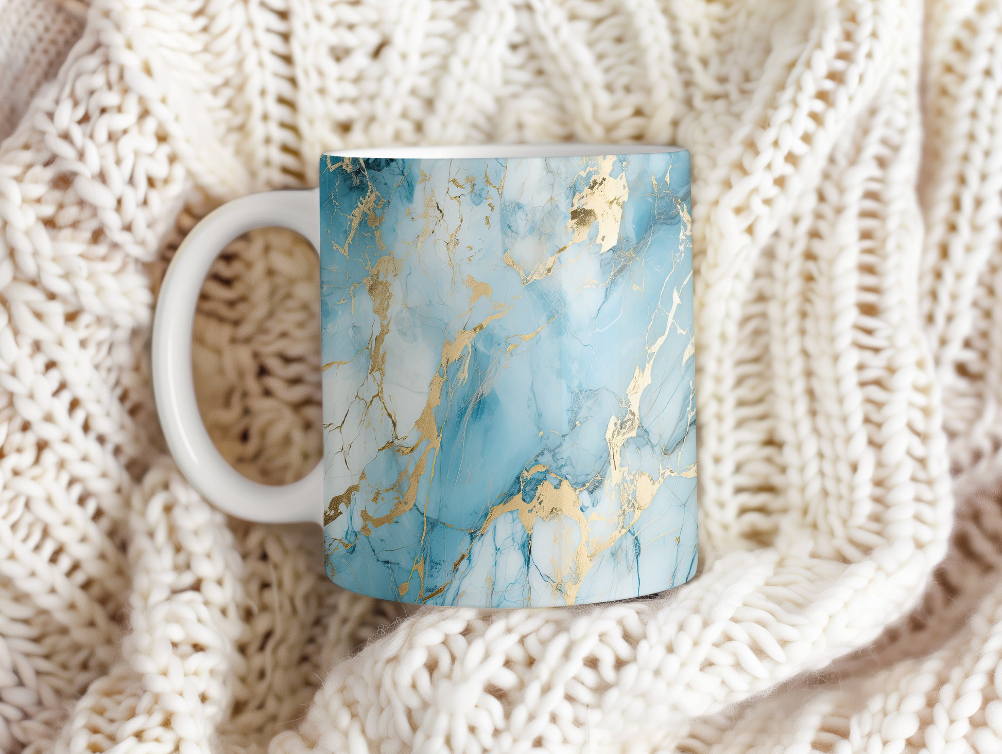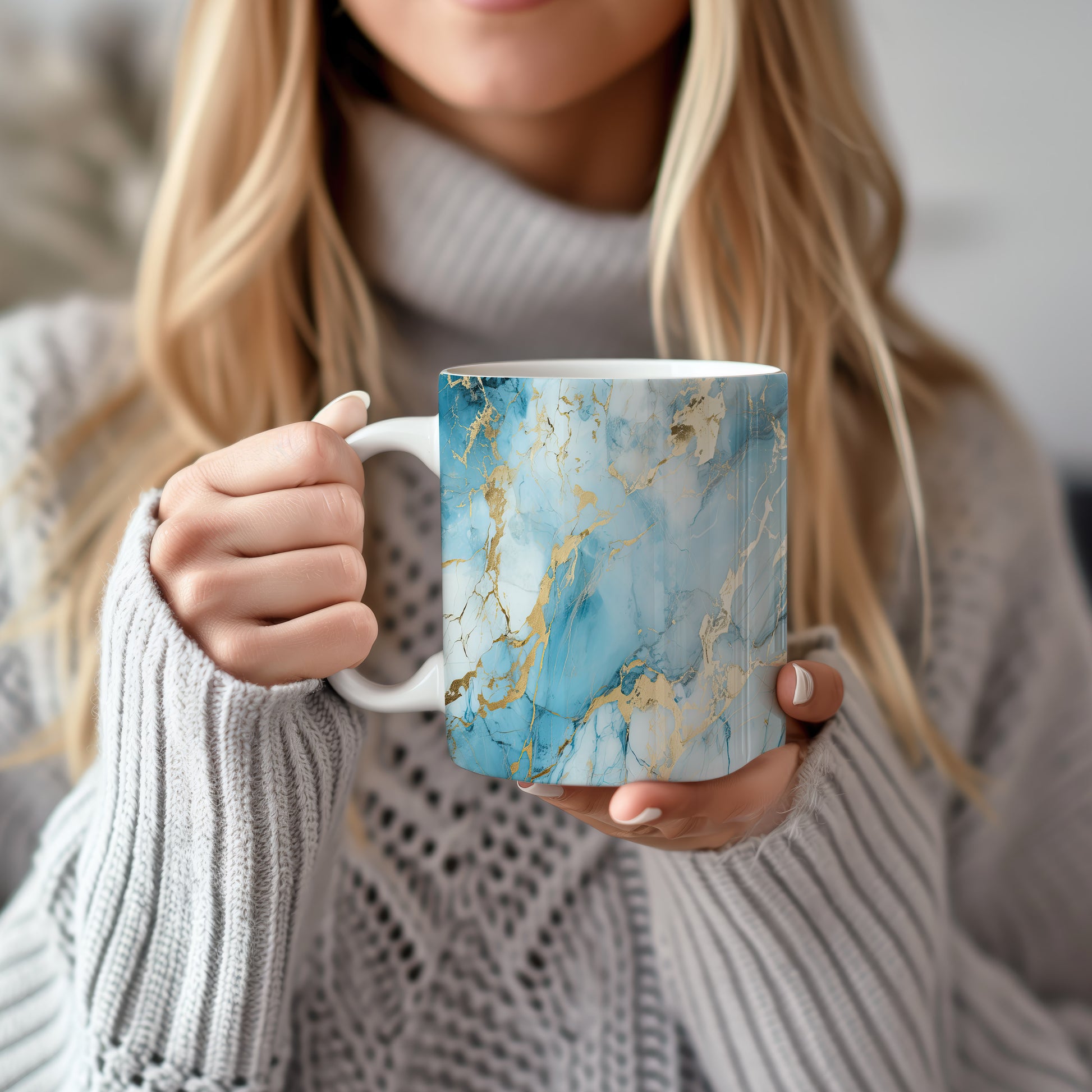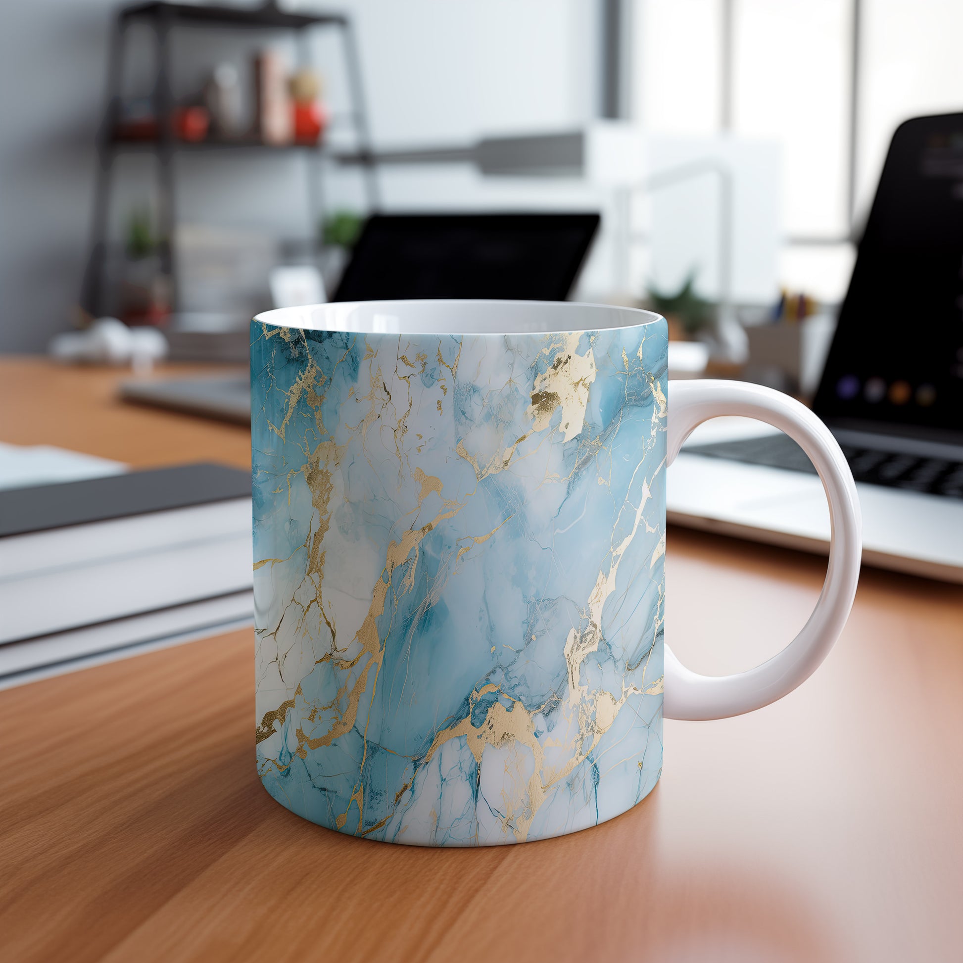 Tento hrnek s mramorovým vzorem v modrých a zlatých tónech přináší elegantní a stylový vzhled. Je ideální pro milovníky designu a skvělým dárkem pro přátele či rodinu. Materiál: keramika. Objem: 330 ml. Vhodné do myčky i mikrovlnky. Díky svému jedinečnému vzhledu se stane ozdobou každého stolu.
