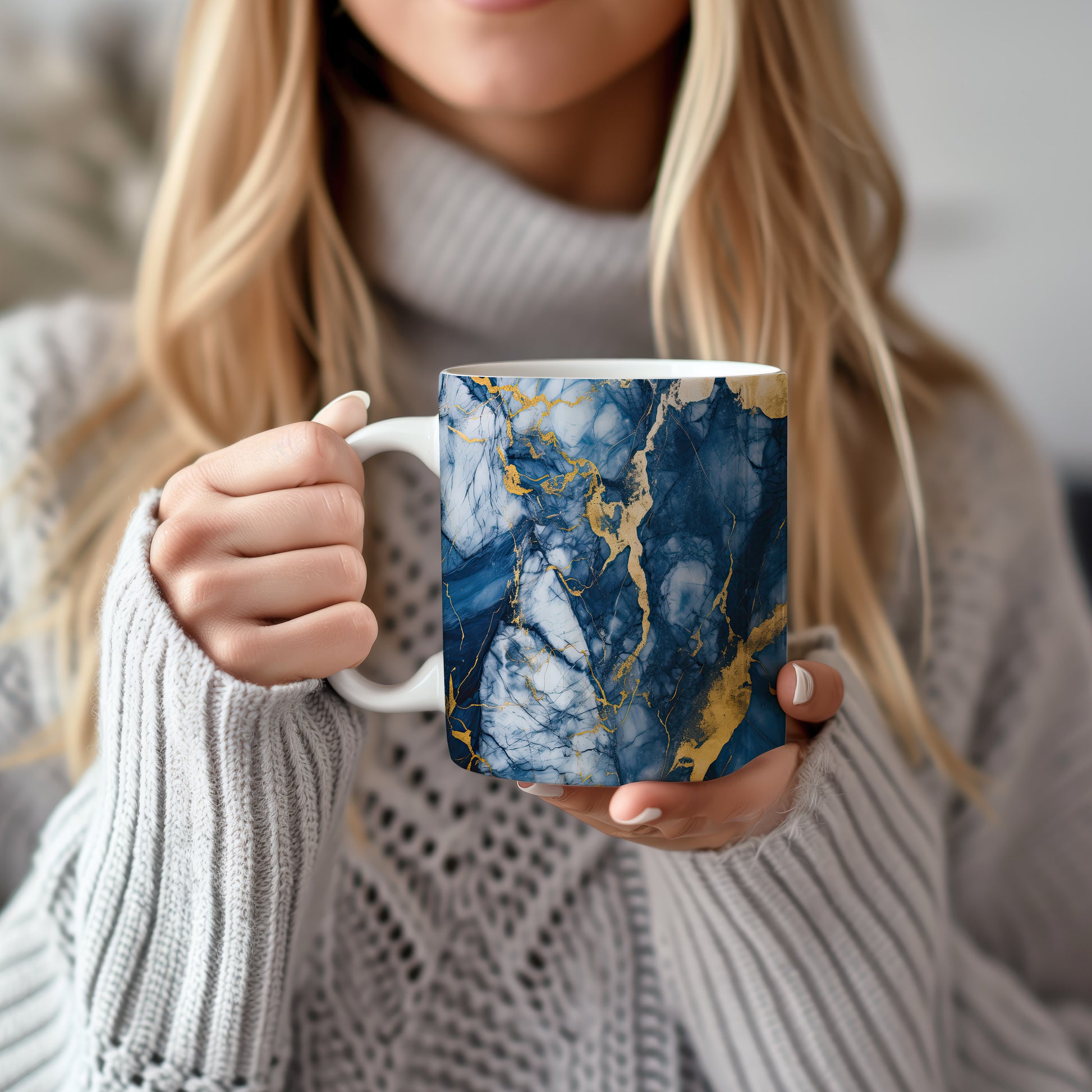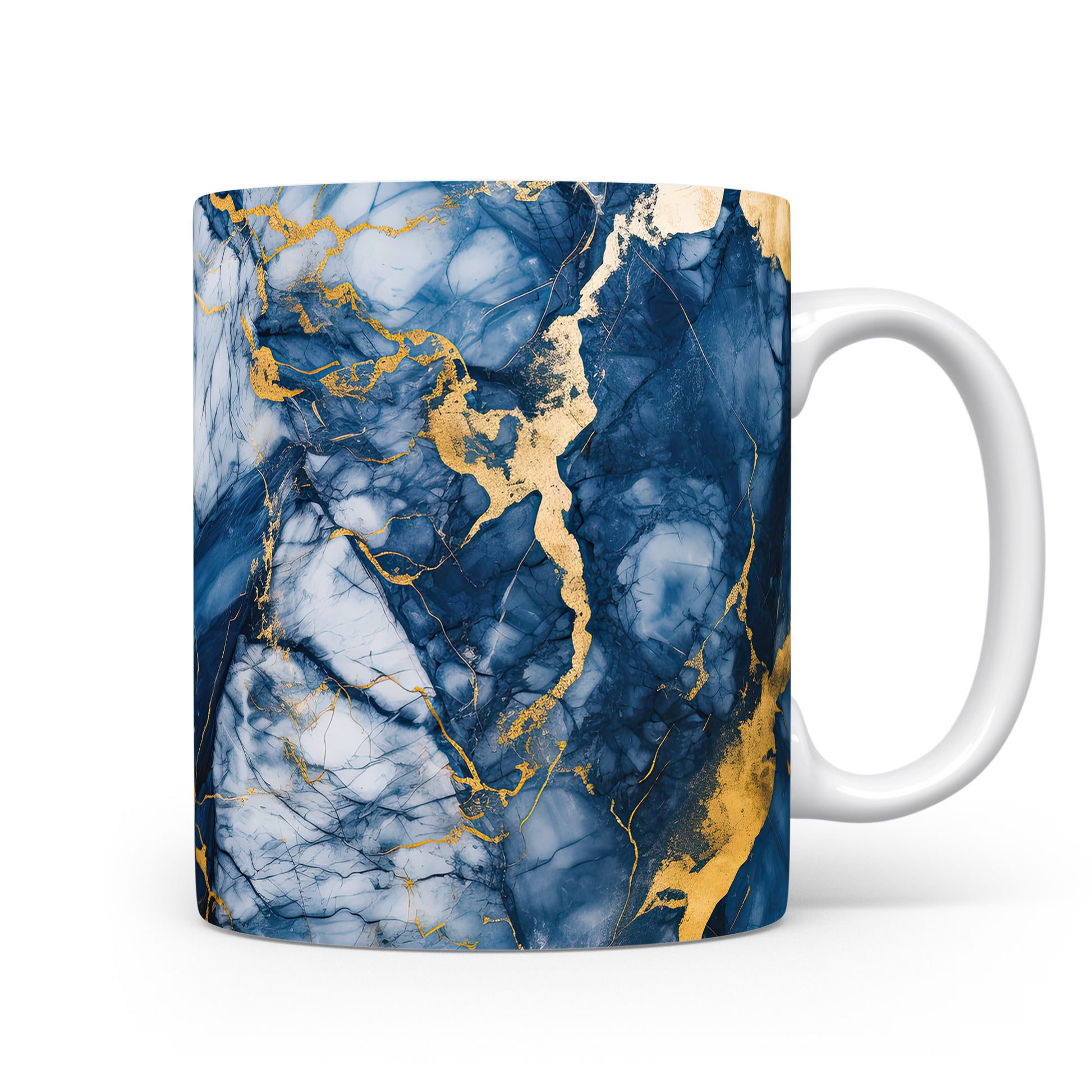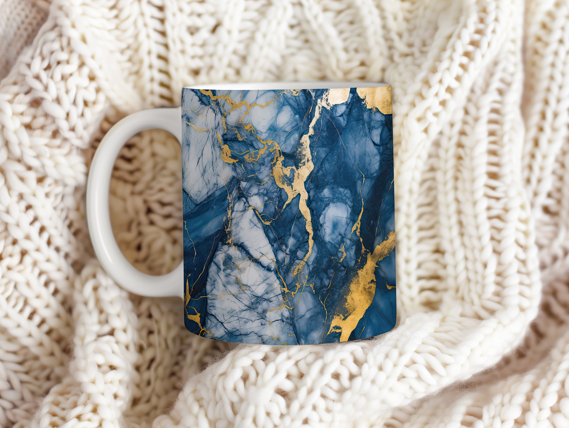 Hrnek s mramorovým vzorem v modrých a zlatých tónech – modrými detaily