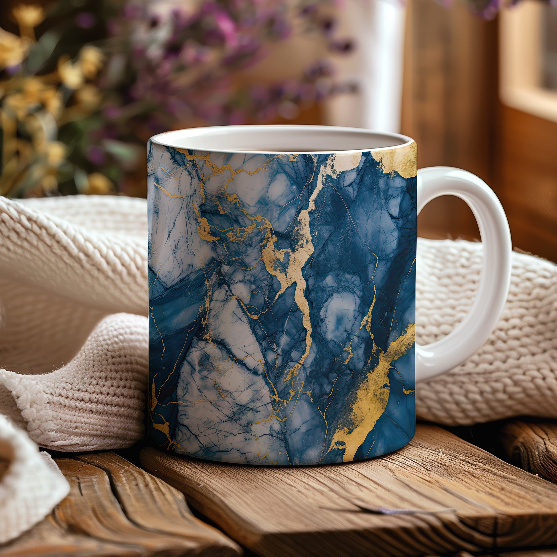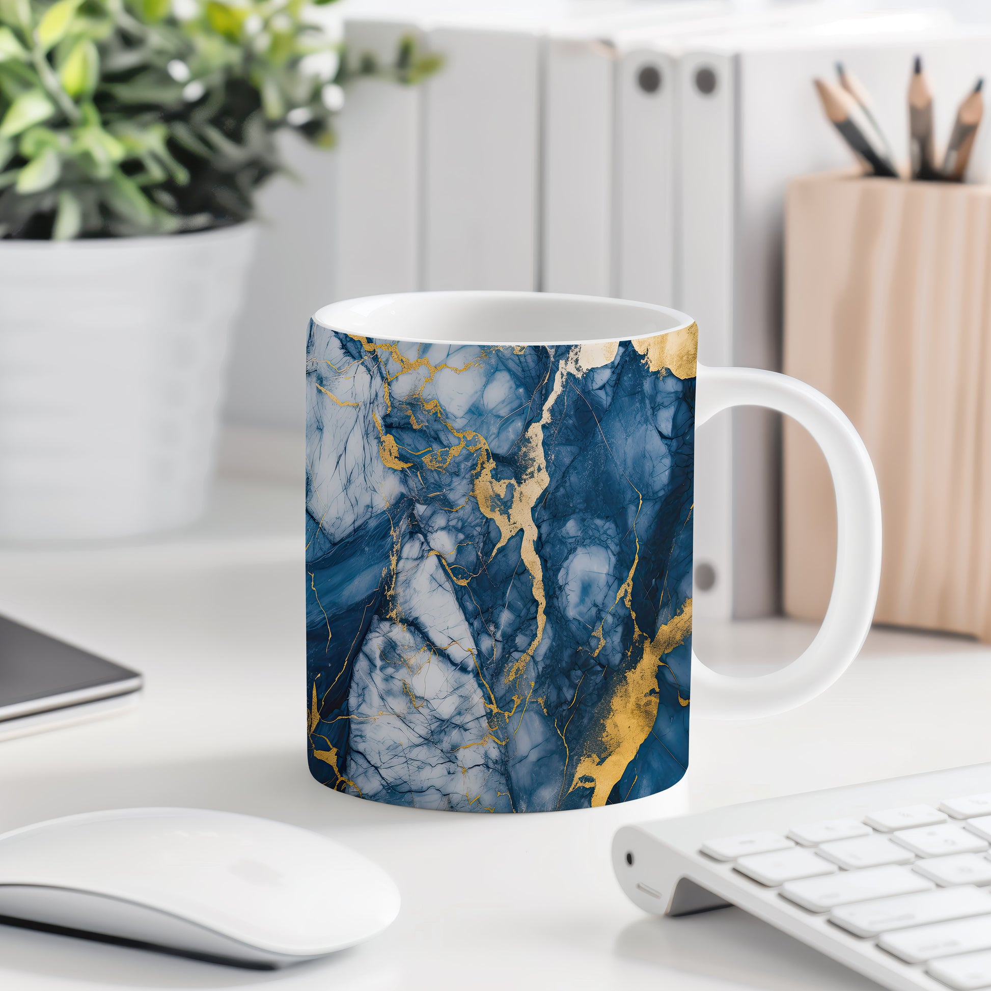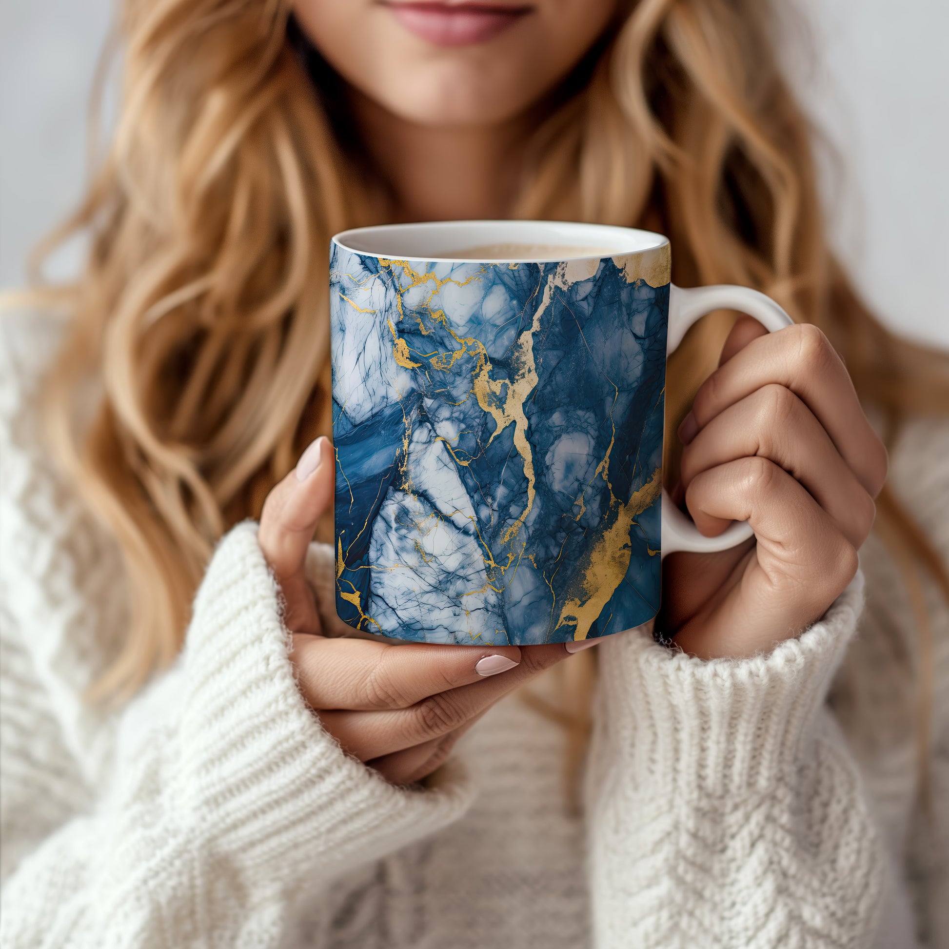 Hrnek s mramorovým vzorem v modrých a zlatých tónech – modrými detaily