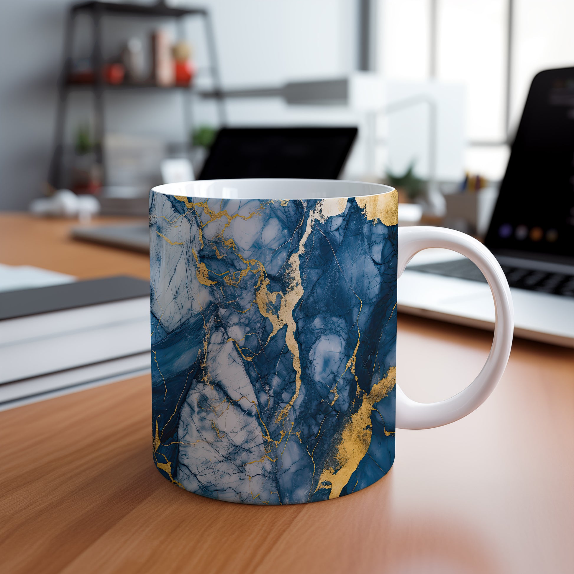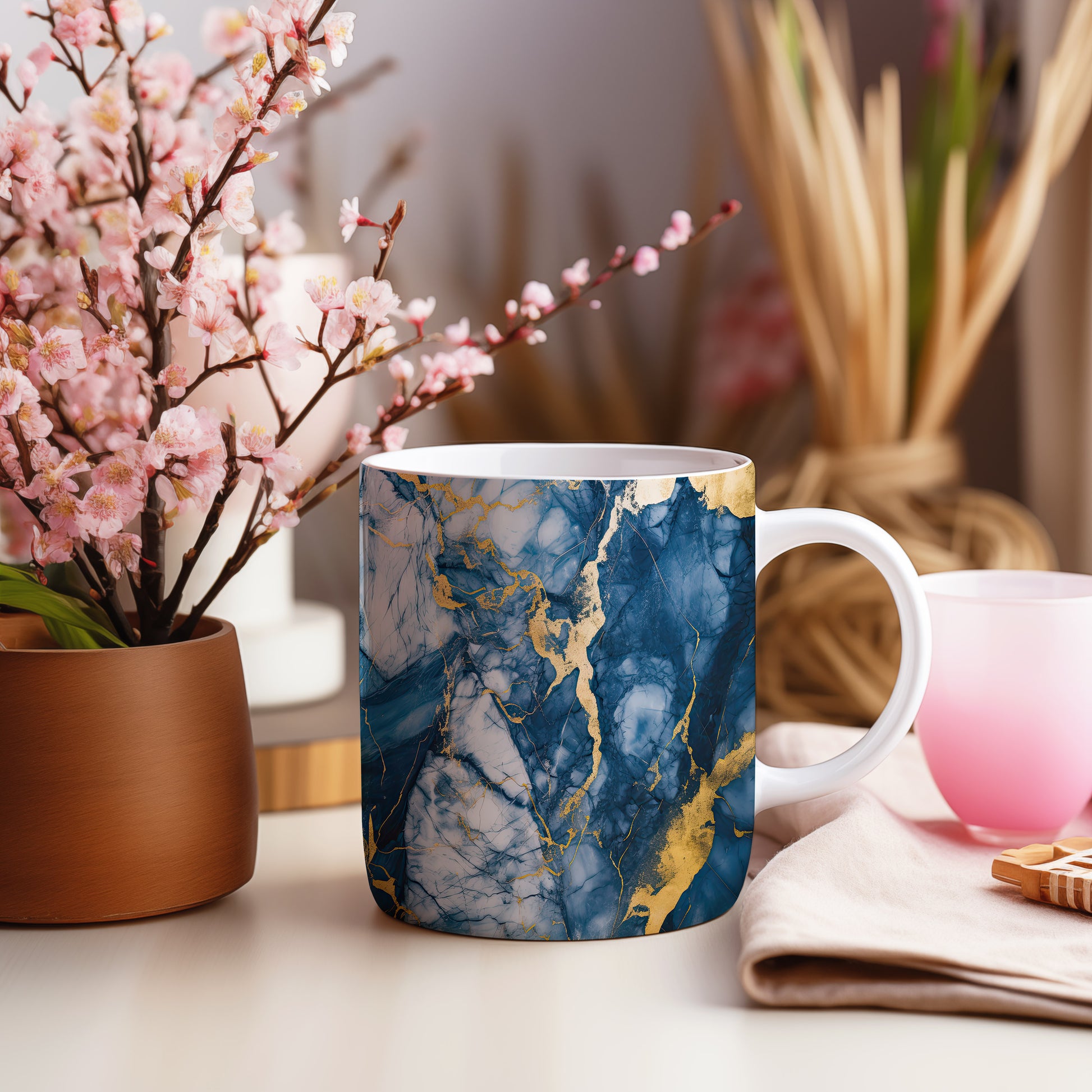 Tento hrnek s mramorovým vzorem v modrých a zlatých tónech přináší elegantní a sofistikovaný vzhled. Je ideální pro milovníky stylového nádobí a skvělým dárkem pro přátele či rodinu. Materiál: keramika. Objem: 330 ml. Vhodné do myčky i mikrovlnky. Díky hladké a lesklé textuře se stane ozdobou každého stolu.