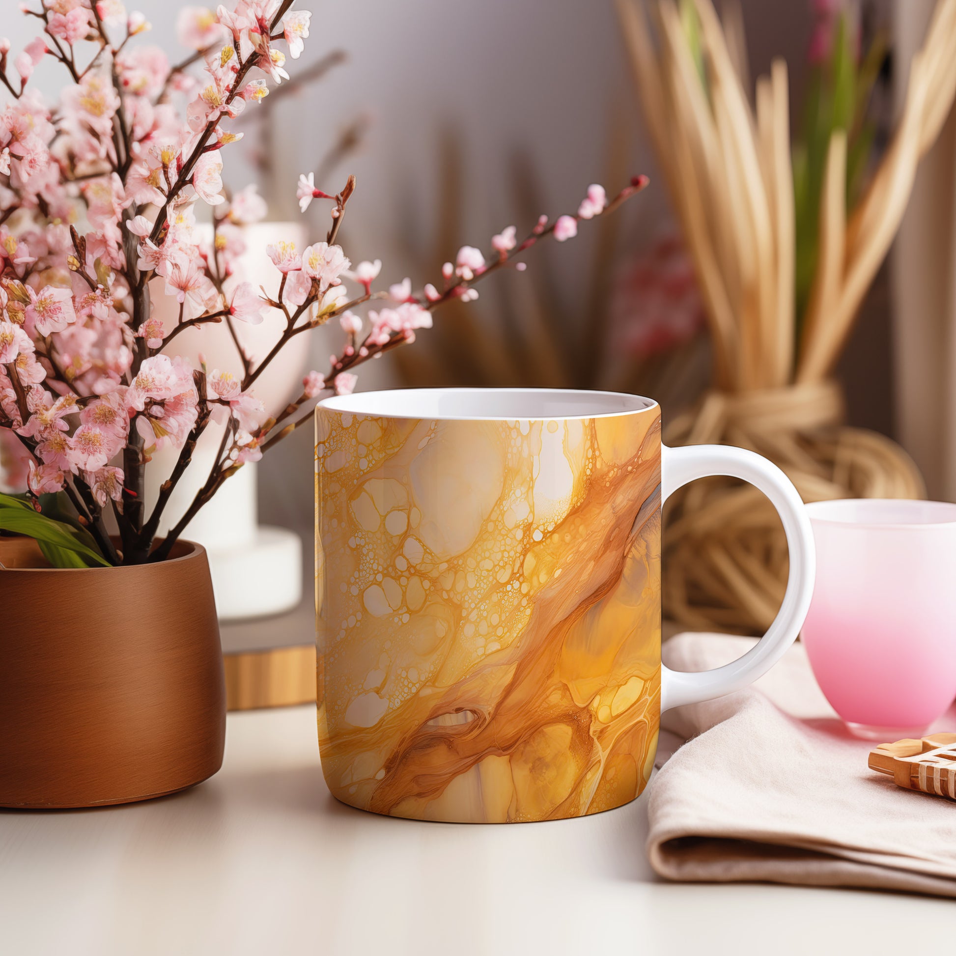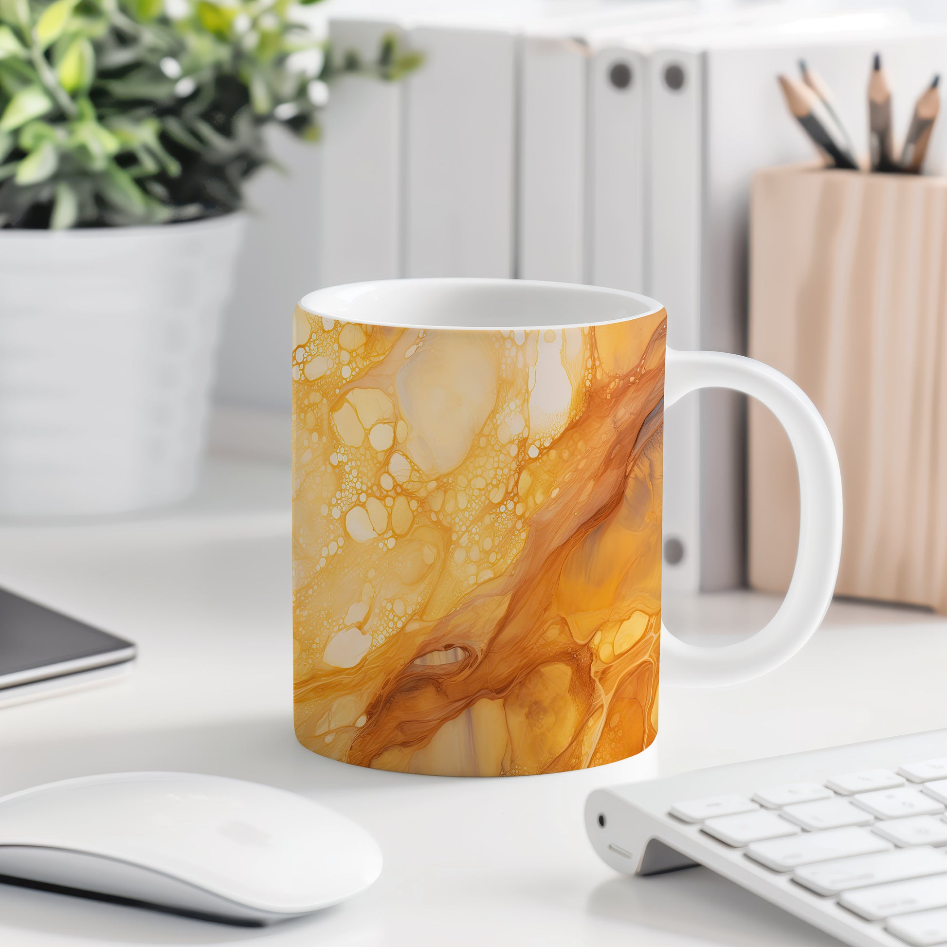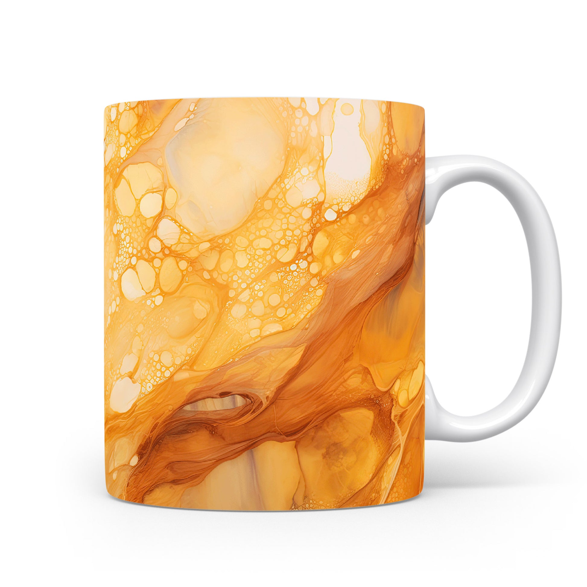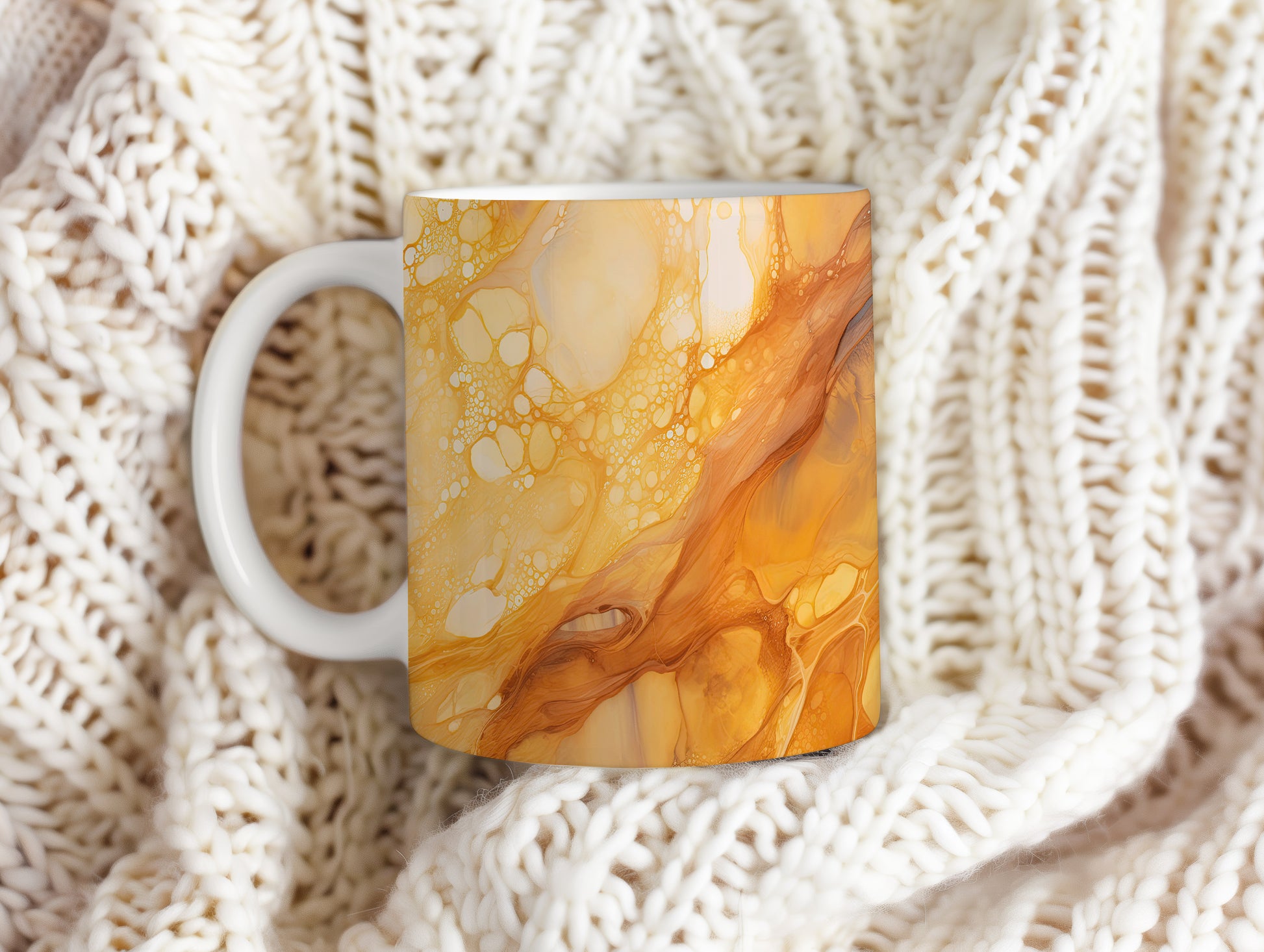 Hrnek s mramorovým vzorem v oranžových a béžových tónech