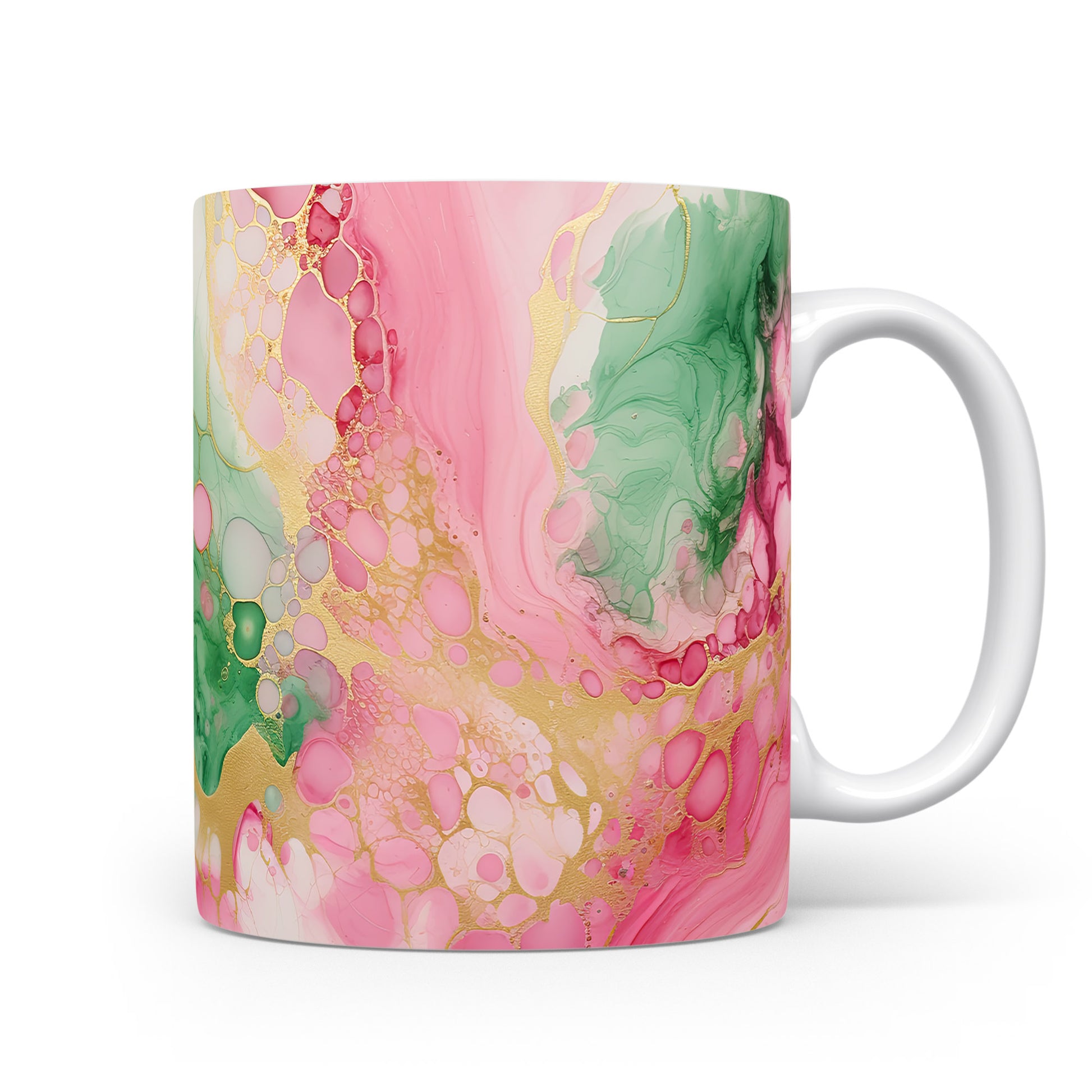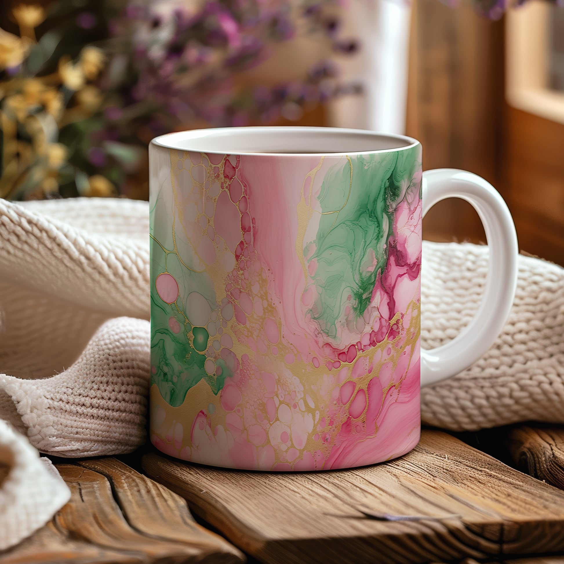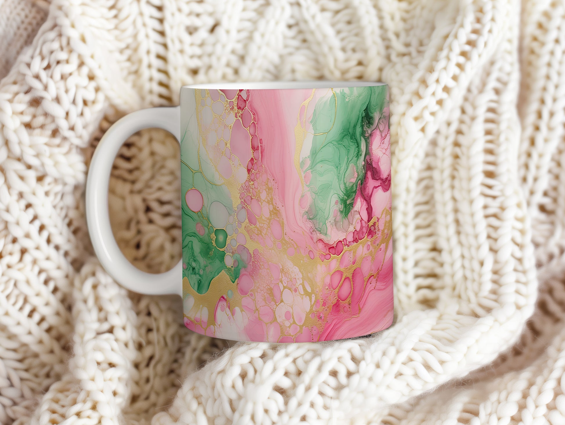 Hrnek s mramorovým vzorem v růžových a zelených tónech