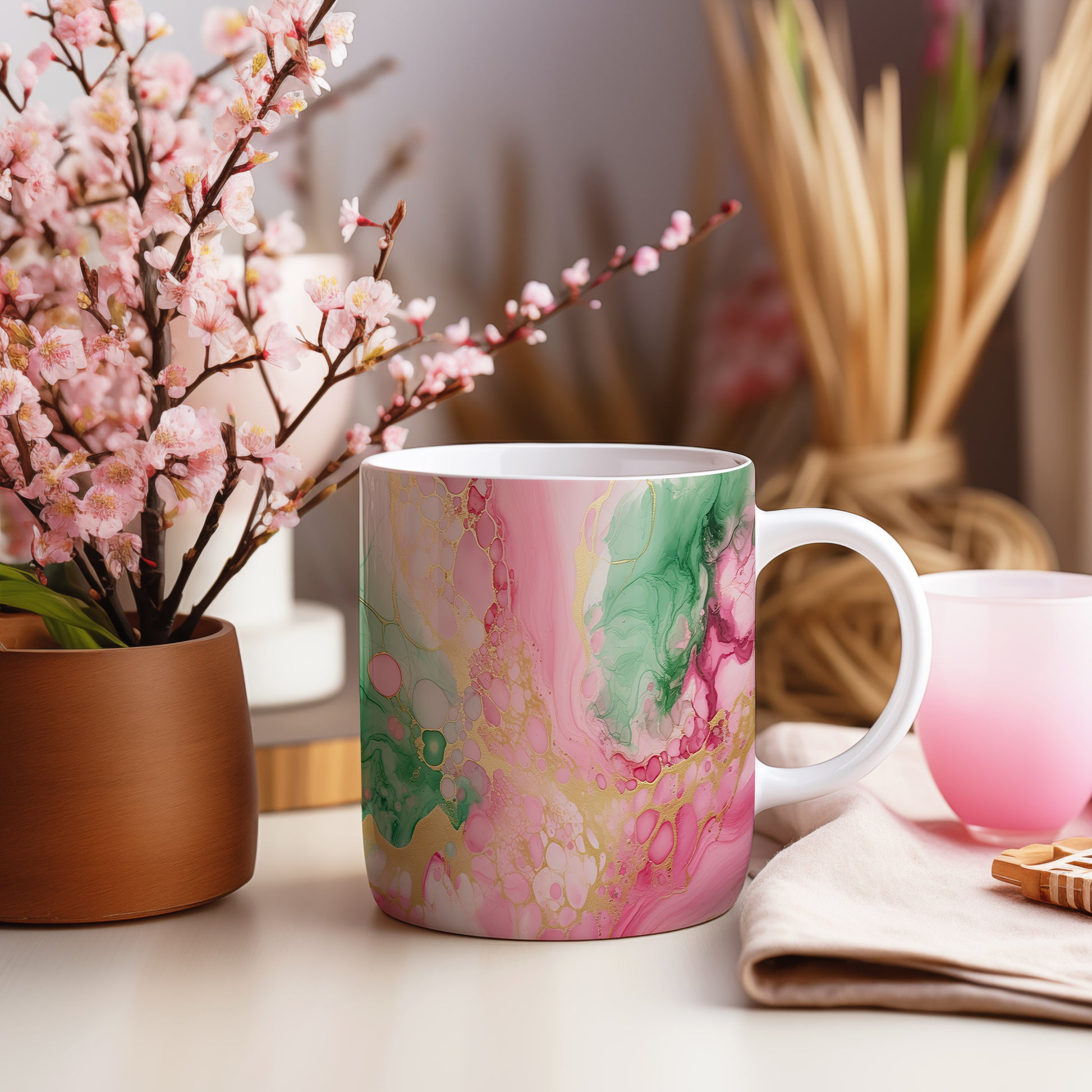 Tento hrnek s mramorovým vzorem v růžových a zelených tónech přináší elegantní a moderní styl. Je ideální pro milovníky designu a skvělým dárkem pro přátele či rodinu. Materiál: keramika. Objem: 330 ml. Vhodné do myčky i mikrovlnky. Díky svému jedinečnému vzhledu se stane ozdobou každého stolu.