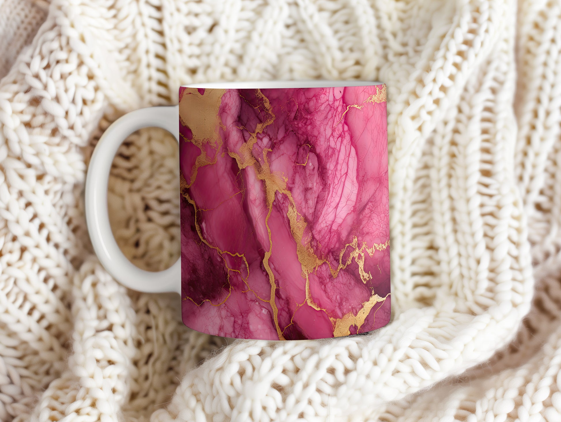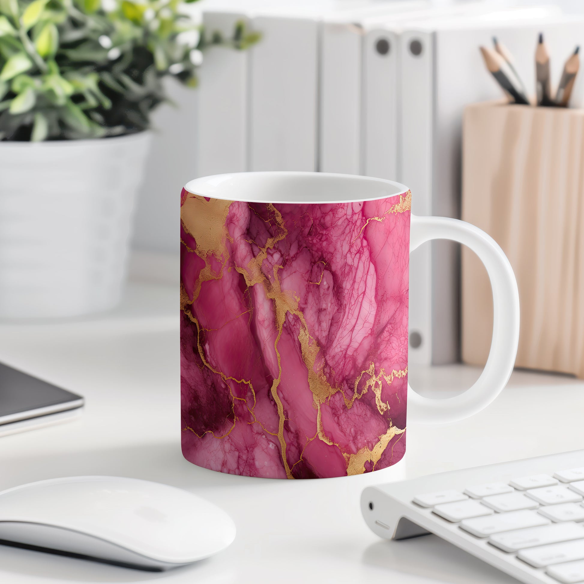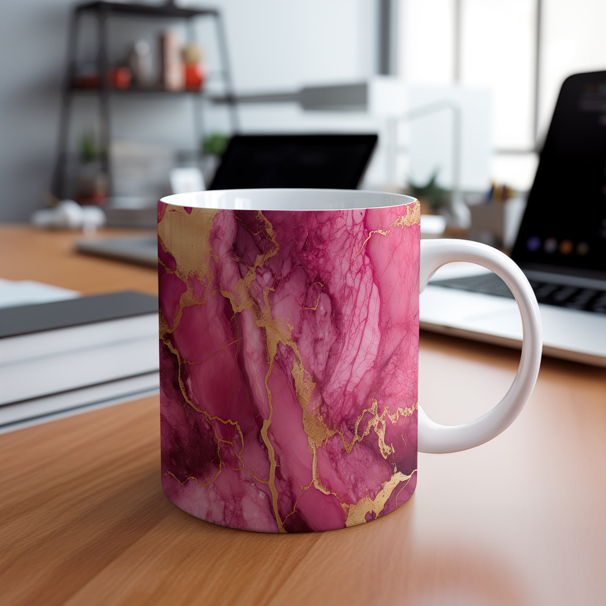 Hrnek s mramorovým vzorem v růžových a zlatých tónech…