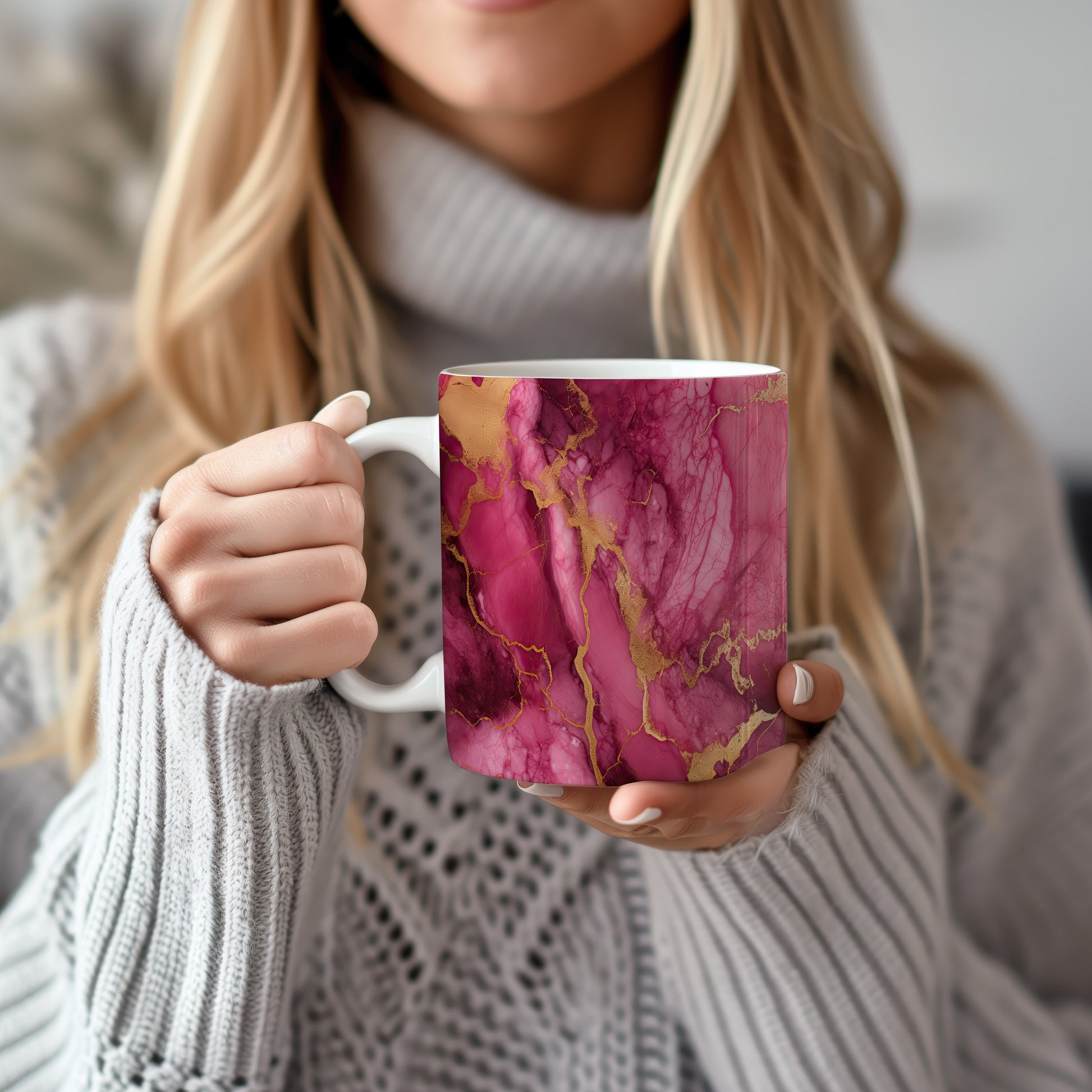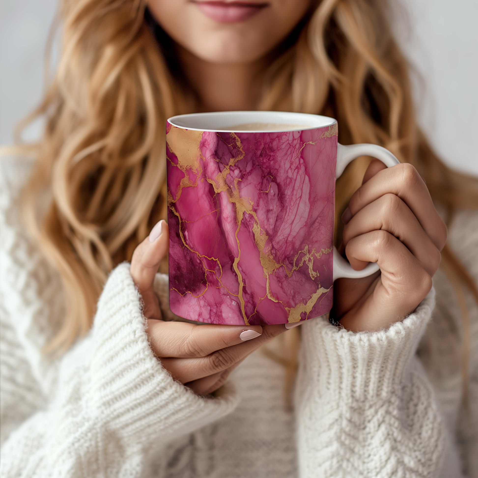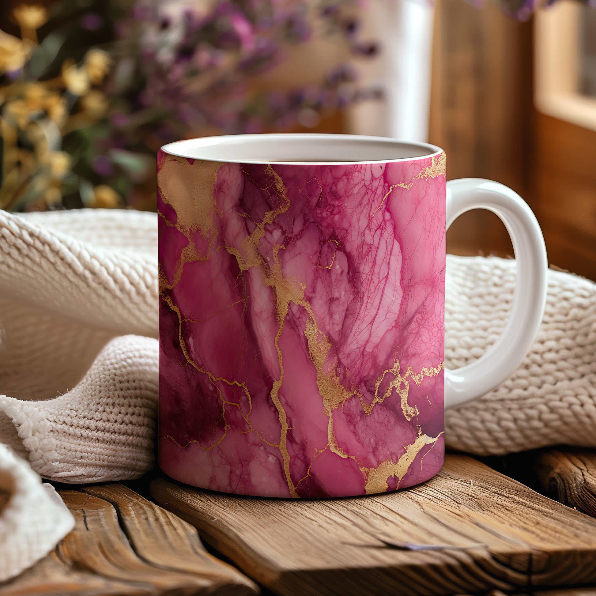 Hrnek s mramorovým vzorem v růžových a zlatých tónech…
