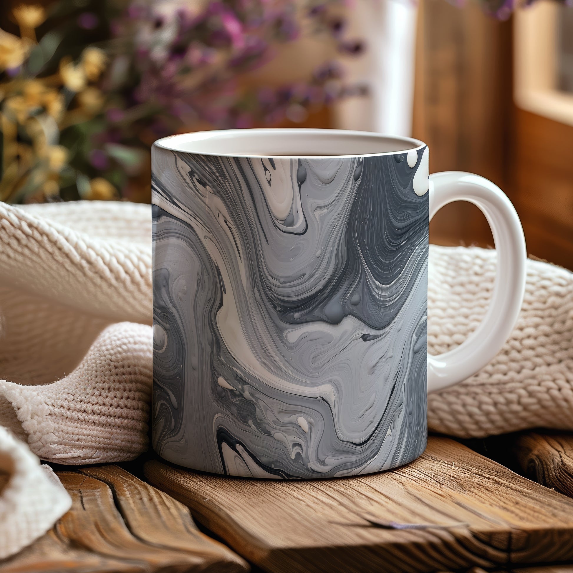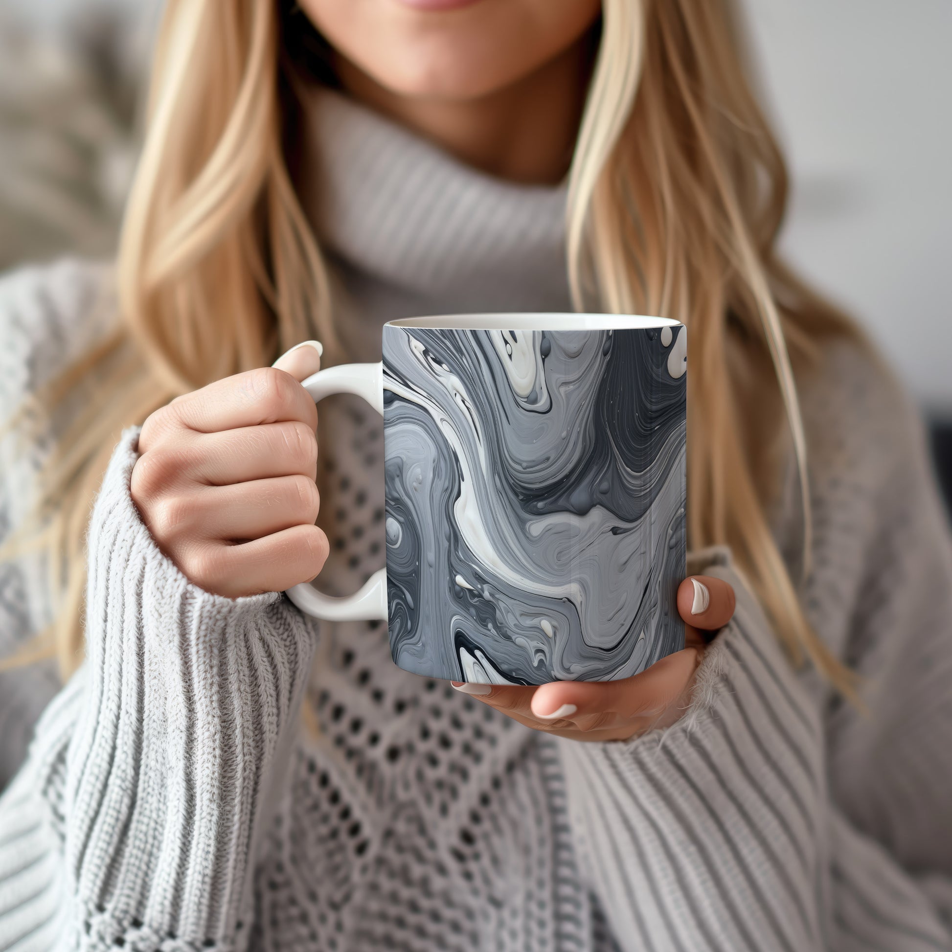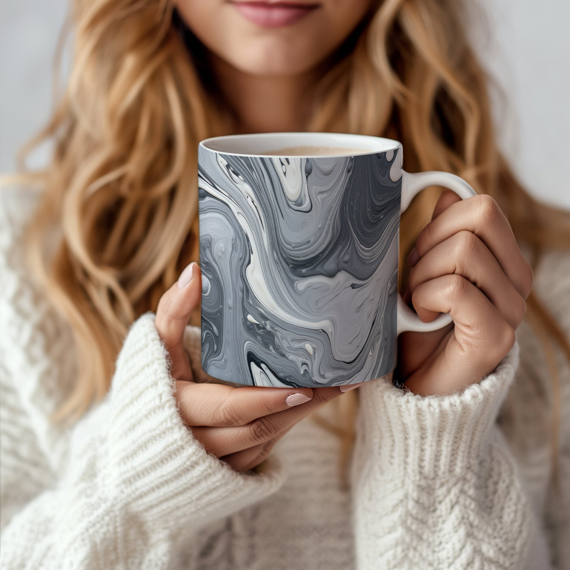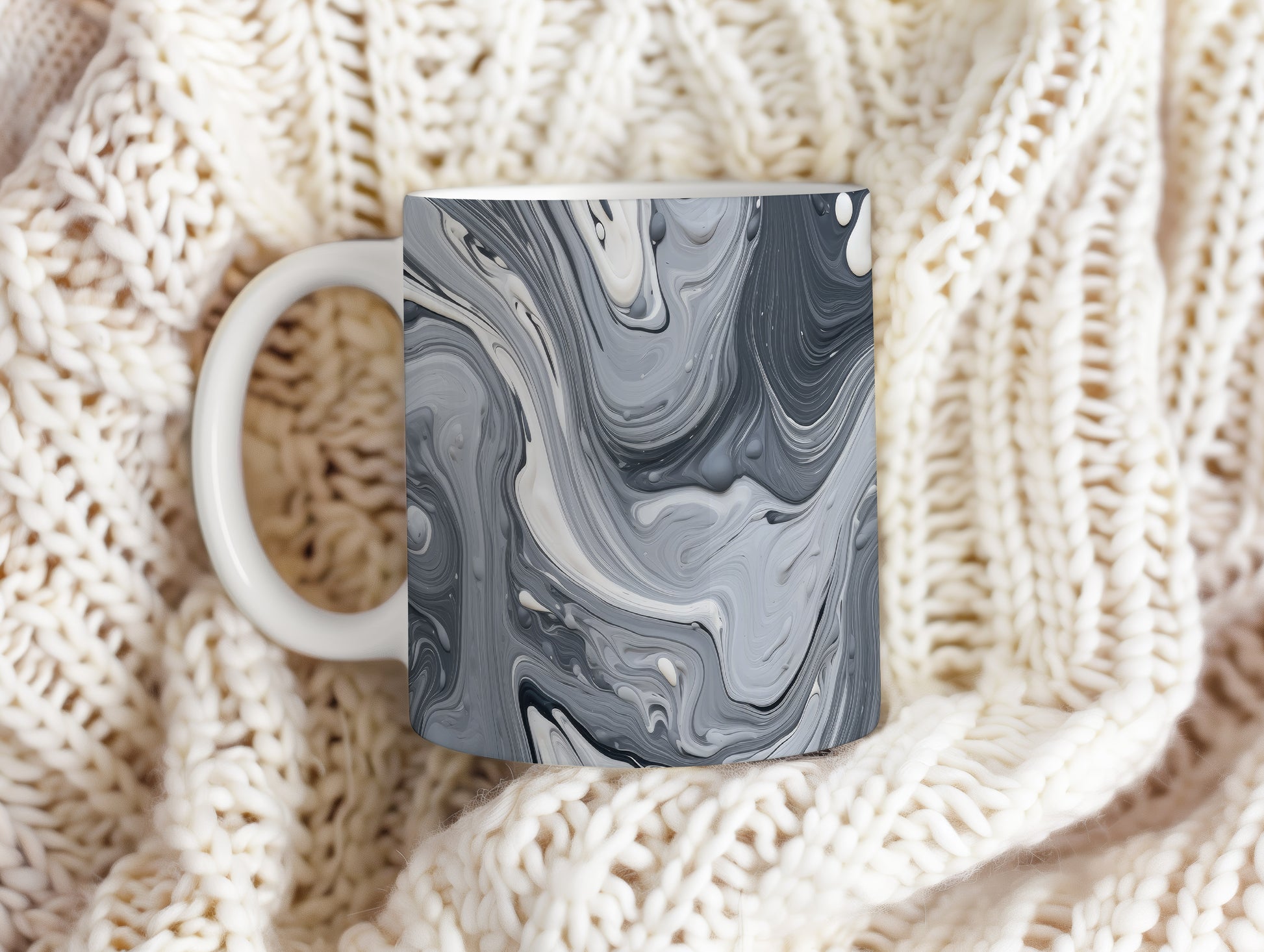 Hrnek s mramorovým vzorem v šedých a bílých tónech – bílým provedením