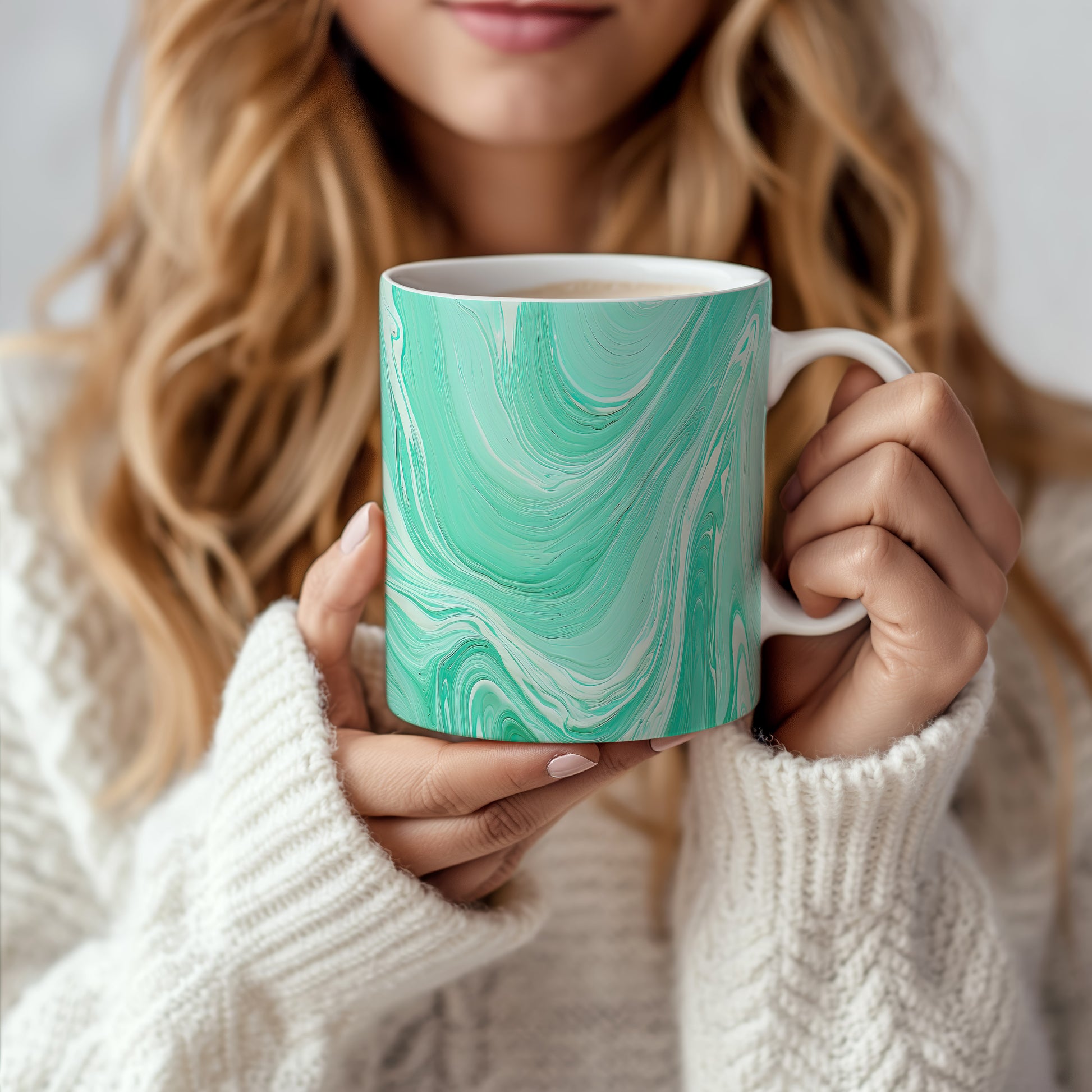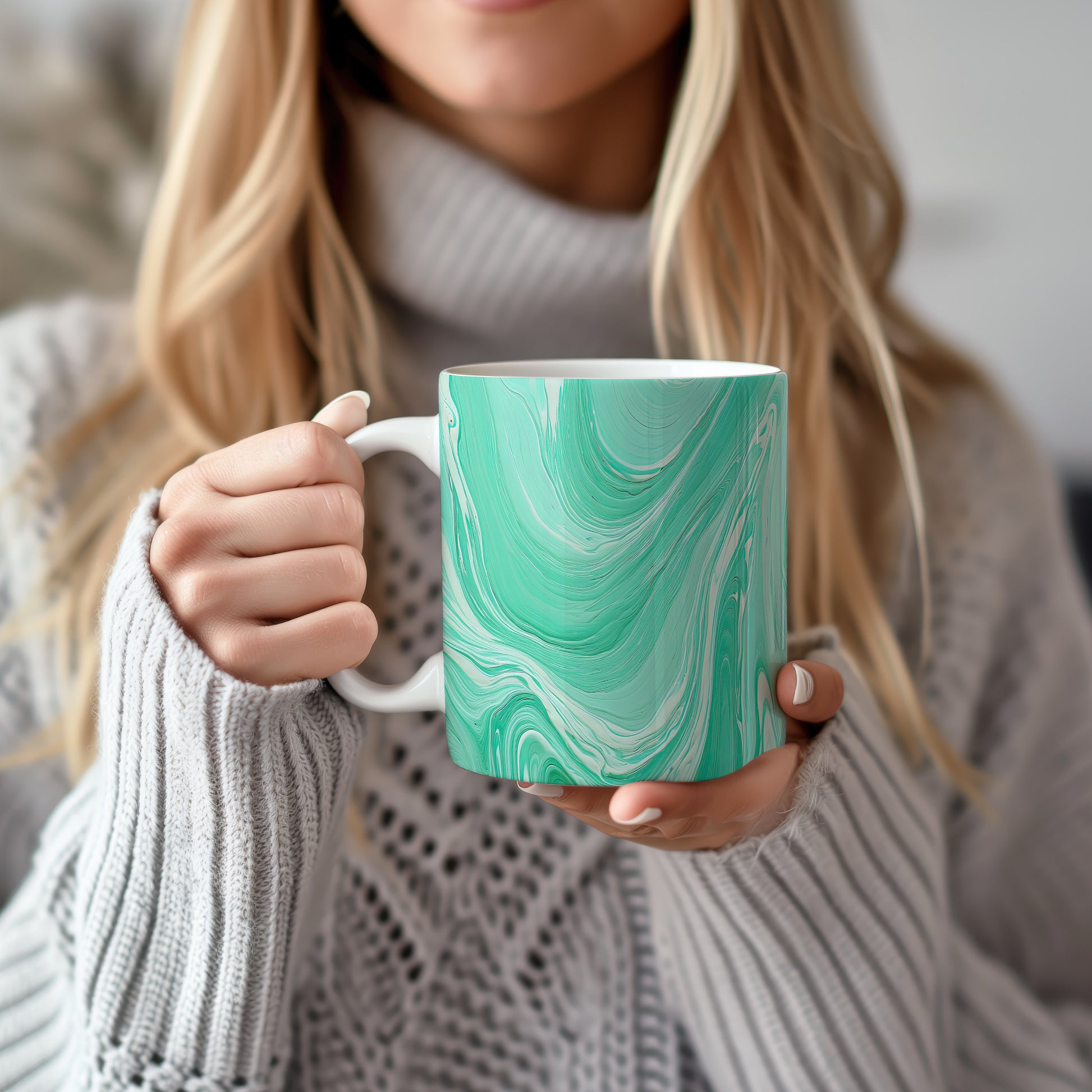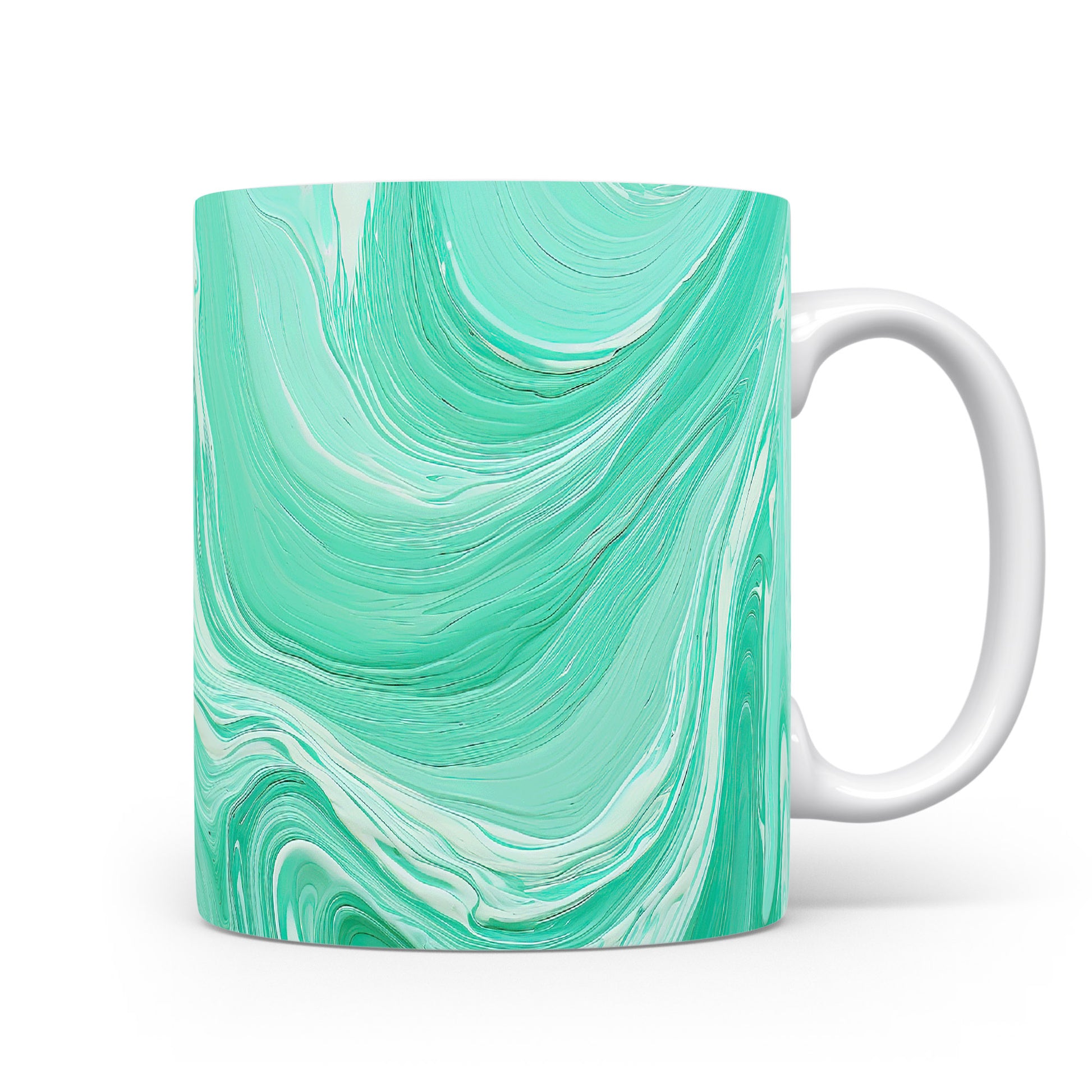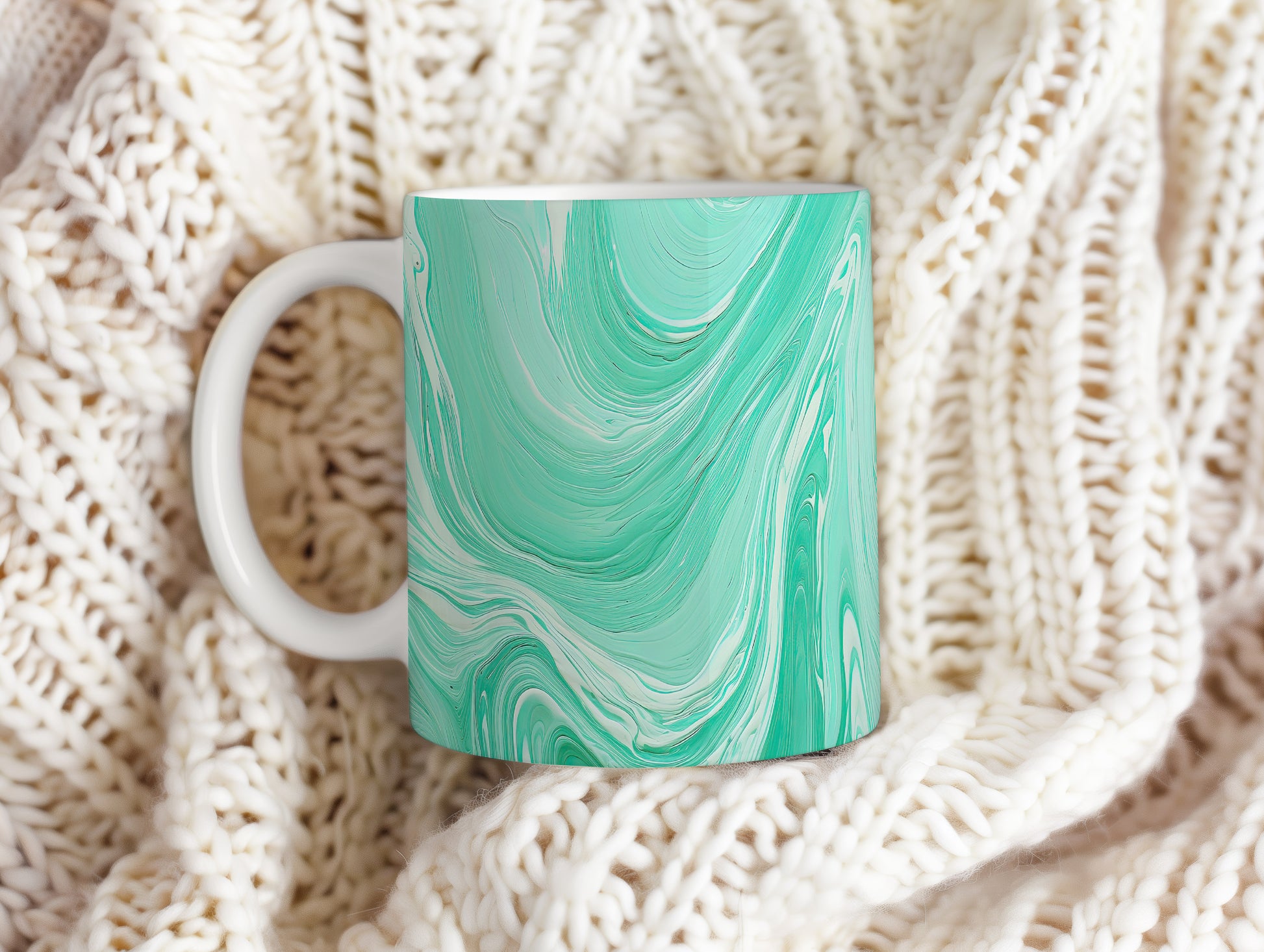 Hrnek s mramorovým vzorem v tyrkysových a bílých tónech