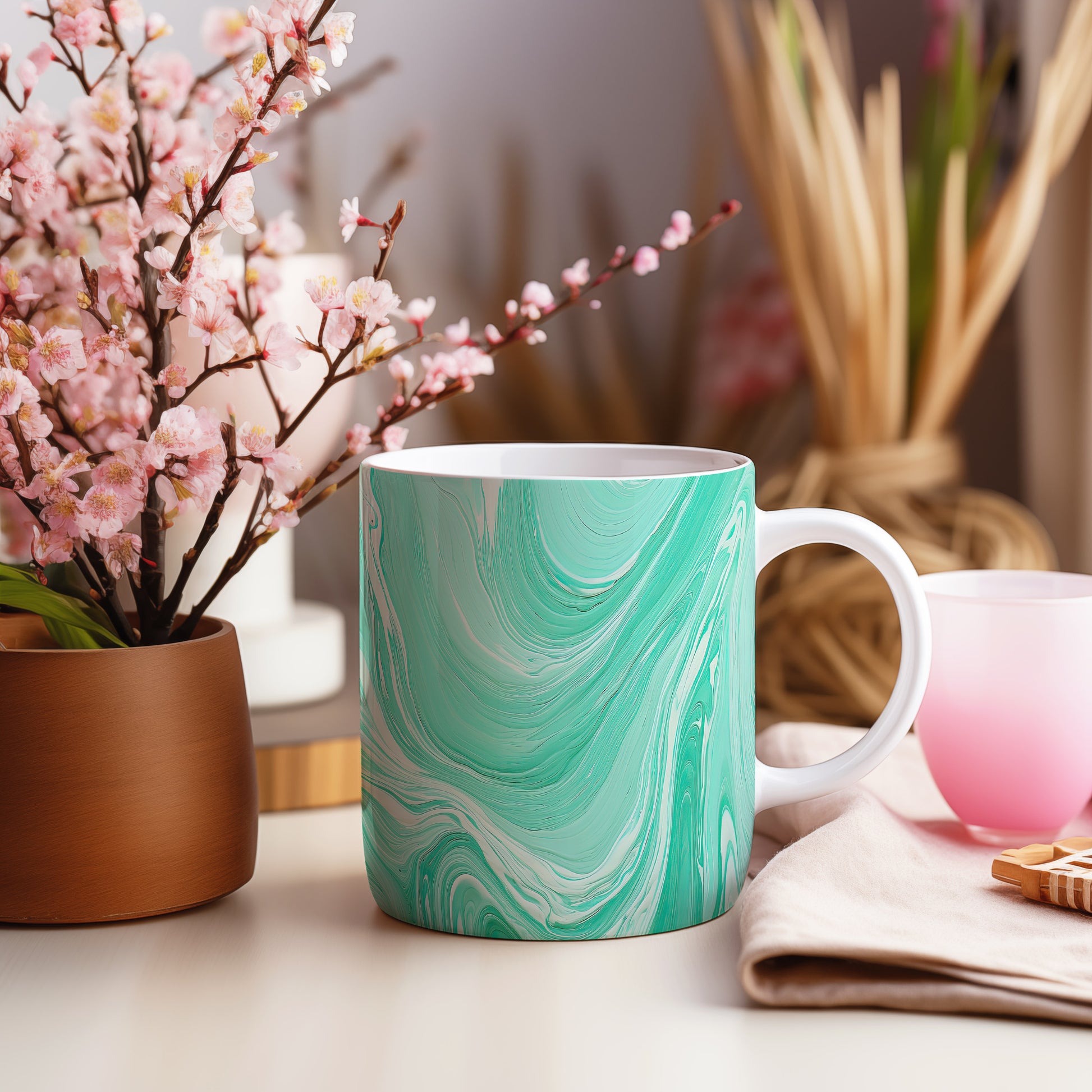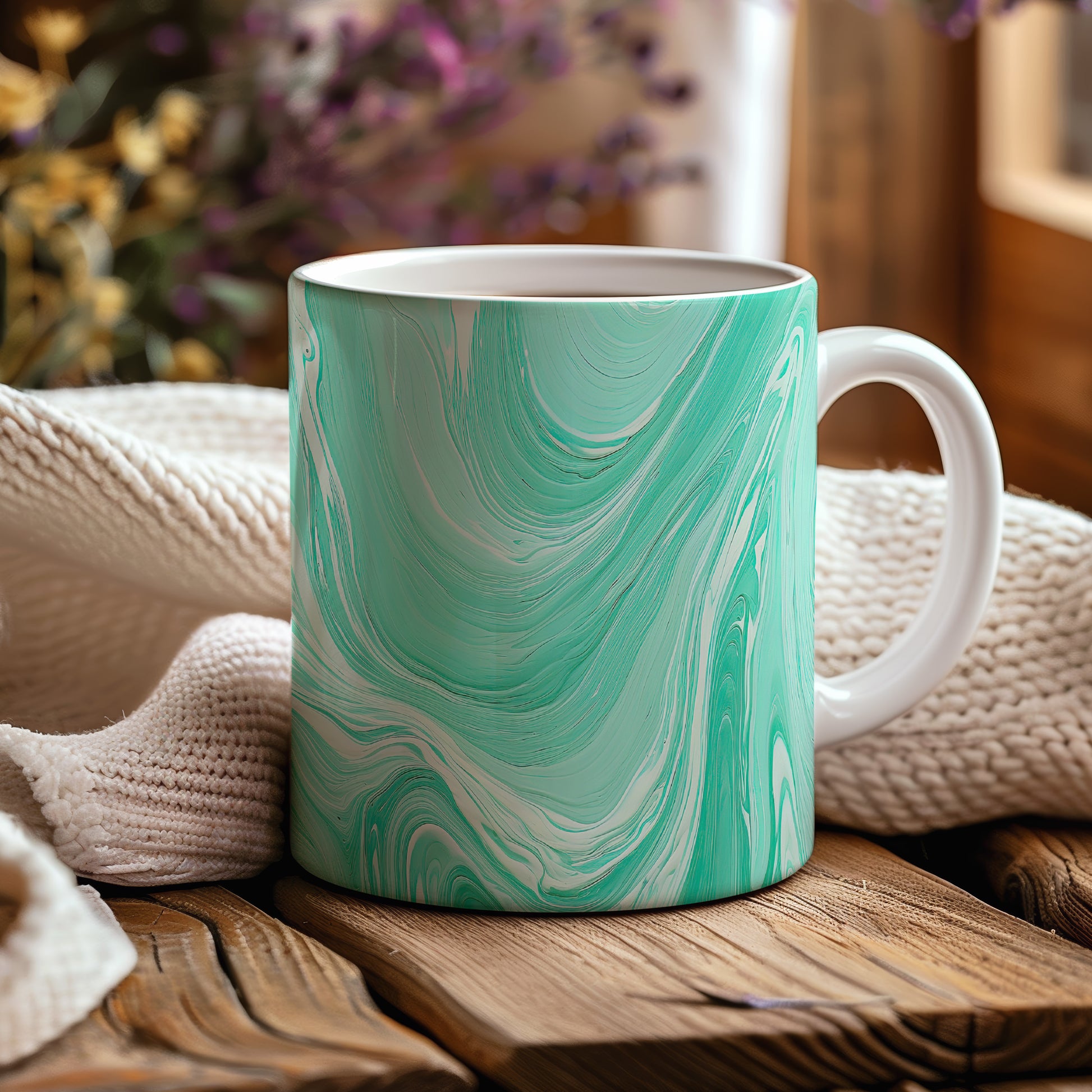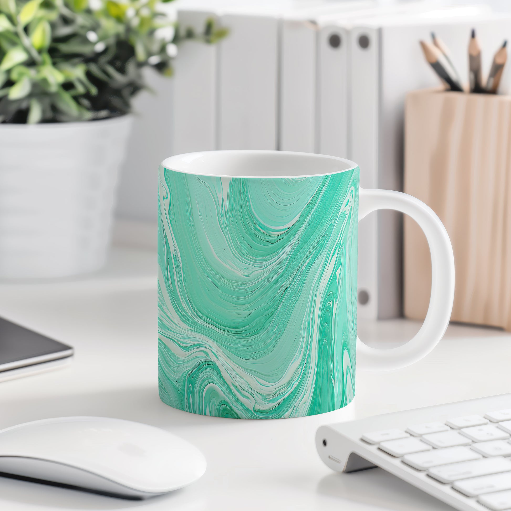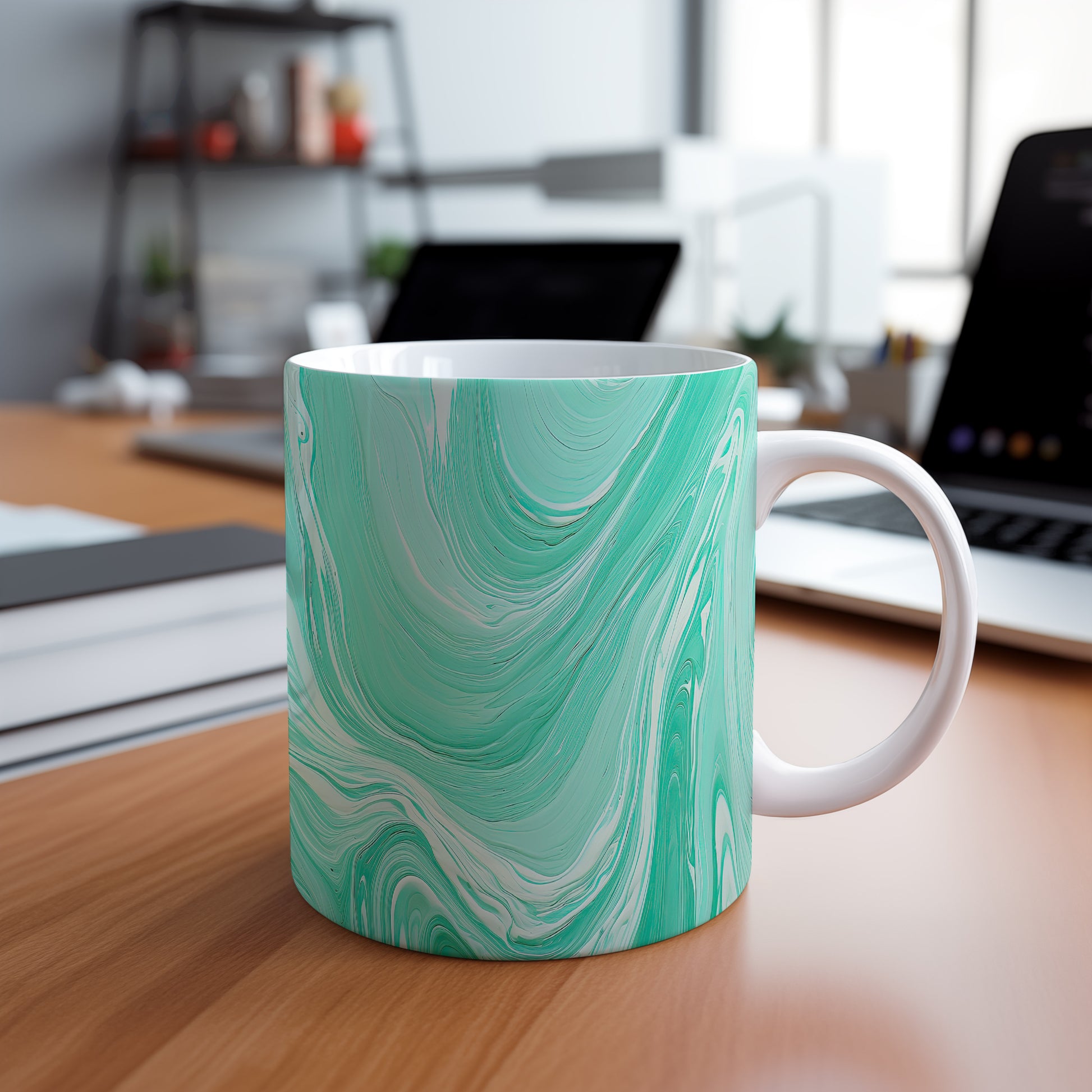Hrnek s mramorovým vzorem v tyrkysových a bílých tónech