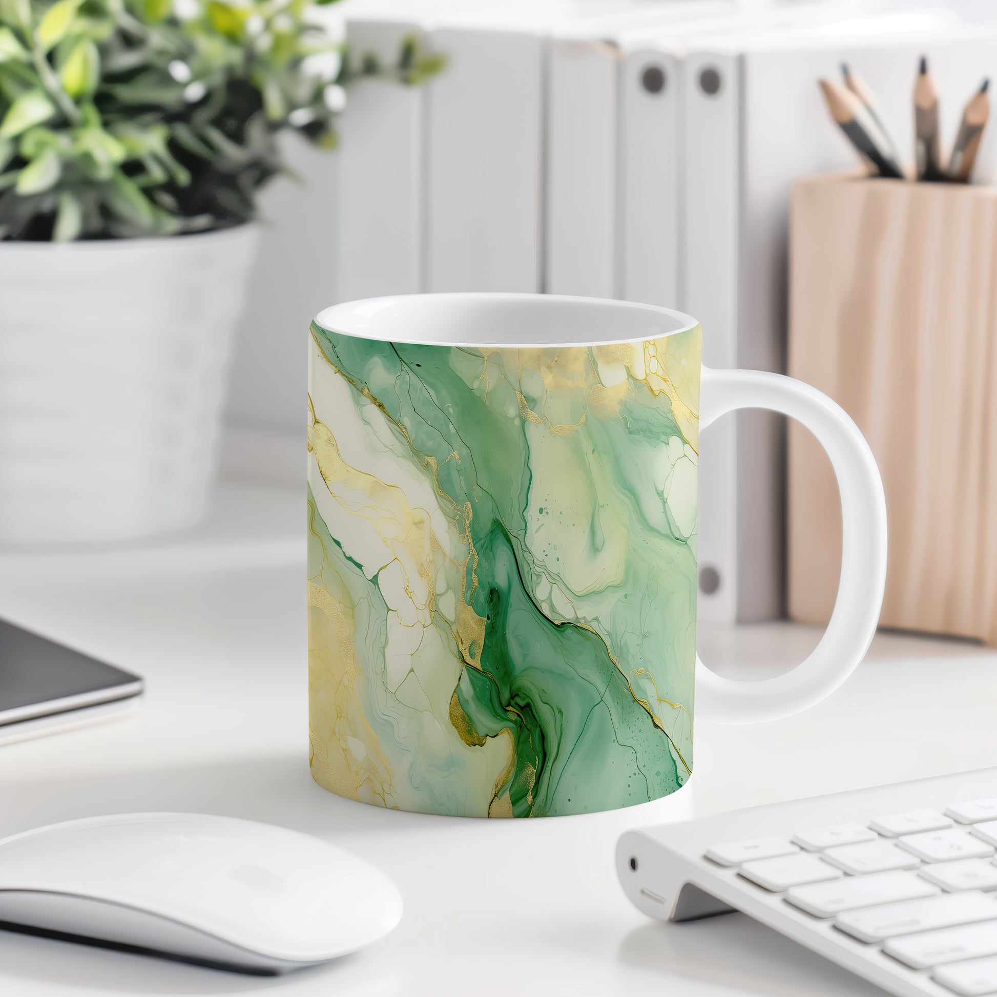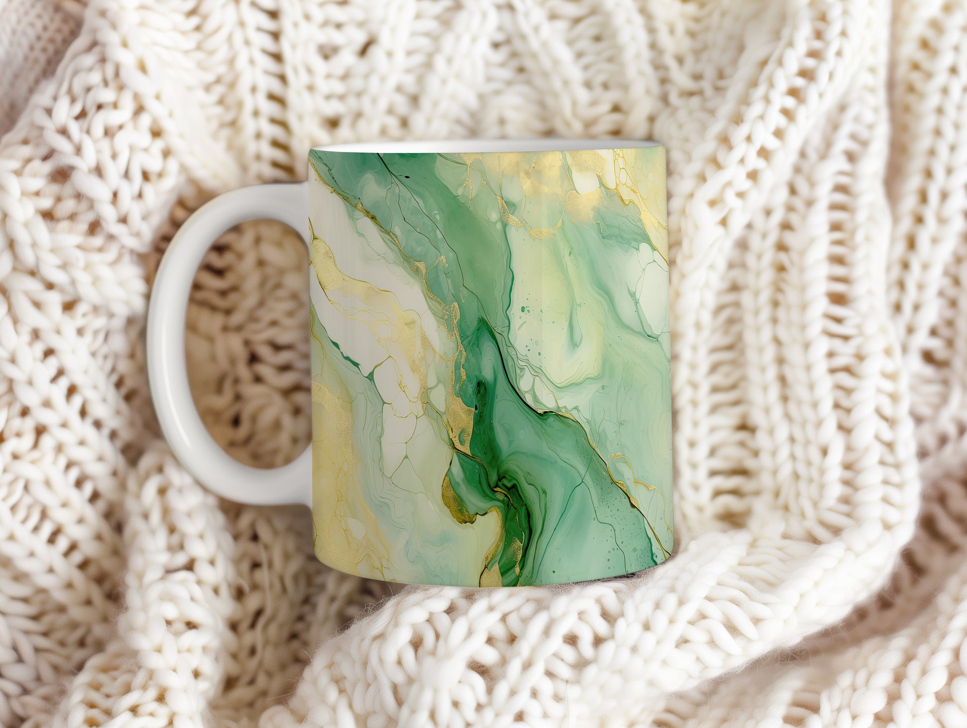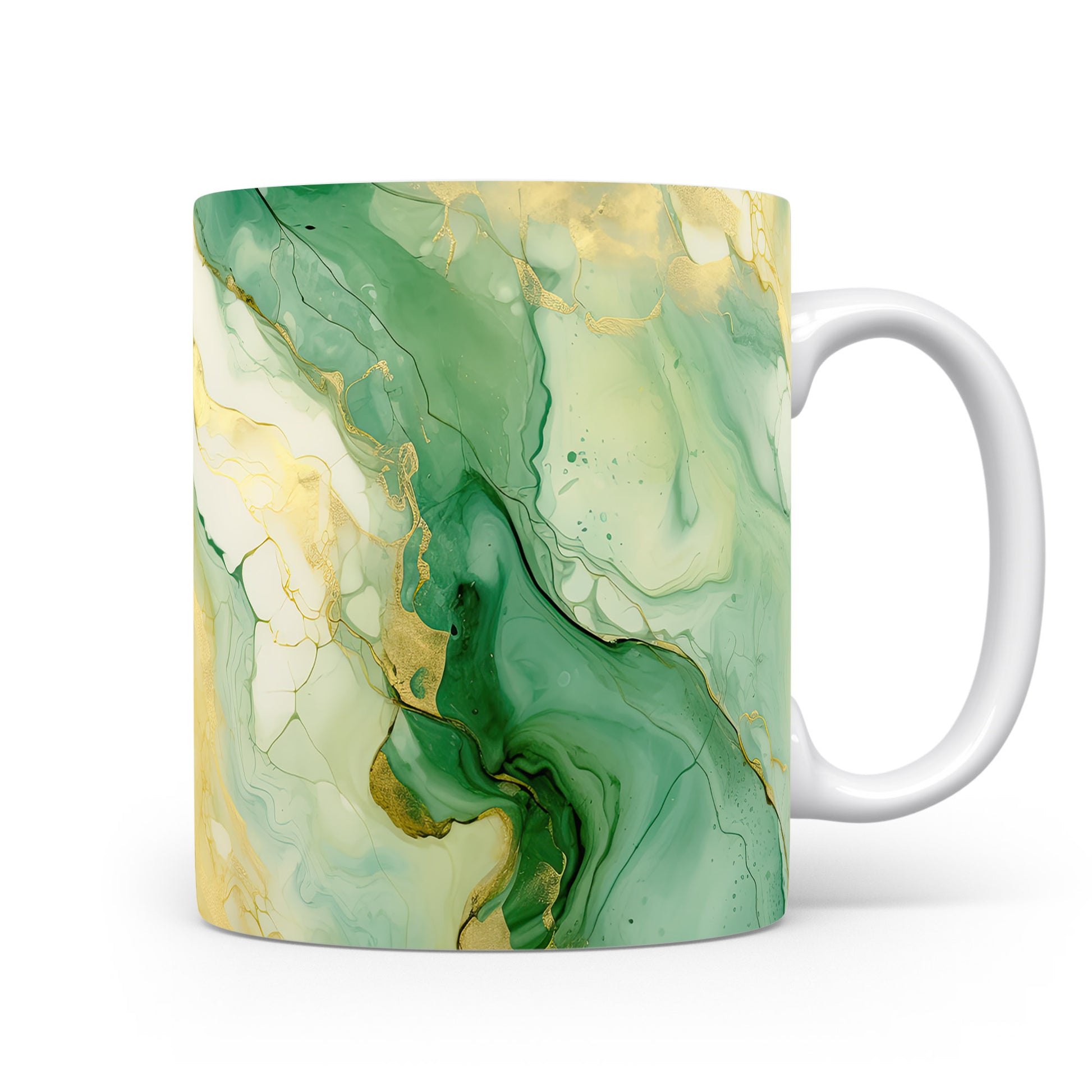 Hrnek s mramorovým vzorem v zelených a zlatých tónech…
