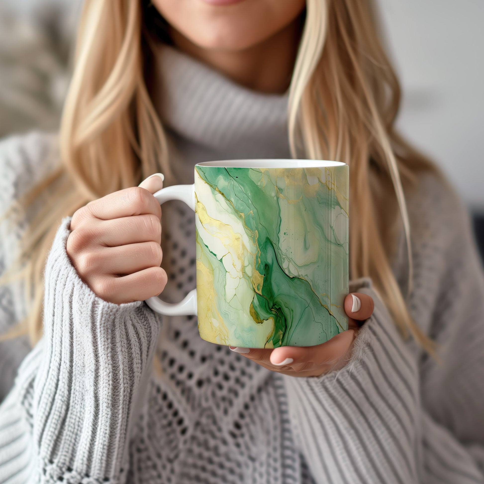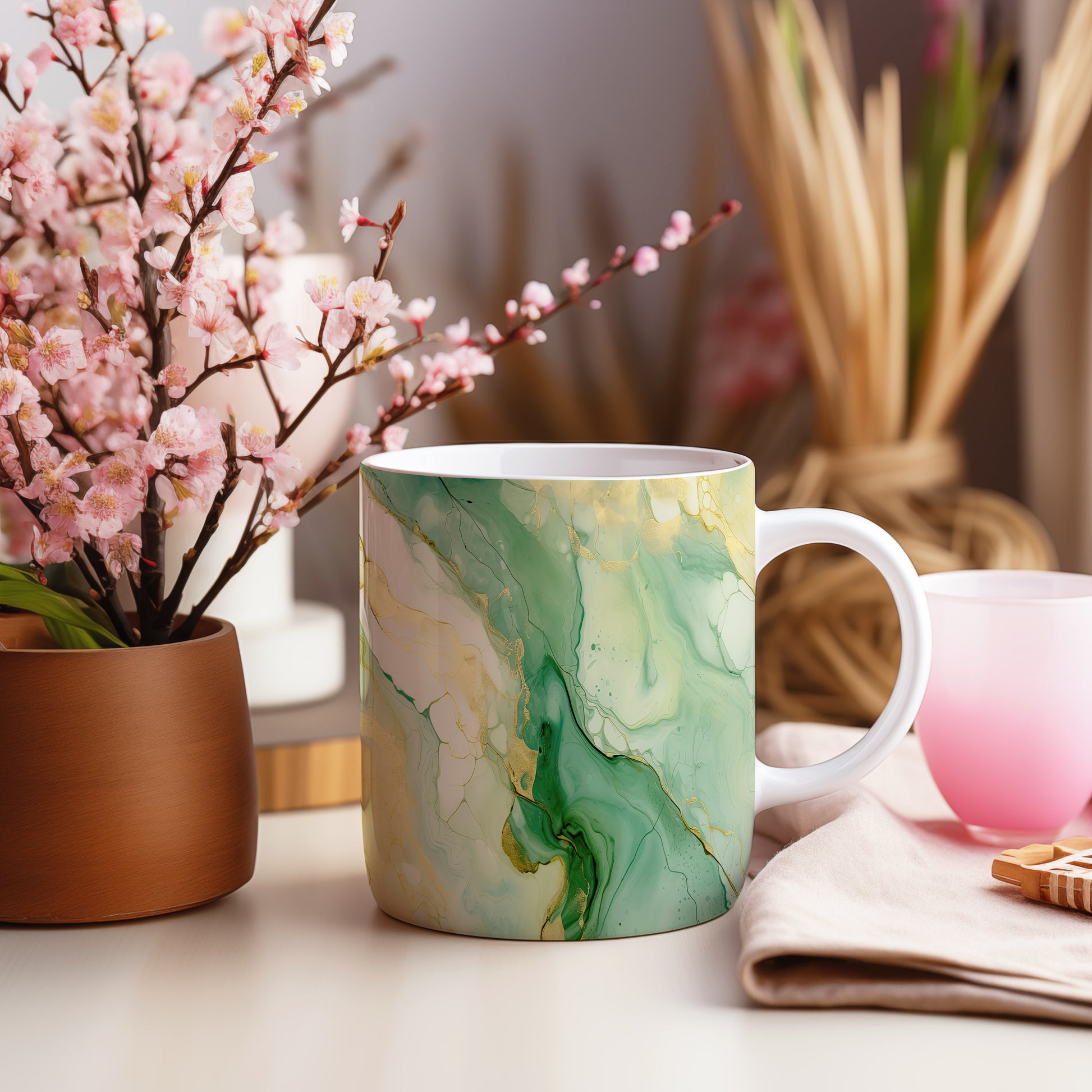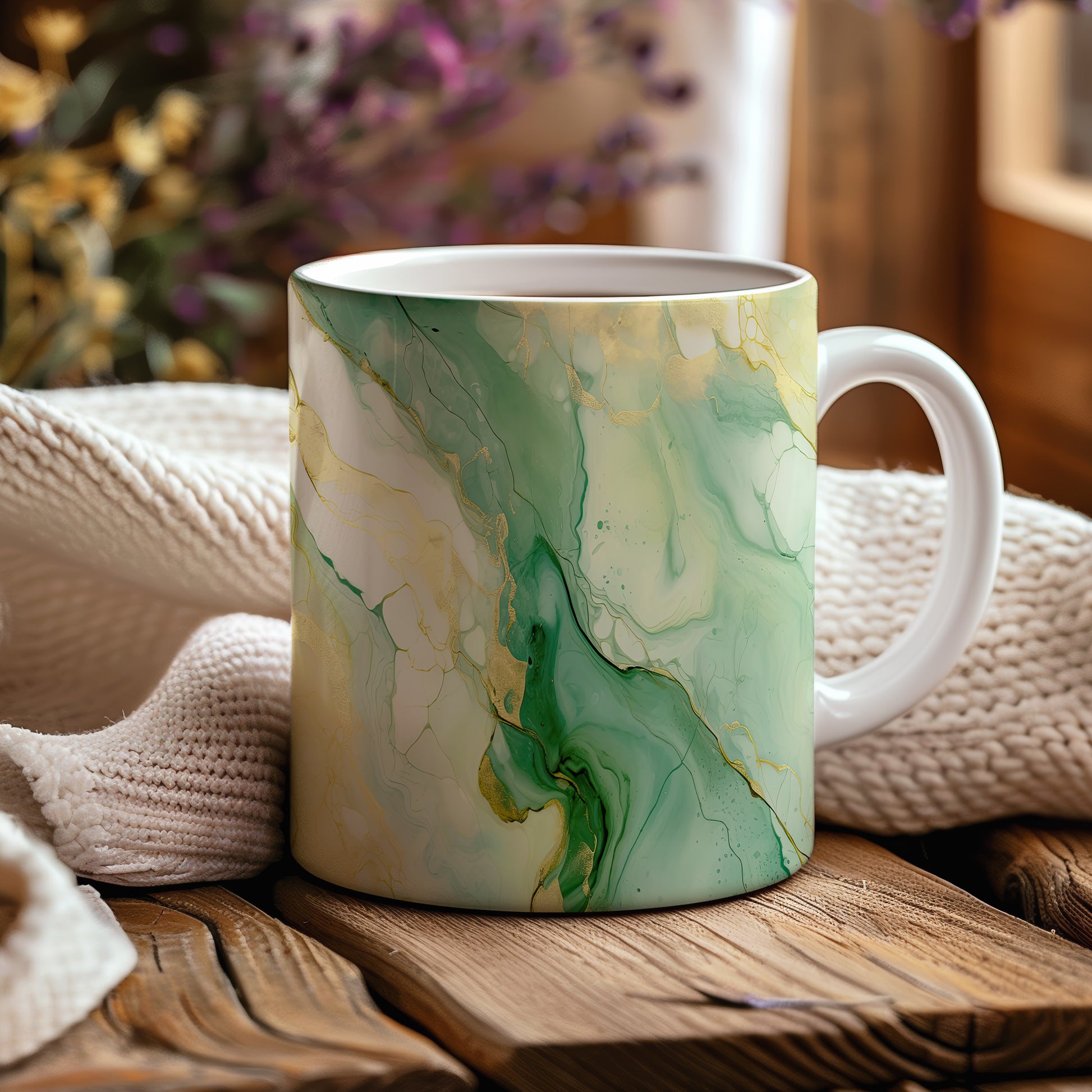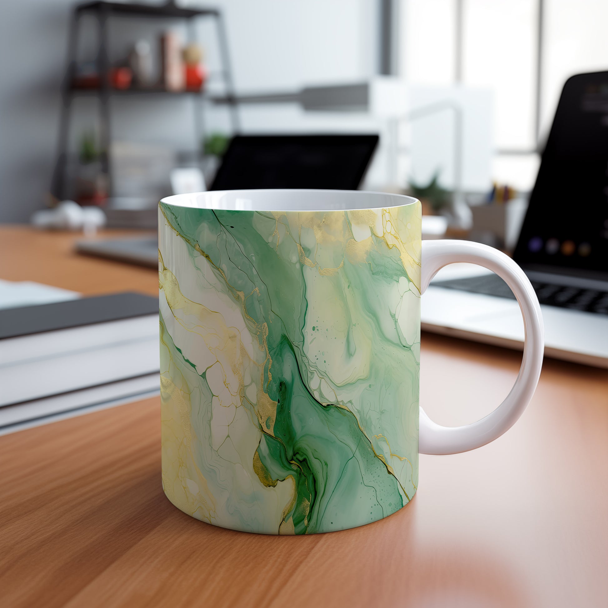 Hrnek s mramorovým vzorem v zelených a zlatých tónech…