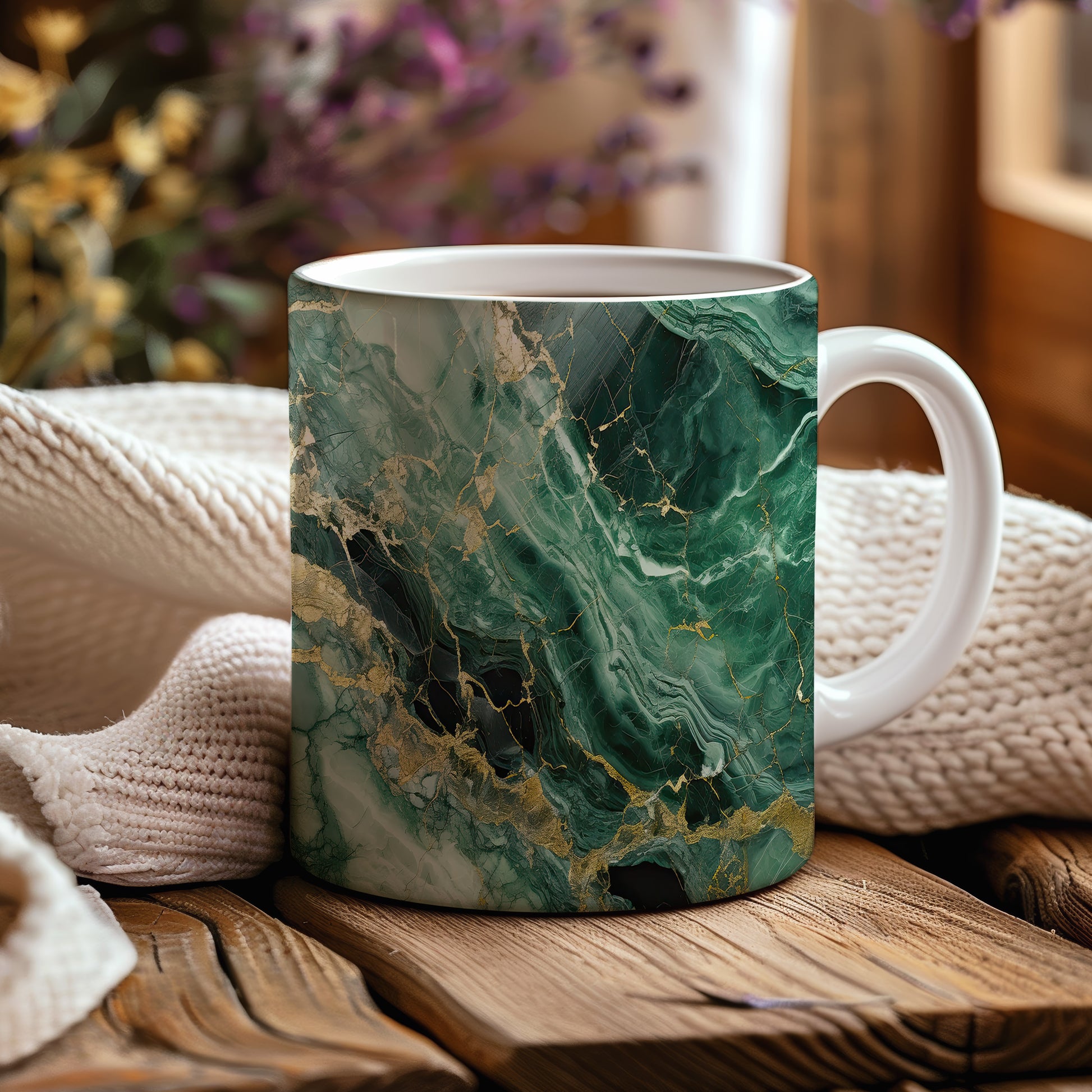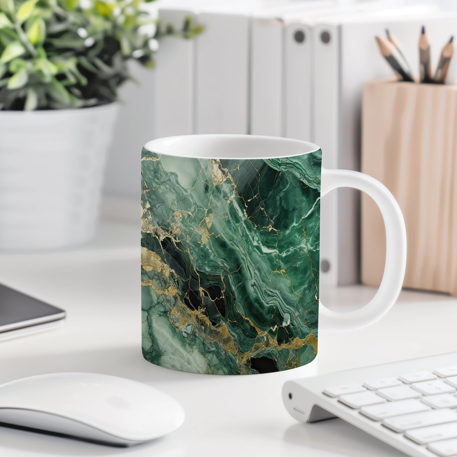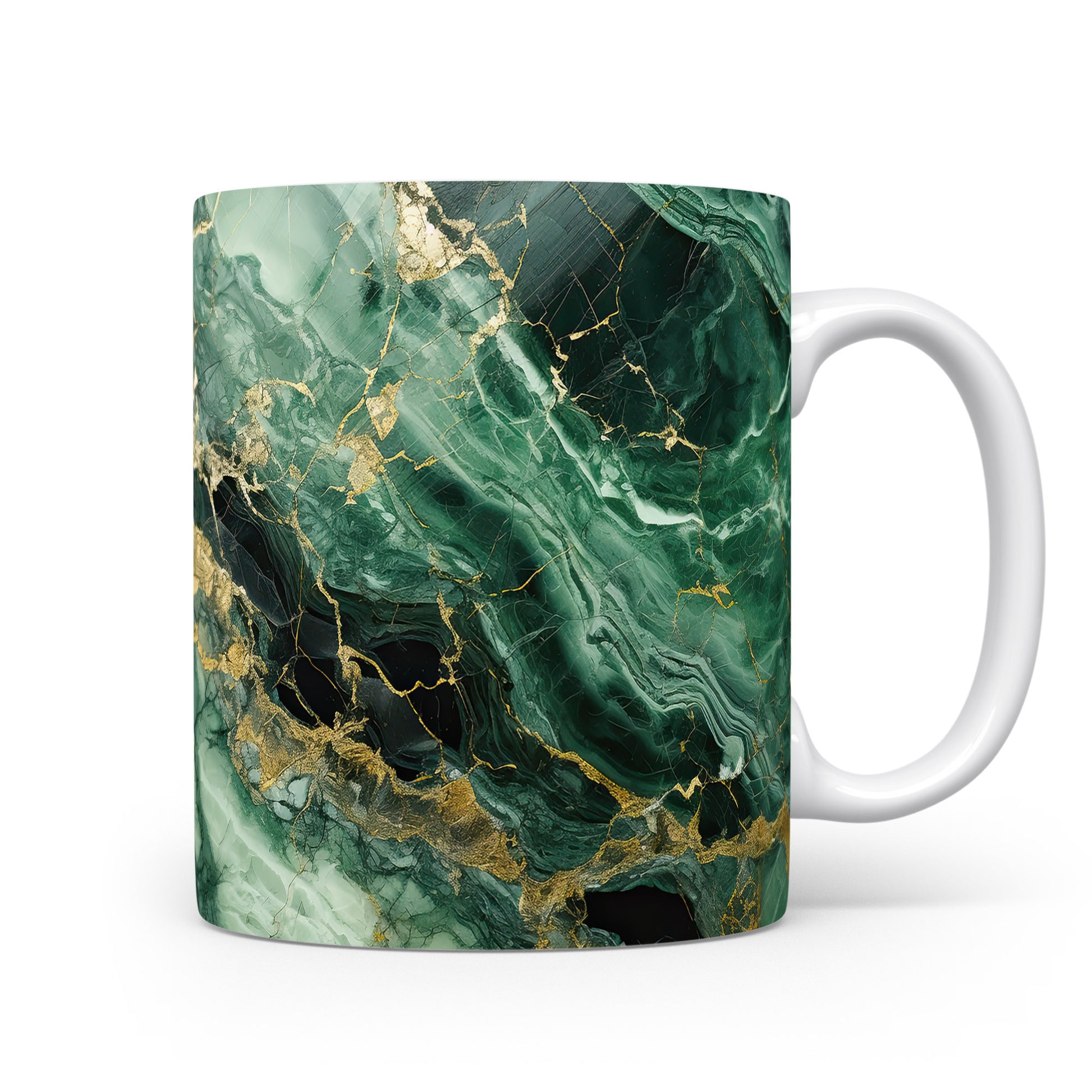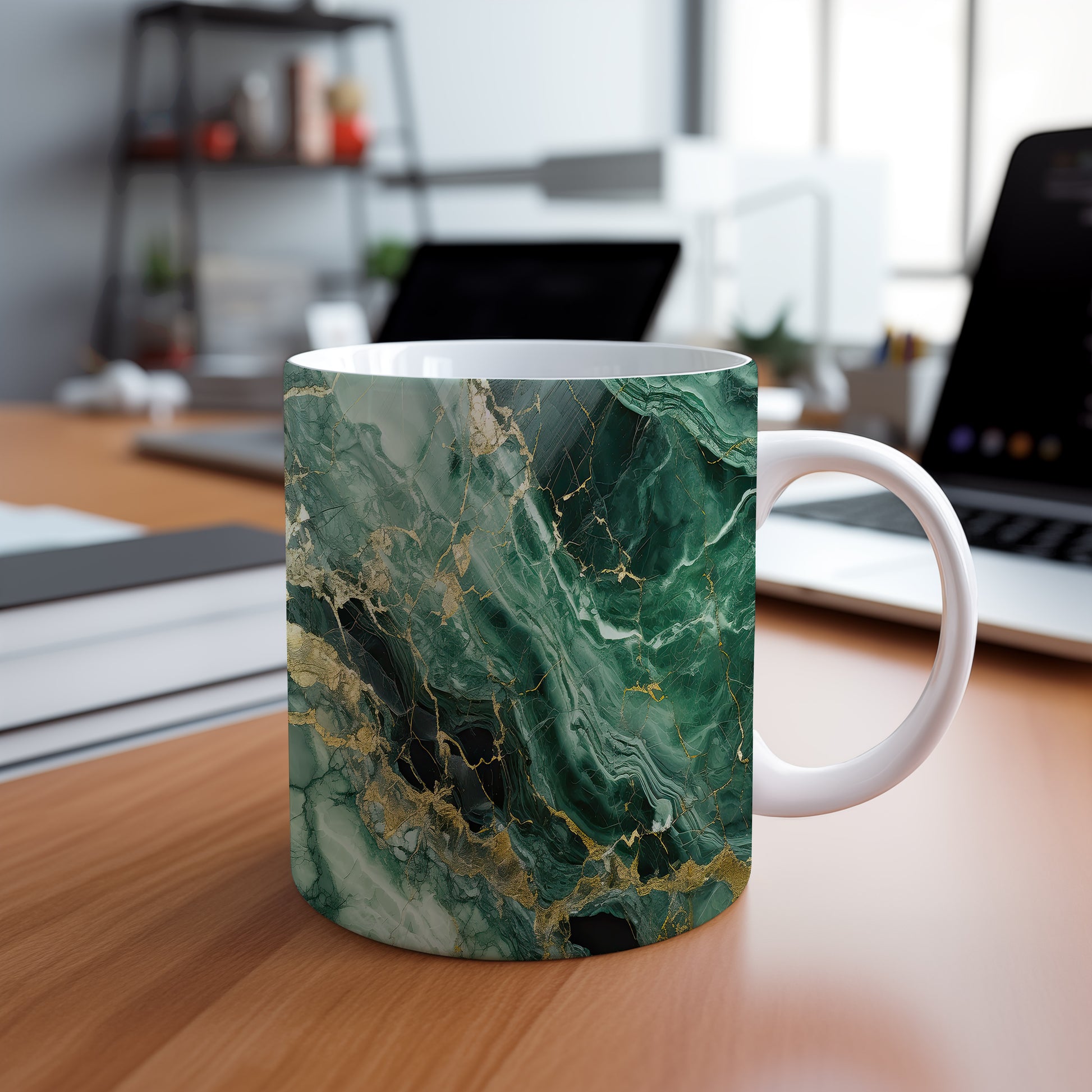 Hrnek s mramorovým vzorem v zelených a zlatých tónech – dárkovým tipem