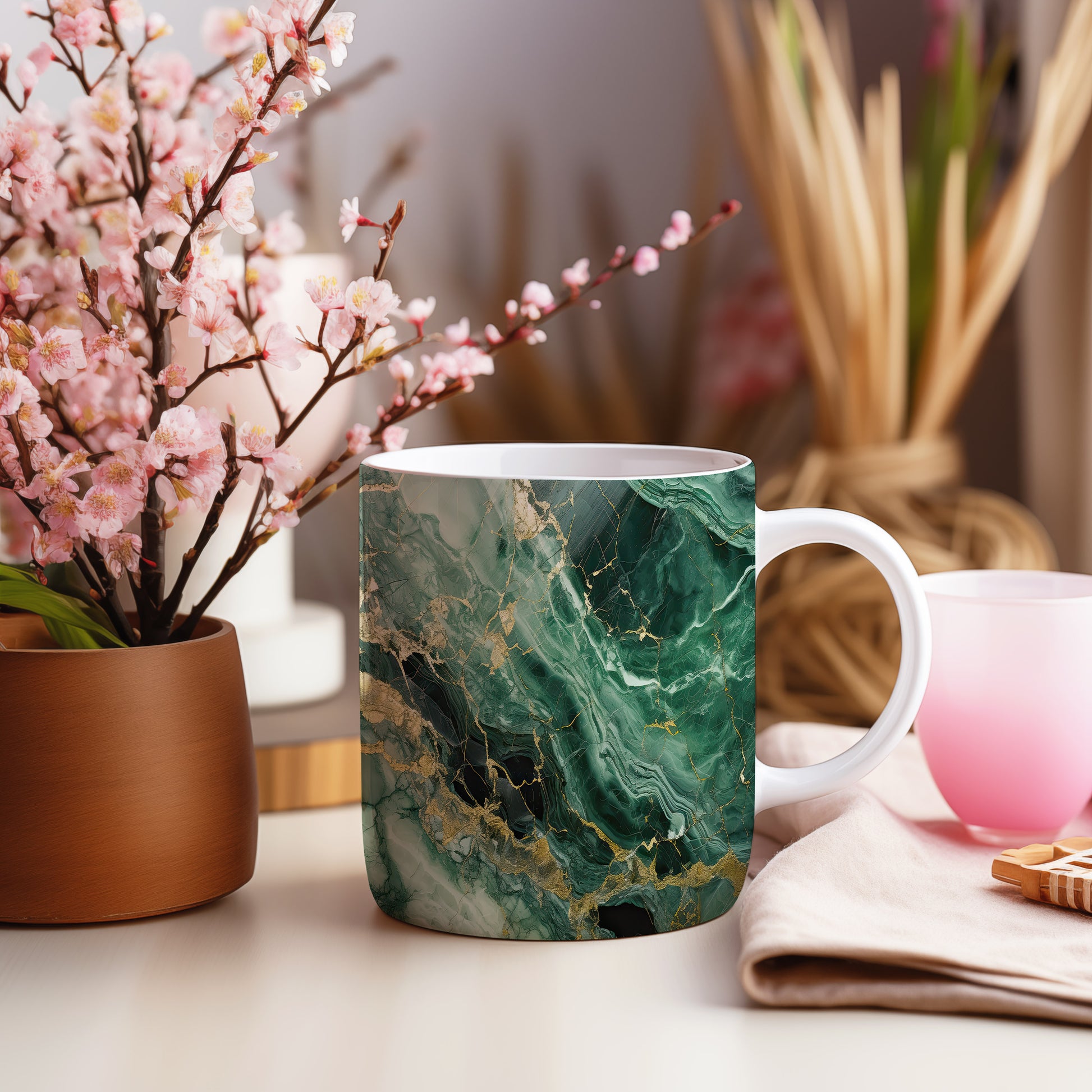 Tento hrnek s elegantním mramorovým vzorem v smaragdově zelených a zlatých tónech je ideální pro milovníky stylového designu. Skvělý tip na dárek pro přátele nebo rodinu, kteří ocení jedinečnost a krásu. Materiál: keramika. Objem: 330 ml. Vhodné do myčky i mikrovlnky. Používáním tohoto hrnku si užijete nejen skvělý vzhled, ale i pohodlné pití vašich oblíbených nápojů.