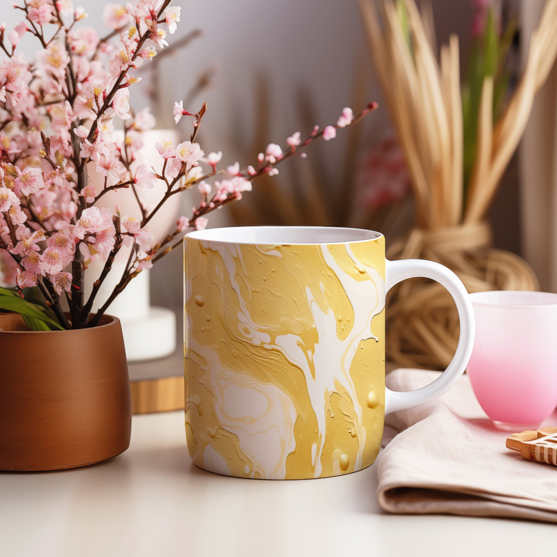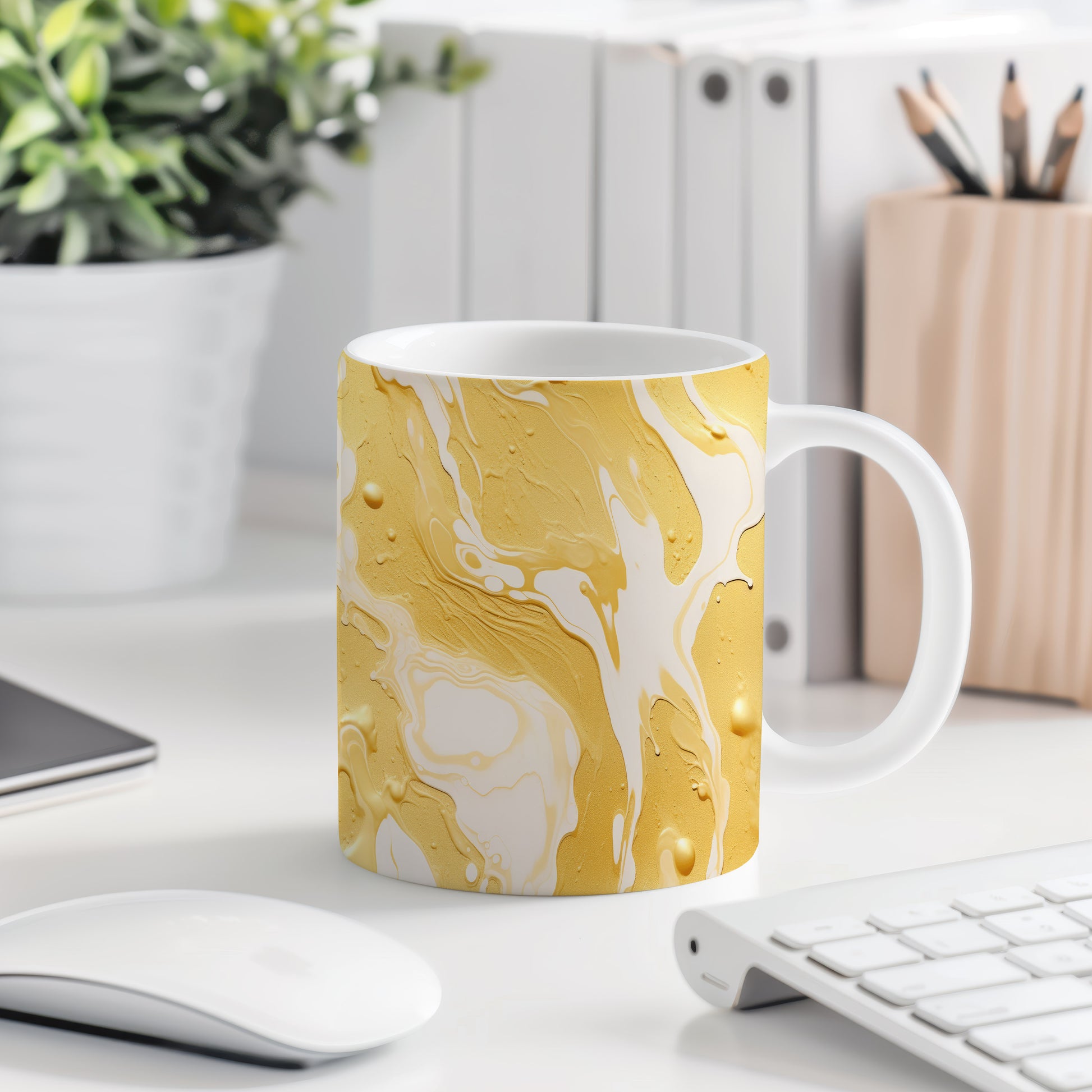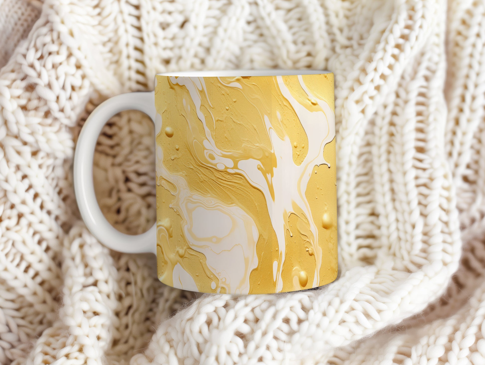 Hrnek s mramorovým vzorem v zlatých a bílých tónech