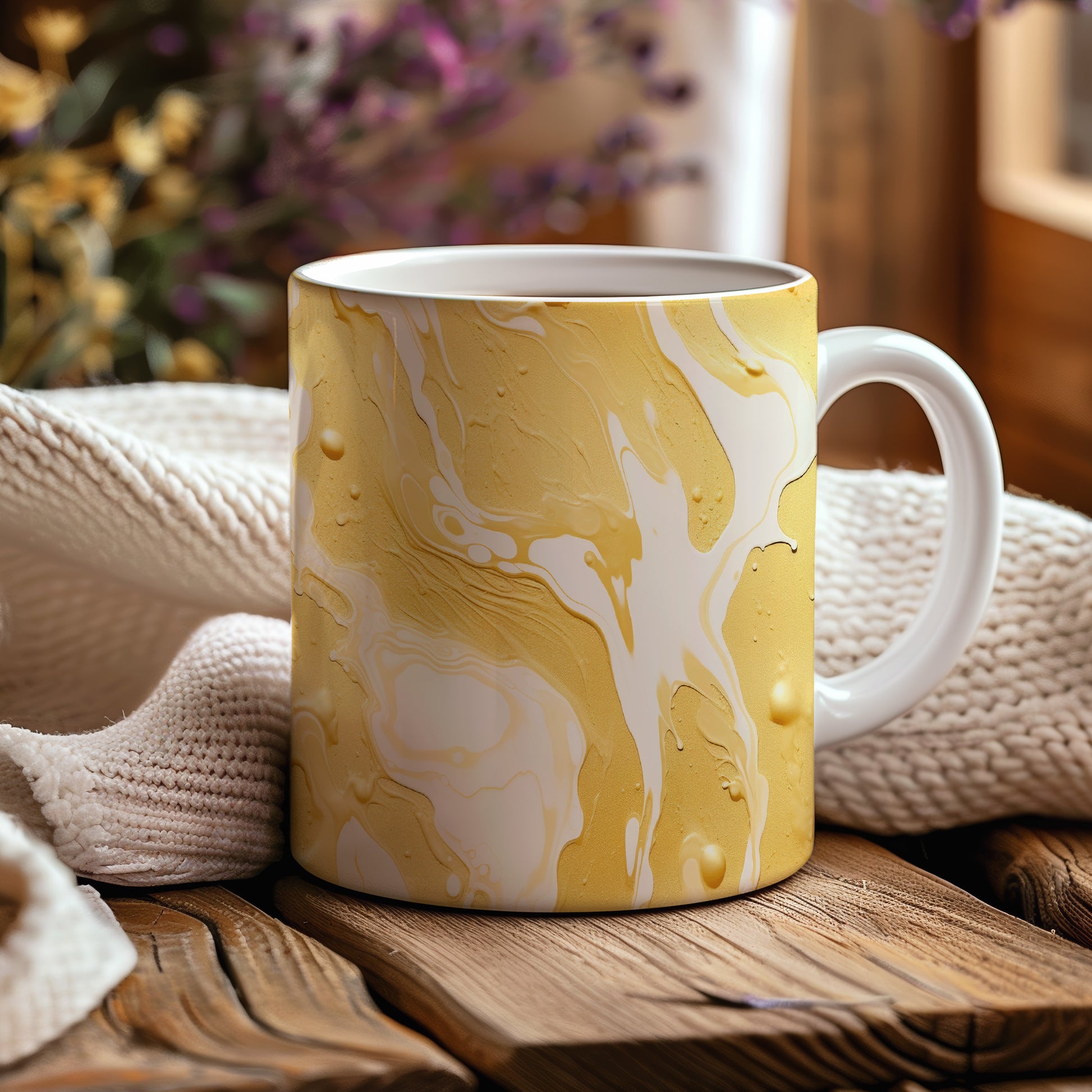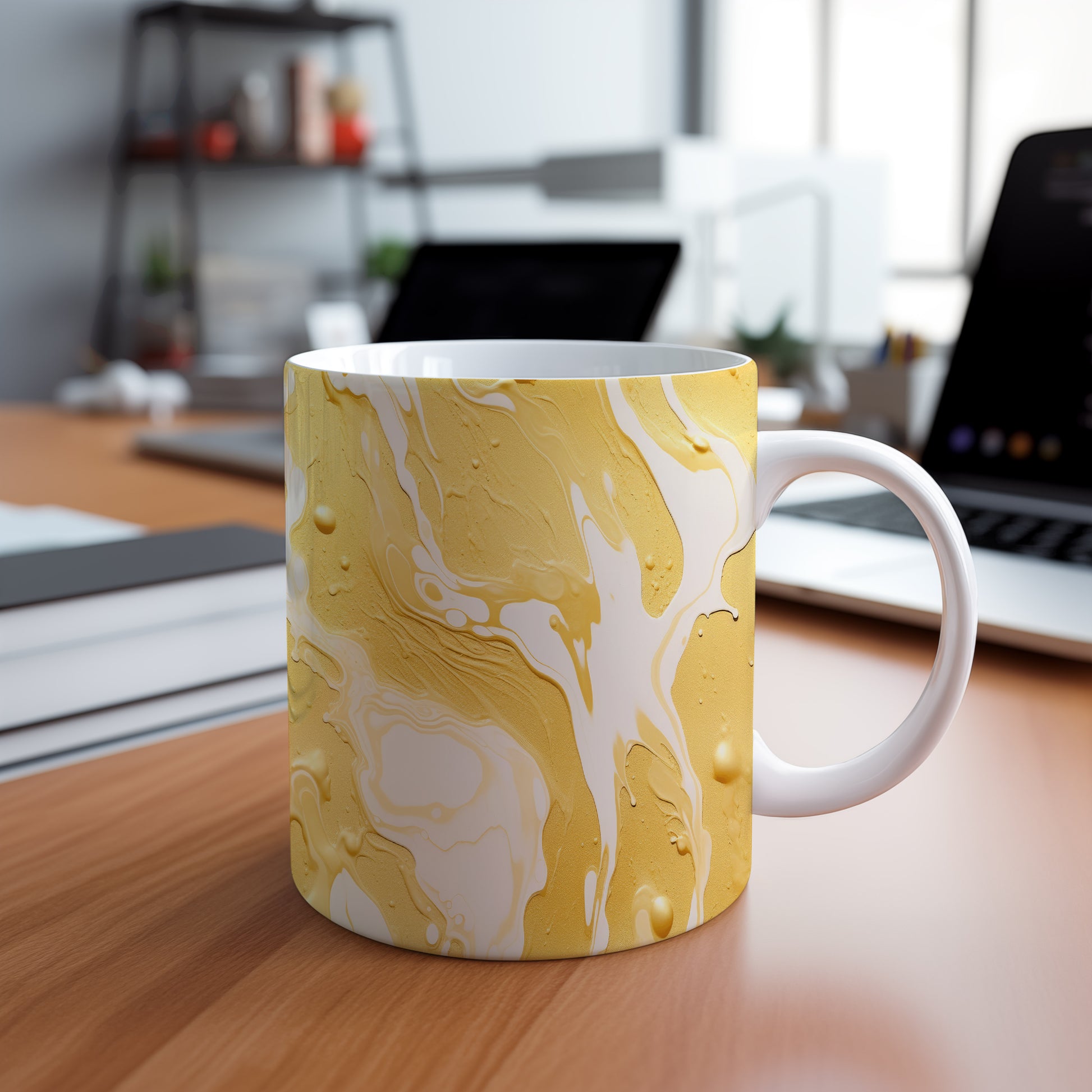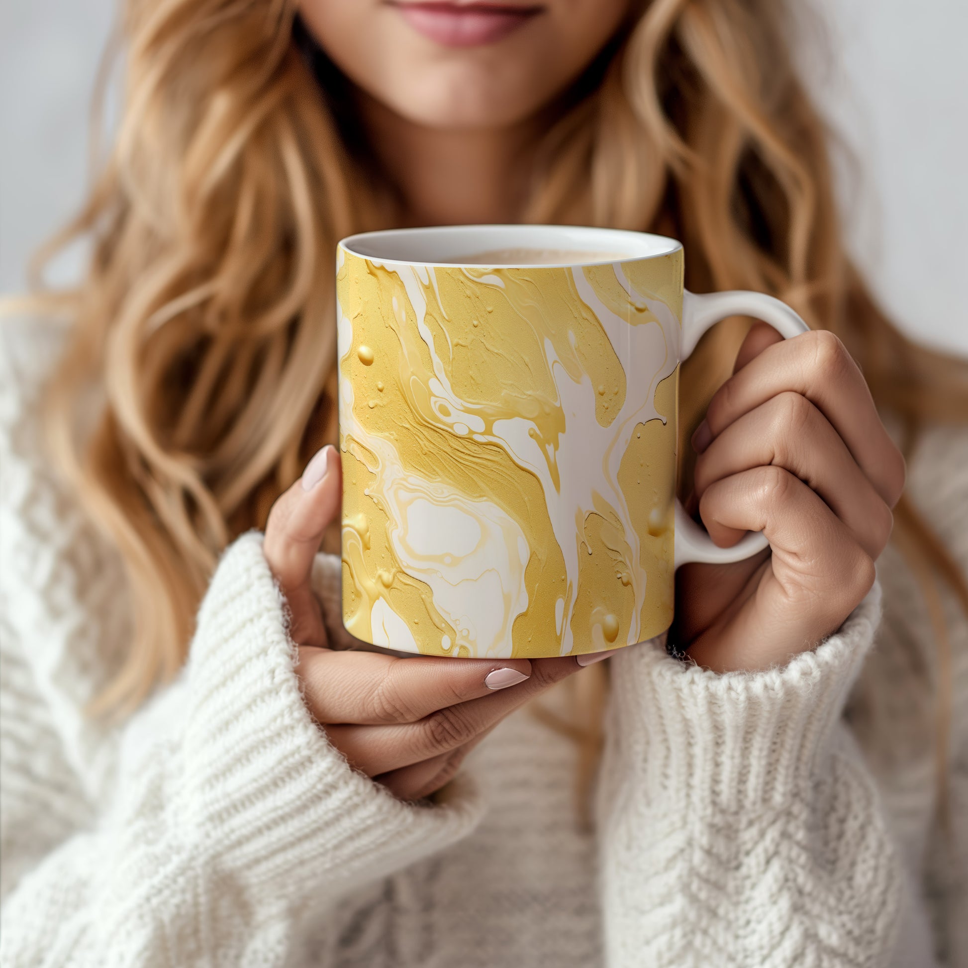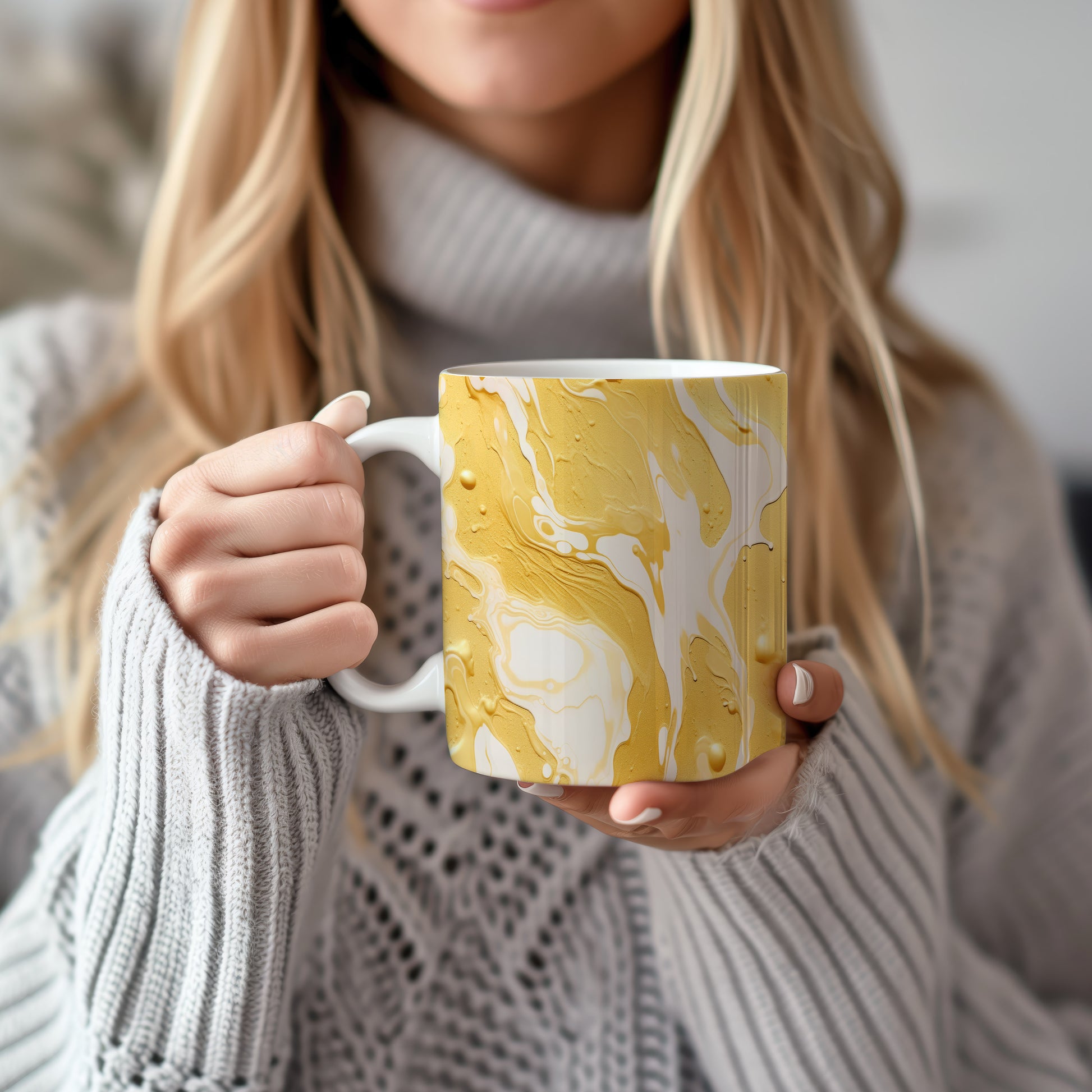 Hrnek s mramorovým vzorem v zlatých a bílých tónech
