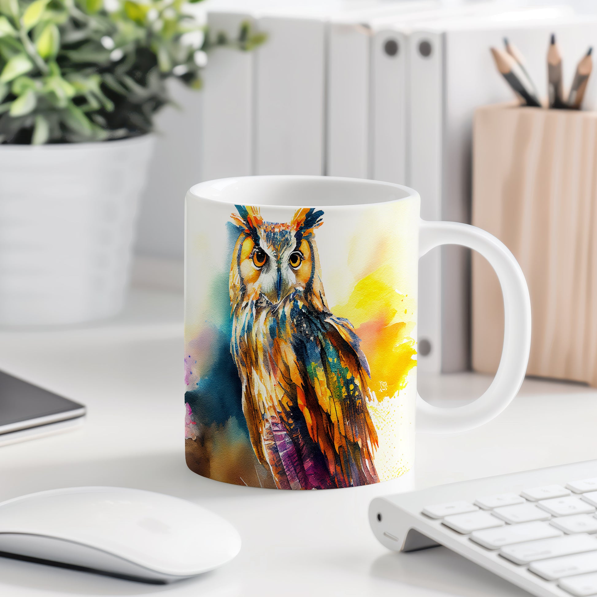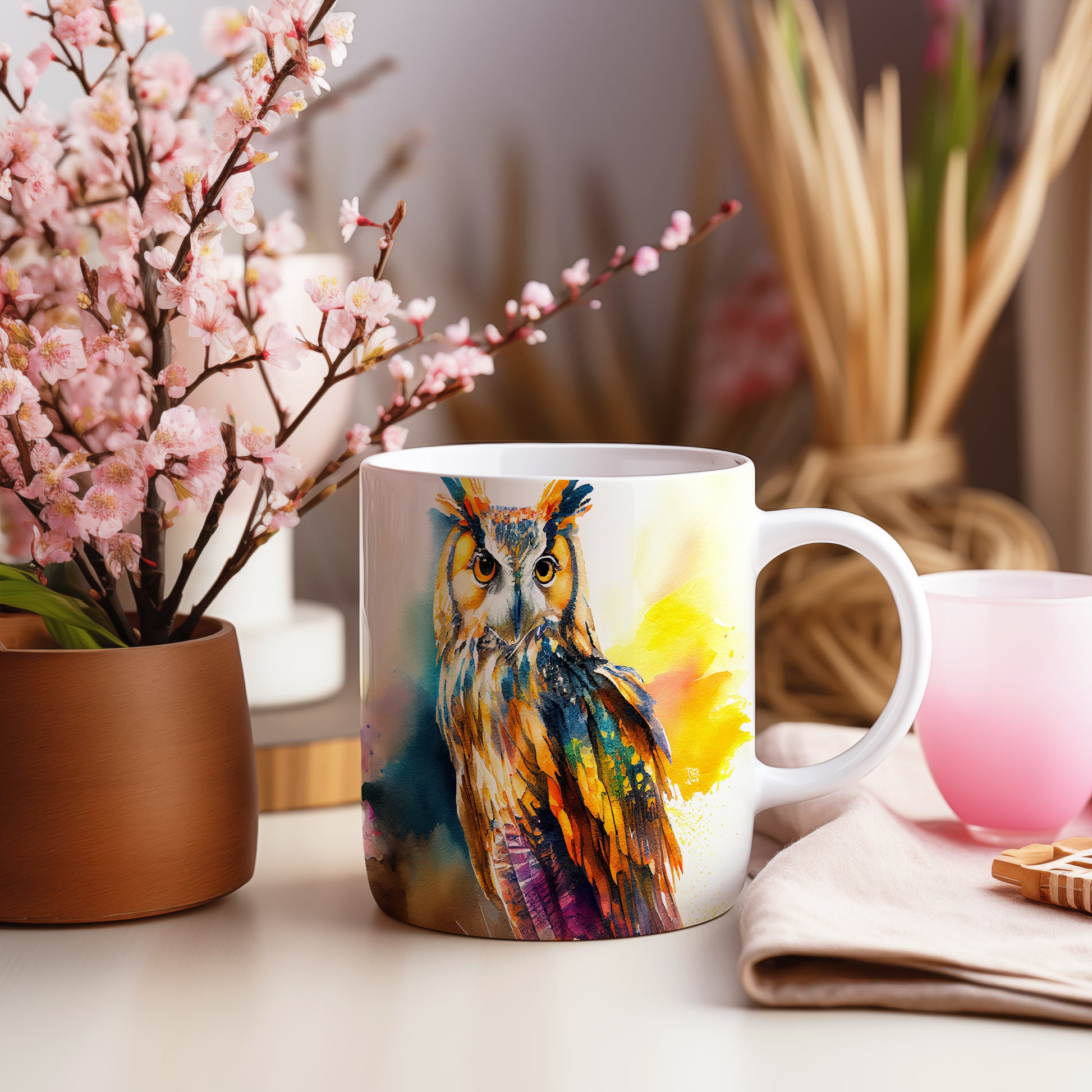 Hrnek s krásnou malbou sovy je stylovým kouskem pro milovníky přírody. Tento hrnek je ideální jako dárek pro přátele nebo rodinu, kteří ocení jedinečný design. Materiál: keramika. Objem: 330 ml. Vhodné do myčky i mikrovlnky. Díky svému originálnímu vzhledu přinese do každého dne radost a pohodu.